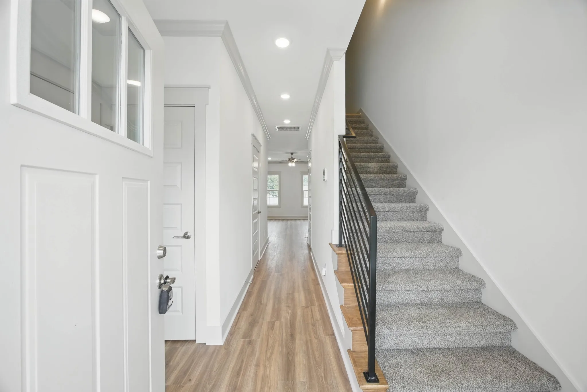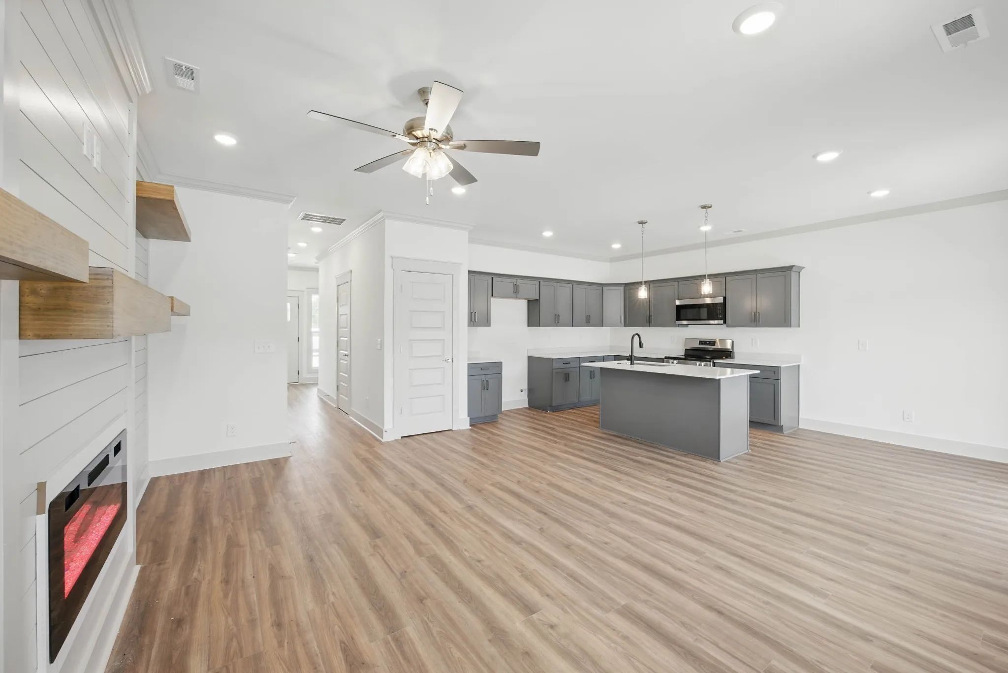 This brand new, two-story townhome boasts three bedroom two & half bathrooms, offering ample space for comfort and convenience. Ceiling fans add an extra touch of comfort, while the one-car garage provides secure parking and storage. Pet lovers will appreciate the pet-friendly policy, welcoming up to two pets weighing 50 lbs or less. The large walk-in closet offers generous storage space, and the extra lighting fixtures and recessed lighting create a bright and inviting atmosphere. As part of a Homeowners Association, trash services are included for added convenience. This home is a perfect blend of style, comfort, and convenience, waiting for you to make it your own.