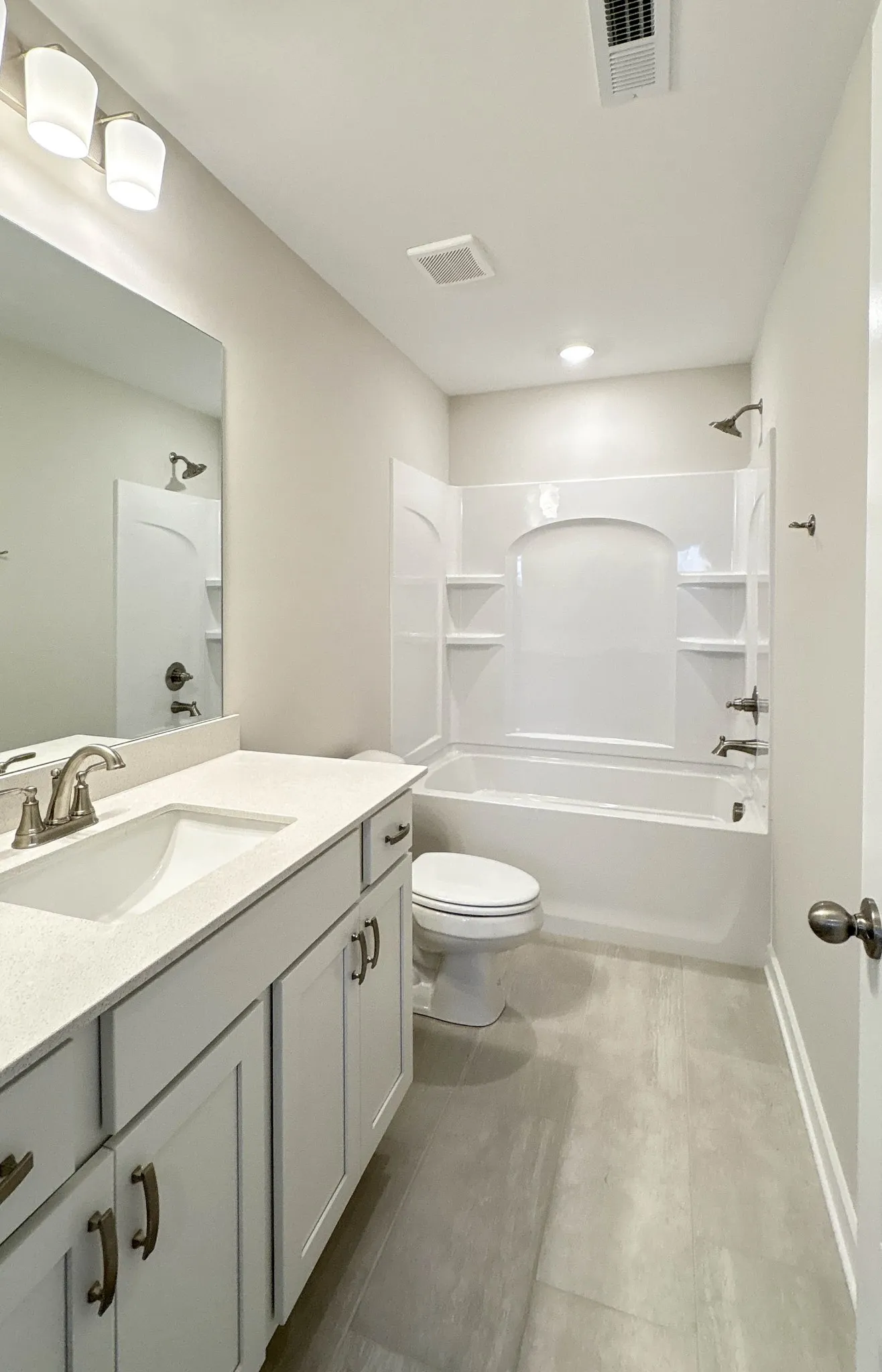 Modern style meets comfort in this 3-bed, 2.5-bath, 2,167 sq ft all-brick home in Westfield Ph 2A. The open-concept main level includes a spacious living room with a gas fireplace and a kitchen featuring quartz countertops, upgraded cabinetry, a designer tile backsplash, and stainless appliances. Durable laminate flooring enhances the main living spaces, while plush carpet adds comfort upstairs and tile accents each bath. The primary suite offers a soaking tub, tiled shower, and dual vanities, while two additional bedrooms provide flexibility. A convenient main-level half bath, neutral interior paint, upgraded finishes, and a 2-car front-entry garage complete the design. Westfield offers a community pool and easy access to Station Camp schools, shopping, and major commuter routes. Ask about our builder incentives!
