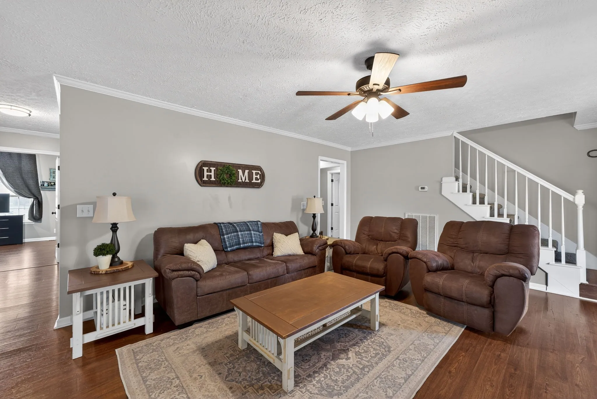 Large almost acre corner lot! No HOA. Property qualities for 100% financing through Rural Development loan. Mostly one level living with a bonus room upstairs. This all brick home provides exceptional outdoor space, complete with fenced and unfenced areas of the yard, covered patio, and extended driveway perfect for extra parking. Inside, you’ll find laminate flooring throughout the downstairs and a warm, inviting gas fireplace anchoring the living area. The galley-style kitchen features granite countertops, a subway tile backsplash, and stainless-steel appliances—blending style and efficiency. The zoned bedroom layout provides privacy for the 3 downstairs bedrooms. The large primary suite has a tray ceiling and its own bathroom offering a separate shower, garden tub, and two closets. A gas tankless water heater and garage door opener with battery backup provide modern efficiency to the home’s conveniences. The upstairs bonus room adds additional space with many possibilities. With no HOA and space to enjoy both indoors and out, this property delivers functionality and long-term value.