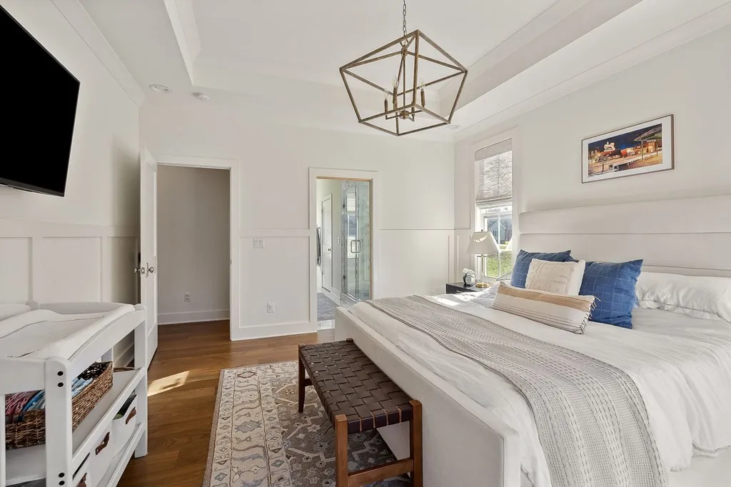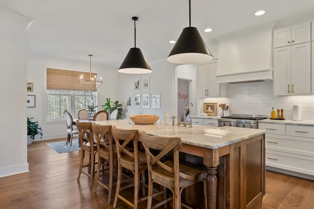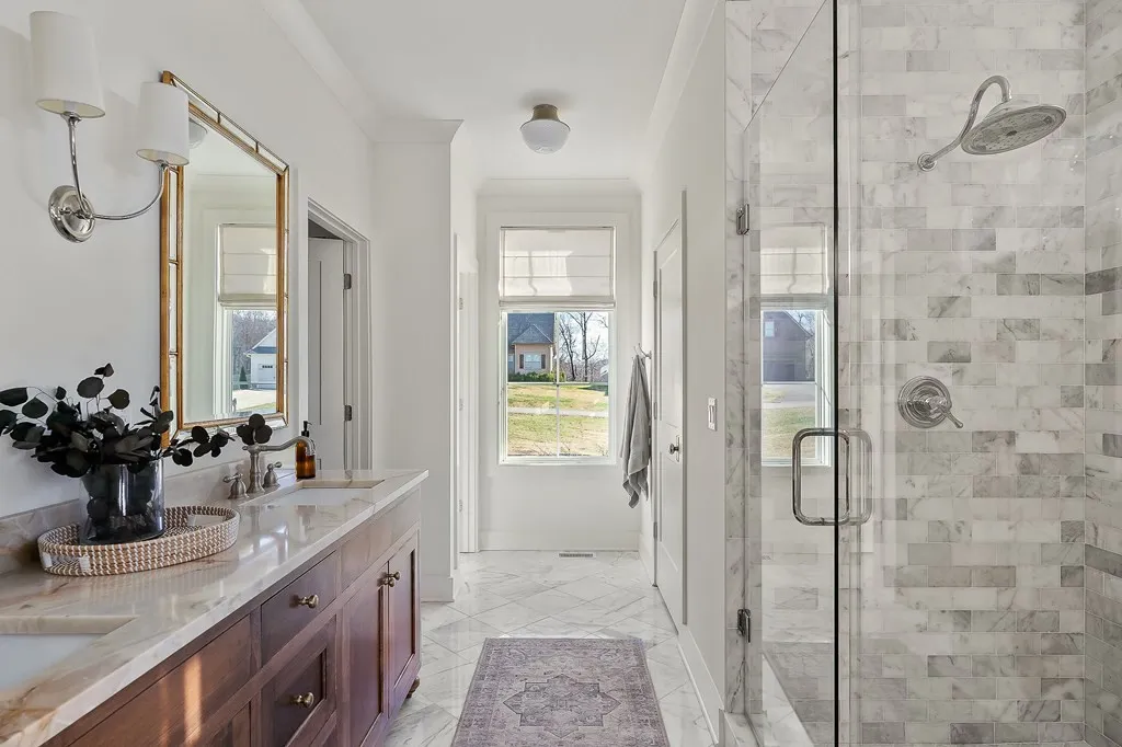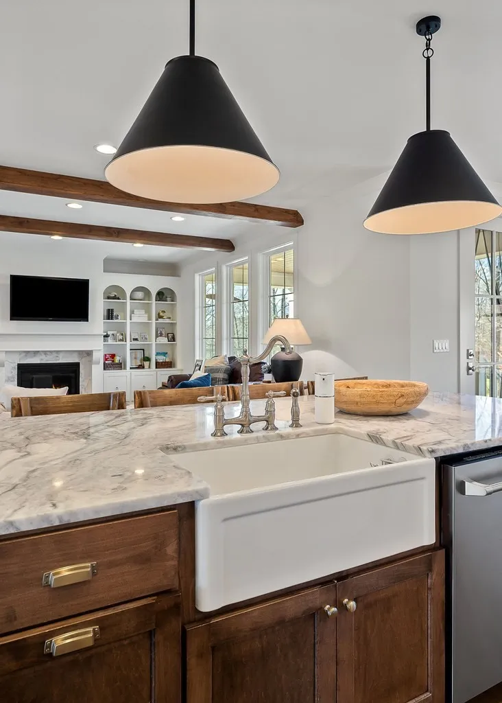A luxury home built by Capital Communities, this 4-bedroom, 3.5-bath home (septic permitted for 3 bedrooms) offers the ideal blend of sophistication and comfort! The open concept main living area is the heart of the home, anchored by a marble-surround gas fireplace framed by custom built-ins and warmed by rich wood beams overhead. The kitchen is a true showpiece, featuring a large island with a farm sink, black pendant lighting, crisp white cabinetry with premium hardware, a gas range, and walk-in pantry. The adjacent dining area opens to a covered deck with tongue-and-groove ceiling. The main-level primary suite offers board-and-batten accents, a spa-like bath with large tiled shower, double vanities, and walk-in closet. A 2nd main-level bedroom with ensuite bath is ideal for guests or kids. Upstairs, you’ll find two additional bedrooms, a full bath, and a bonus room! The unfinished basement offers remarkable potential for future expansion or storage, with a small lower-level garage.