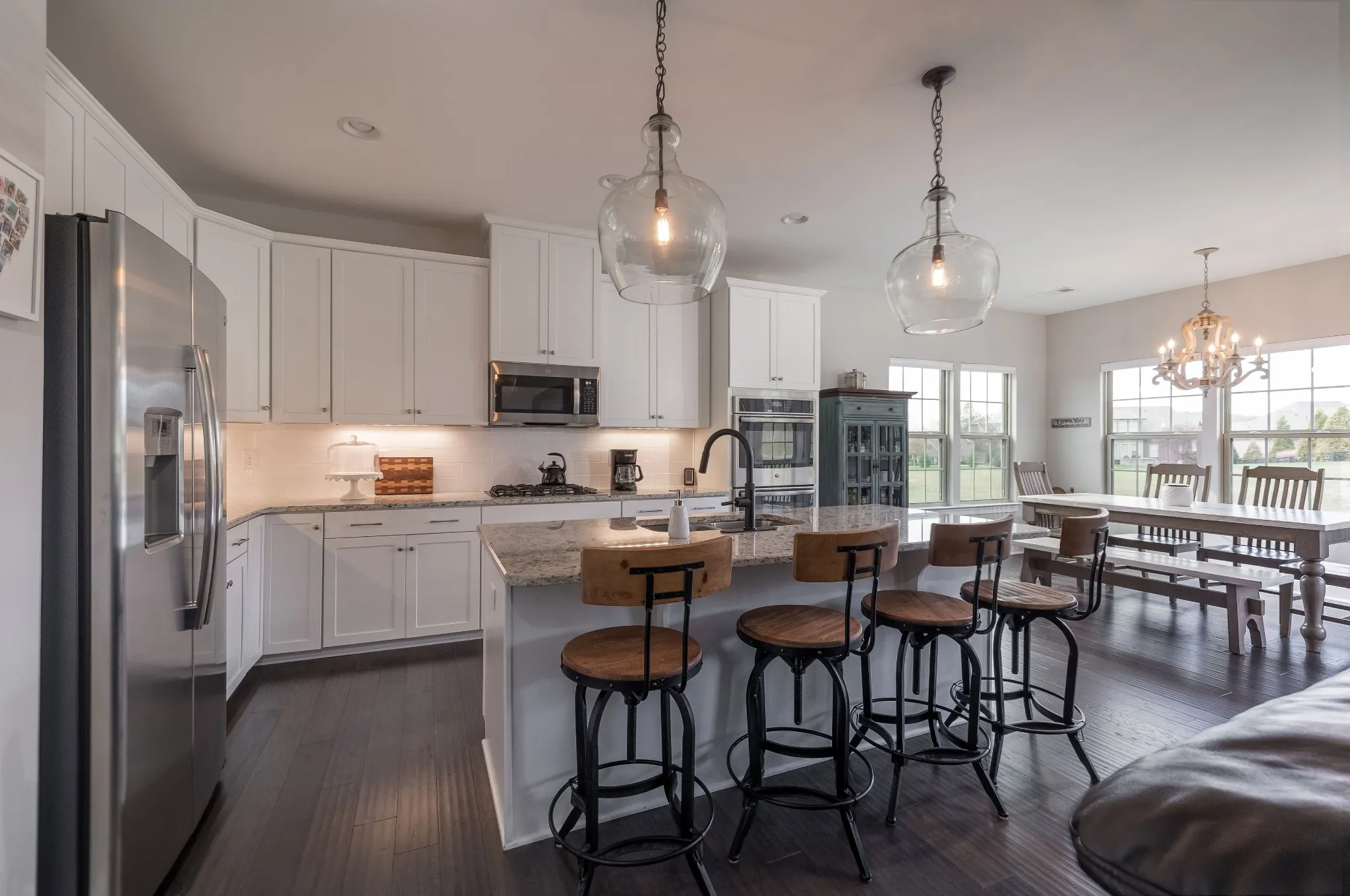Offering the highly desirable Carolina Place floor plan full of upgrades, this home is thoughtfully designed for comfort and style and offers the convenience of primarily one-level living with a perfect balance of functionality all within a vibrant, amenity-rich community. Situated on a spacious lot, this property backs up to a massive green space ideal for entertaining, relaxing, and enjoying nature right at your covered private back porch. Quiet mornings, inviting living spaces, and outdoor nights watching beautiful sunsets. \n