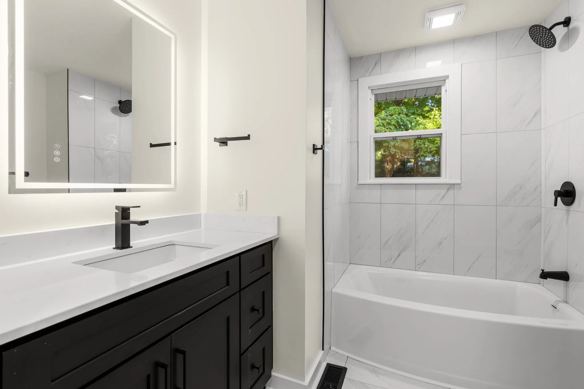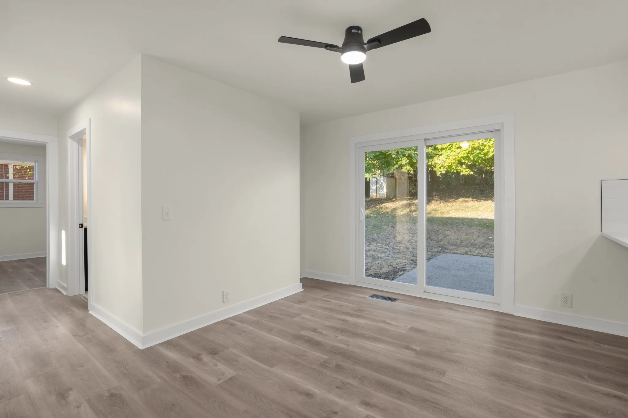 This home showcases a fully renovated kitchen with a modern backsplash, soft-close cabinets, stainless steel appliances, and quartz countertops. Enjoy new lighting and fixtures in every room, plus a spacious bonus room off the kitchen—ideal for an office, playroom, or flex space. The bathroom has been refreshed with new tile flooring, vanity and stylish finishes. Additional updates include new windows, new hvac, exterior and interior doors, and new flooring throughout. Smart home additions include smart lock, bathroom mirror, AC control, fire alarm and security system for added convenience, and electrical wiring has been upgraded.