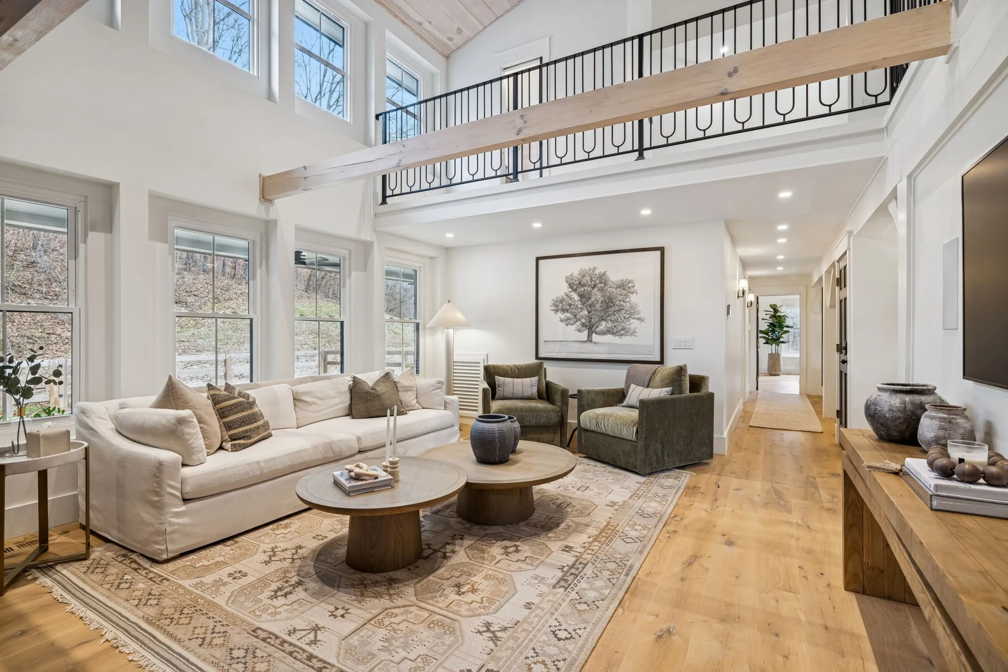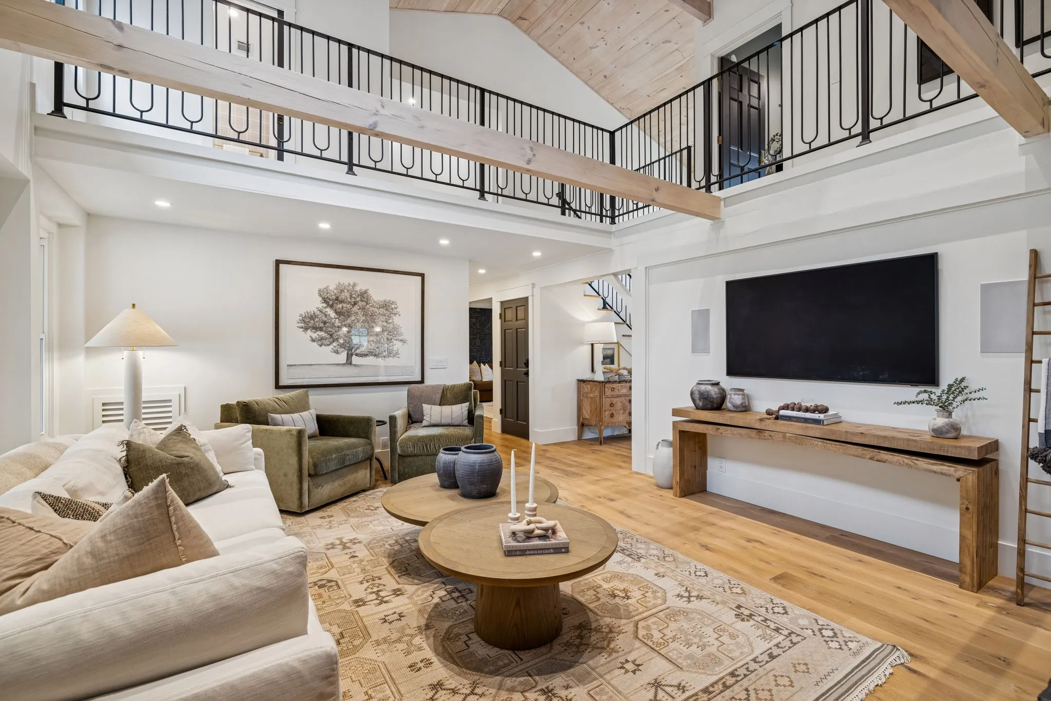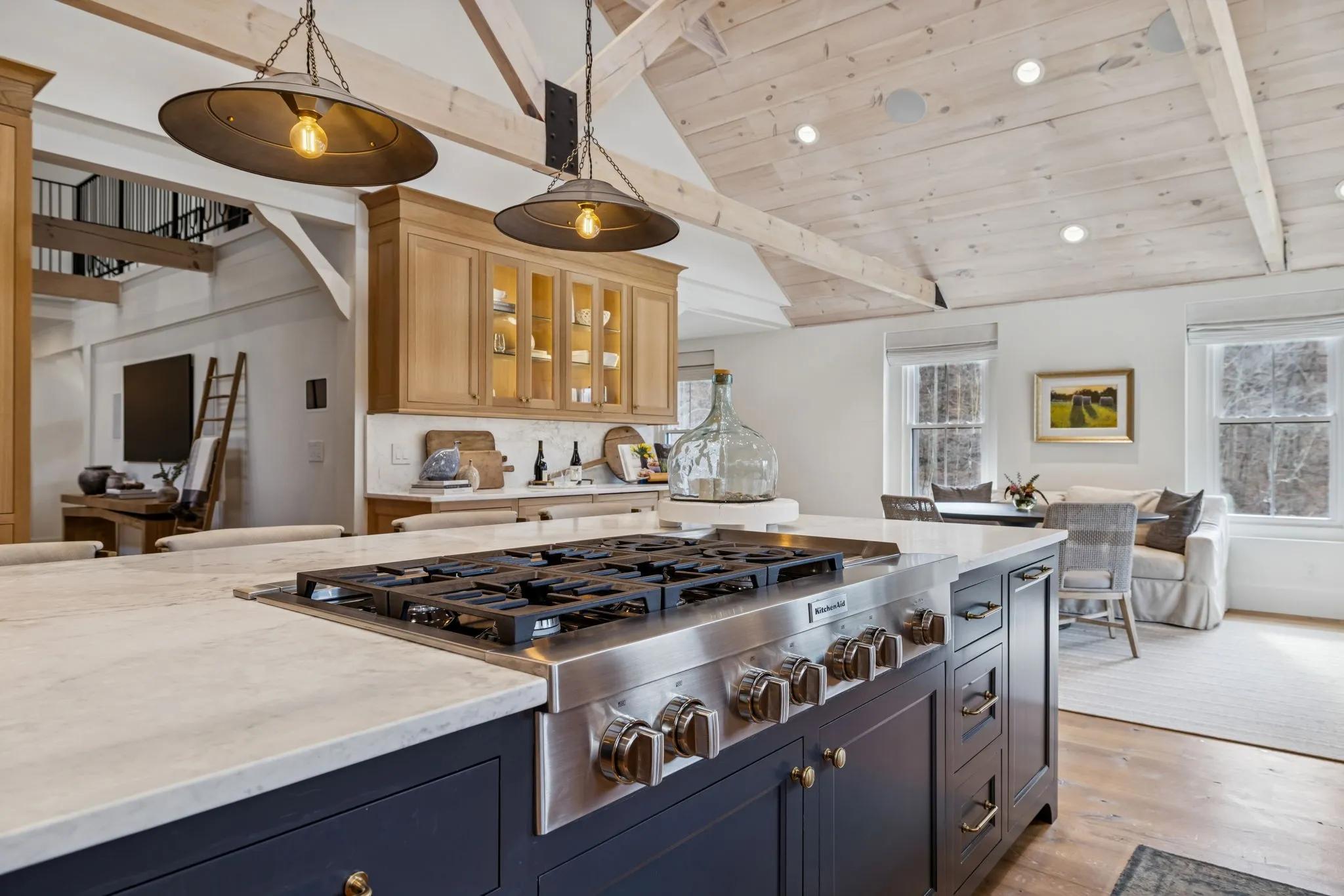 Anchoring the property, the 6,000 sq. ft. main residence is a Kathryn Zelenik Designs renovated masterpiece, offering 5 bedrooms, 5.5 baths, wide-plank white oak floors, custom cabinetry, and a light-filled master suite with sweeping views. With sleeping accommodations for up to 20, it effortlessly blends scale, sophistication, and comfort, creating the ideal setting for hosting guests or retreating with family.
