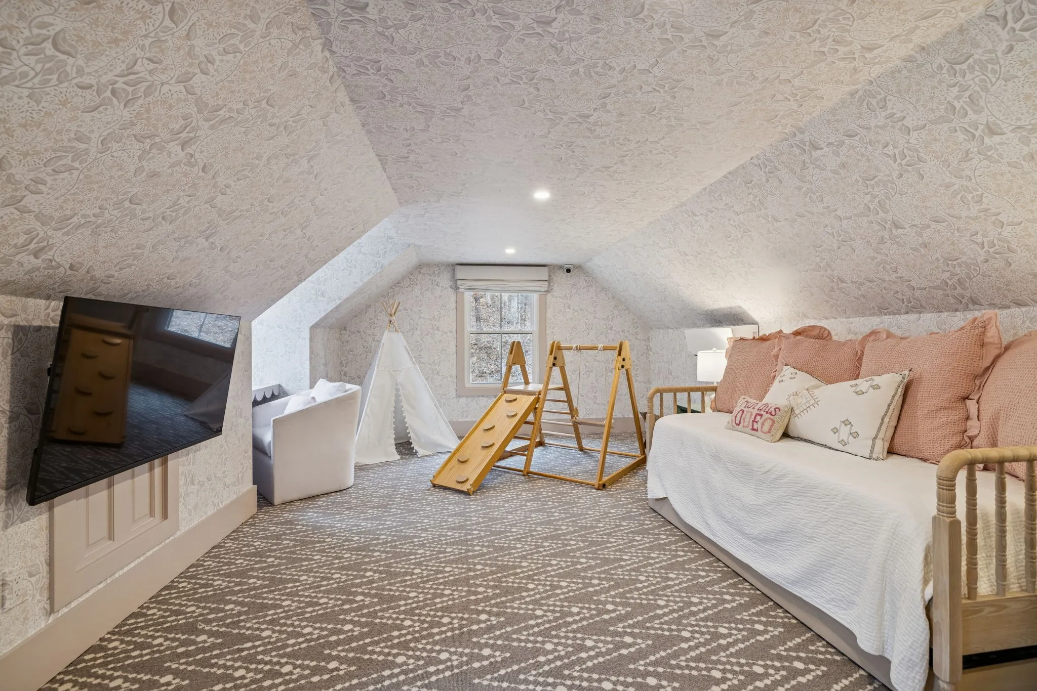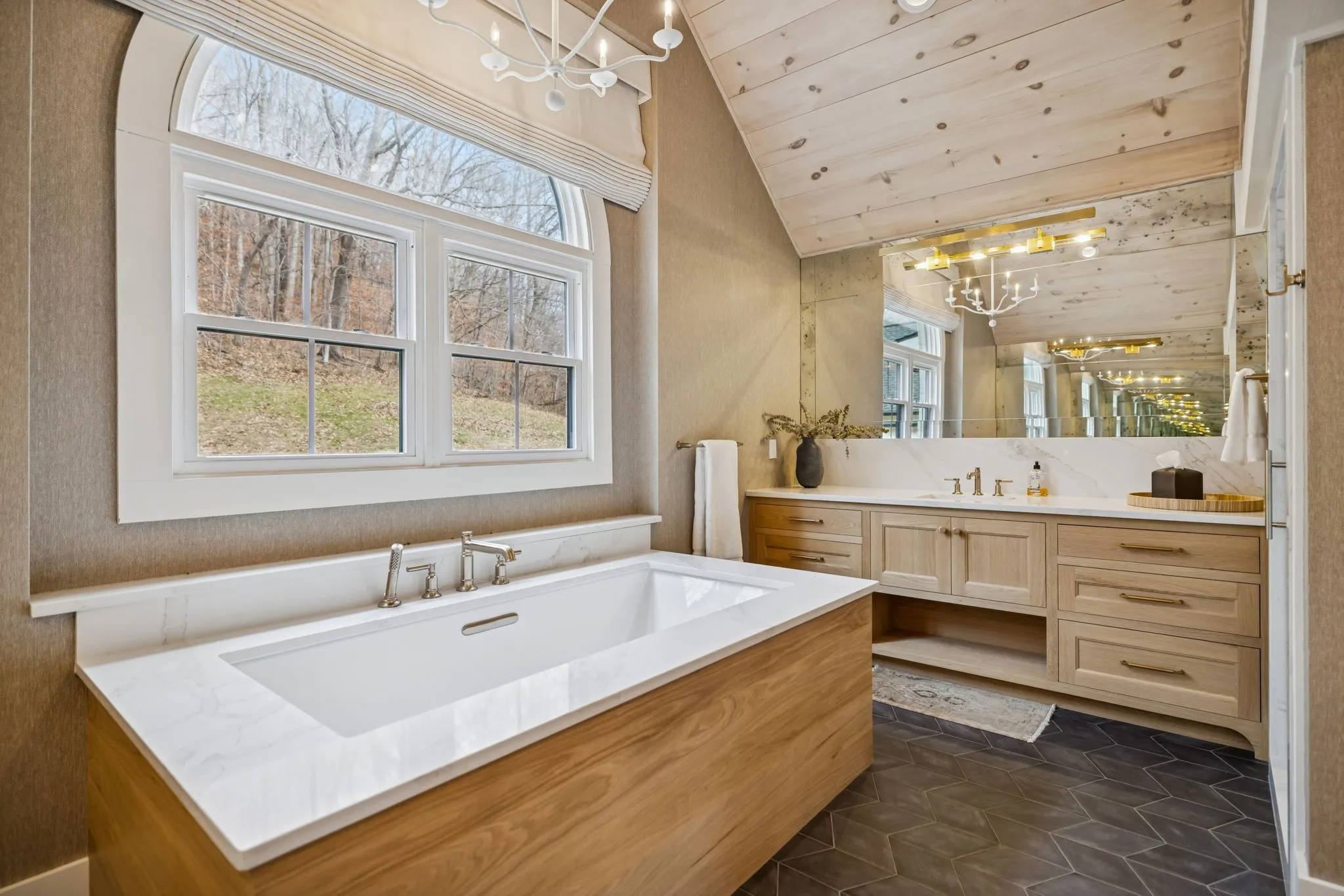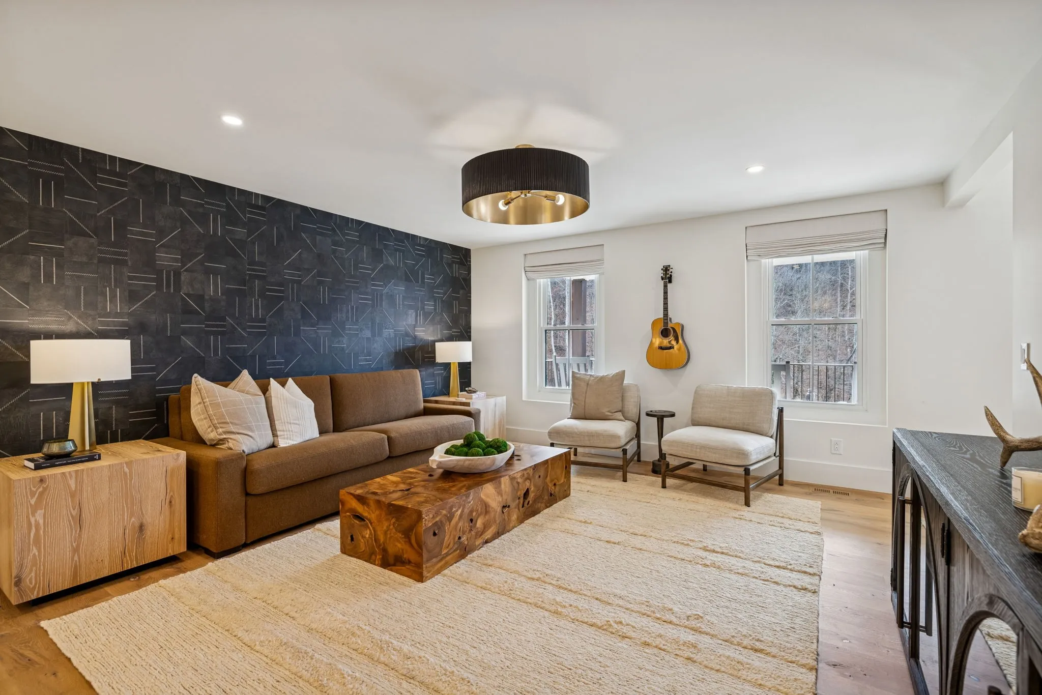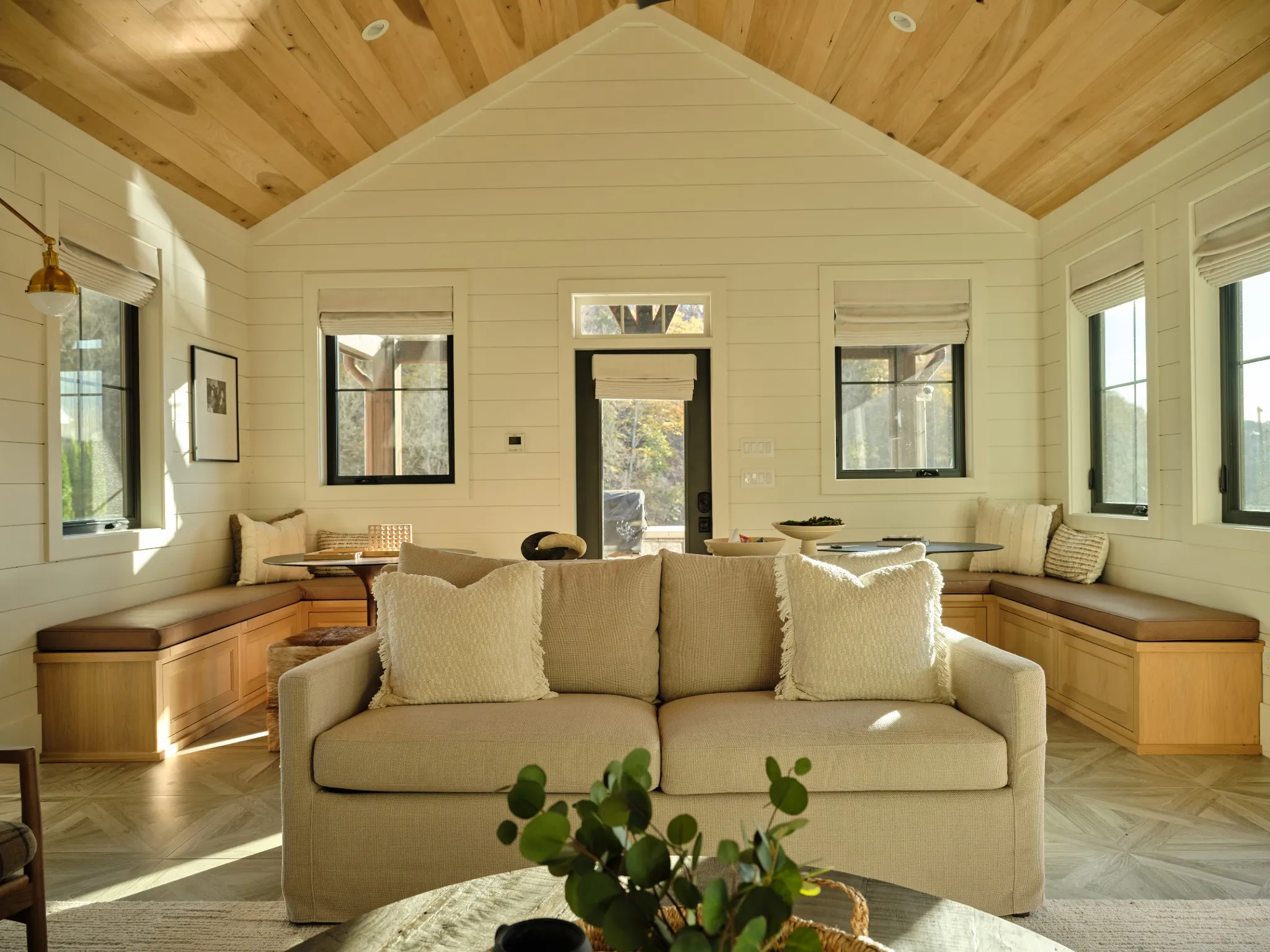 Anchoring the property, the 6,000 sq. ft. main residence is a Kathryn Zelenik Designs renovated masterpiece, offering 5 bedrooms, 5.5 baths, wide-plank white oak floors, custom cabinetry, and a light-filled master suite with sweeping views. With sleeping accommodations for up to 20, it effortlessly blends scale, sophistication, and comfort, creating the ideal setting for hosting guests or retreating with family.