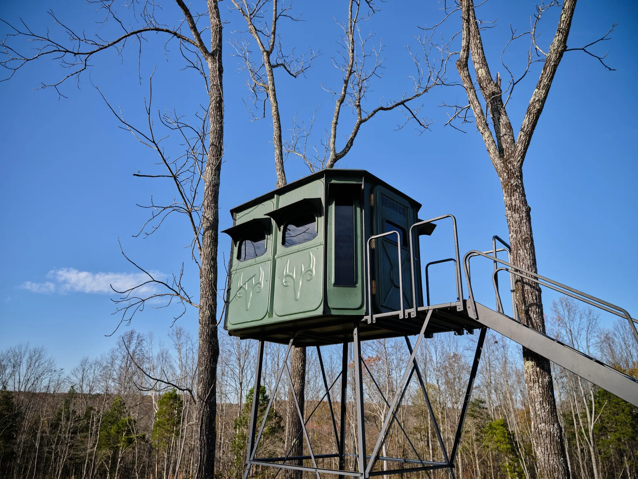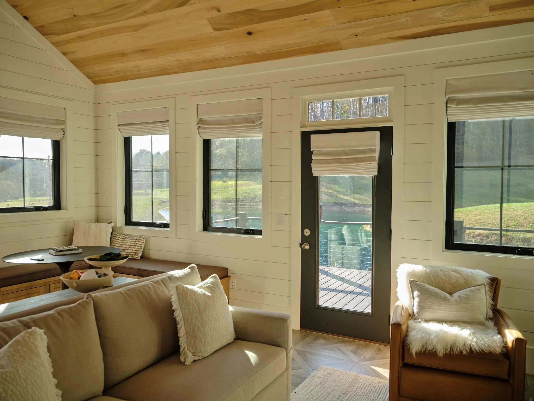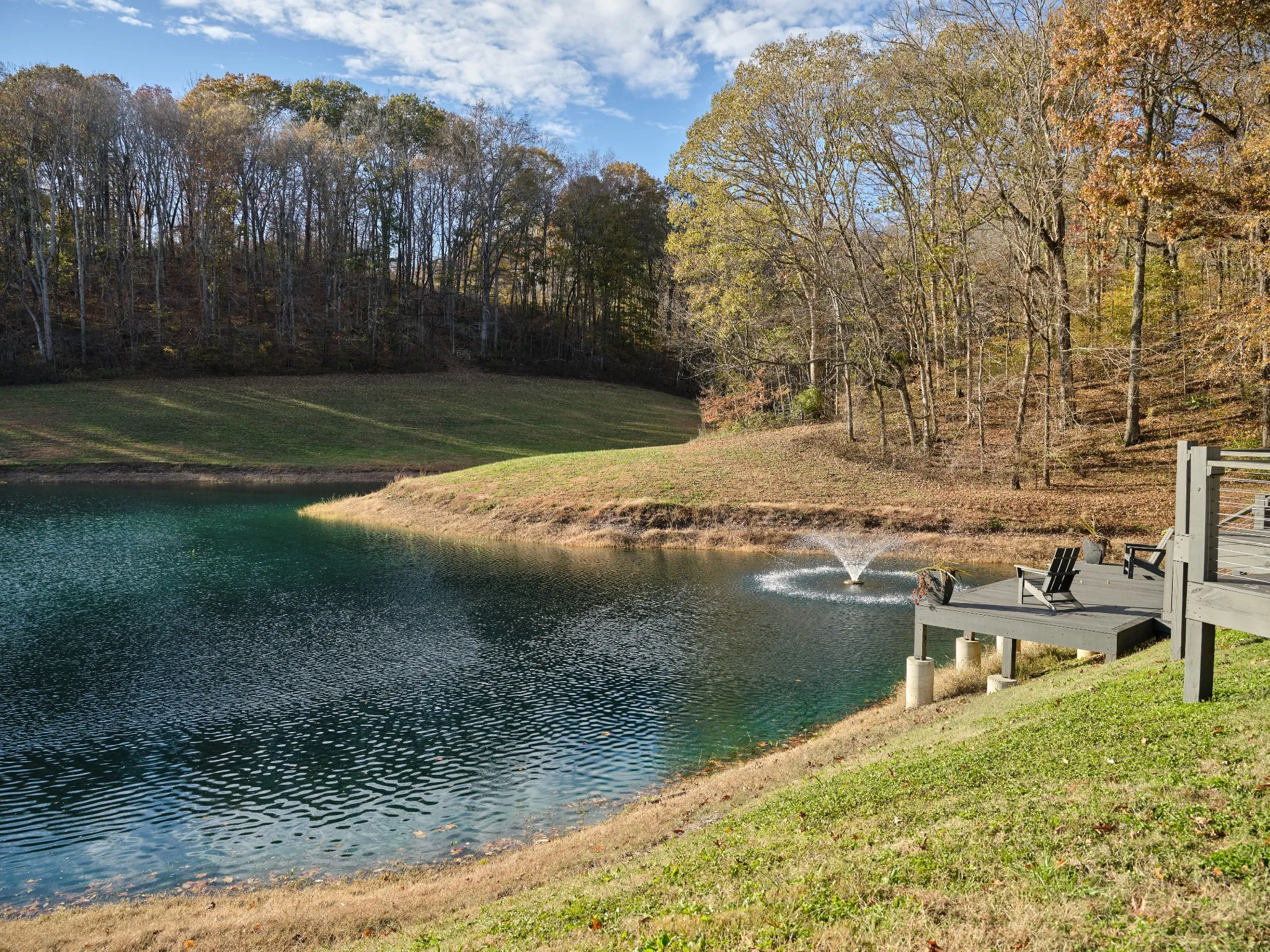 The estate unfolds as a curated destination: a newly built party barn, hidden deep in the holler, sets the stage for gatherings of 50+ guests in absolute privacy. A sleek pond-house with outdoor grilling creates an intimate backdrop for evenings of dining, wine, and conversation beside the water. For elevated sporting pursuits, a five-stand shooting field with an architecturally striking clubhouse—blending cypress wood and Tennessee limestone—delivers a world-class venue, while a stocked fishing pond, endless horseback and ATV trails, and professionally managed hunting grounds transform recreation into lifestyle.