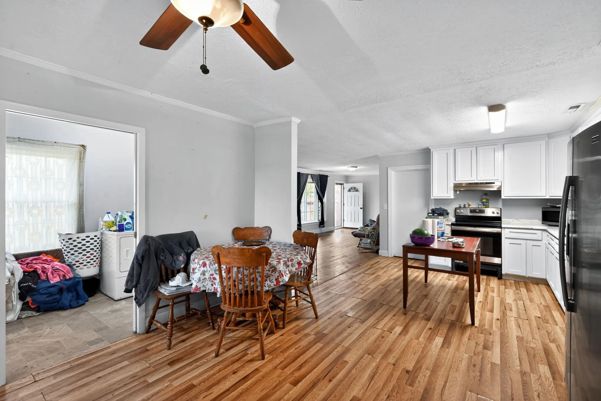 Set on a peaceful, level two-thirds acre lot, this inviting single-story home blends comfort, space, and small-town charm. Inside, you’ll find four bedrooms and two and a half baths, with a layout designed for easy everyday living. Rare find with a rich style single story home. The spacious living room is the heart of the home, anchored by a white brick fireplace that adds warmth and character. A large kitchen offers plenty of workspace and storage, perfect for home-cooked meals or casual get-togethers. Outside, the wide-open yard gives you room to breathe. Tons of potential ideal for a garden, play area, and lots of other outdoor activities or simply enjoying the quiet setting. If you’re looking for a home that feels grounded, open, and comfortable from the moment you walk in, look no further then this one.