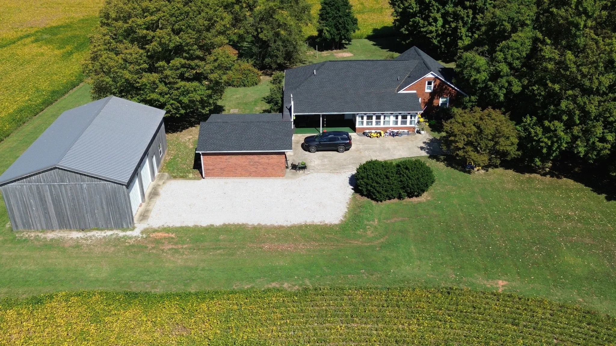 Welcome to country living at 881 Dinwiddie Road in Franklin, Kentucky! Originally built in 1936, this well-maintained home has been completely and tastefully renovated for modern living while maintaining its charm. Enjoy a generous amount of living space with an oversized family room, a living room, a heated/cooled sunroom, and a separate dining room. The family room and living room each feature a fireplace—one freestanding, and one original. The main floor includes a primary bedroom and full bath, along with an additional bedroom and a half bath off of the dining room. Upstairs features a third bedroom and a full bath, with bonus space that could serve as a pass-through bedroom if needed. Shaker cabinets, stainless steel appliances, leather finish granite/subway tile, and a breakfast bar all contribute to a stylish kitchen with country views through the window. Step outside to enjoy your morning coffee or a nice evening on one of two covered porches (front and side). This property includes a full acre, a 2+ car detached garage, and a 45′ x 30′ garage/workshop with concrete floors and electric. Located conveniently just minutes from downtown Franklin and 31W. Call today to schedule your private showing!