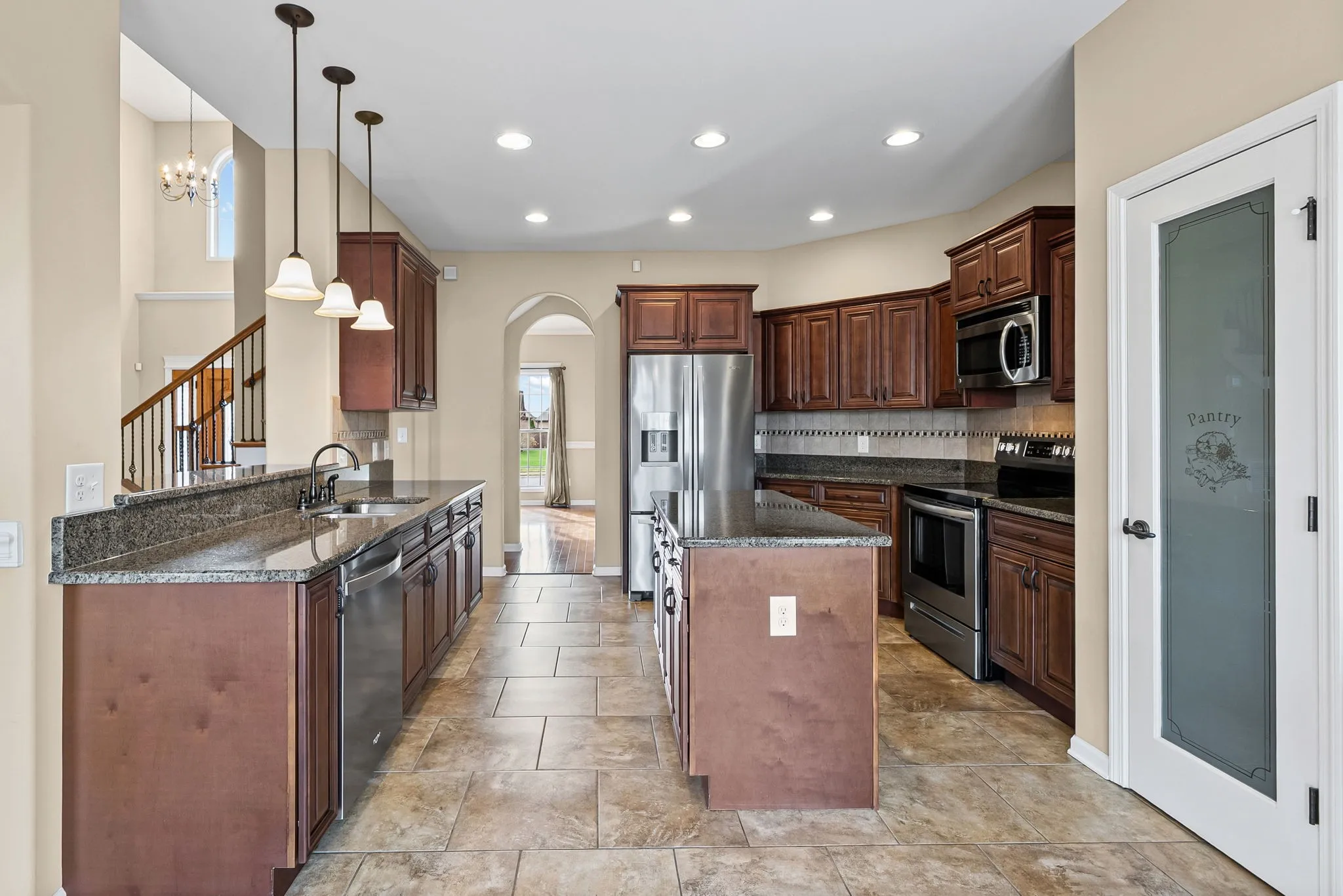 Inside, you’ll find a spacious main level with an open flow between the living room, dining room, kitchen, and breakfast nook. The kitchen features a pantry, centrally located island, and overlooks the bright breakfast area and main living space—perfect for gatherings.\n