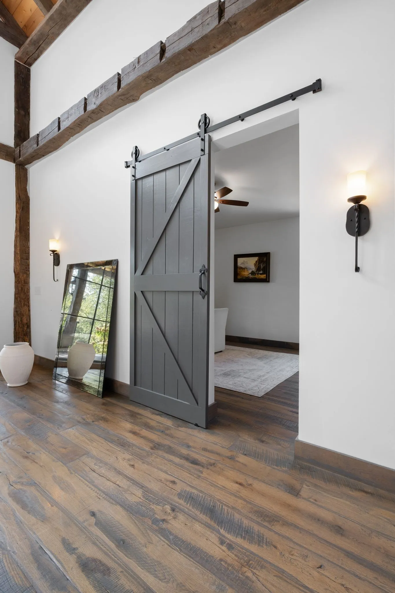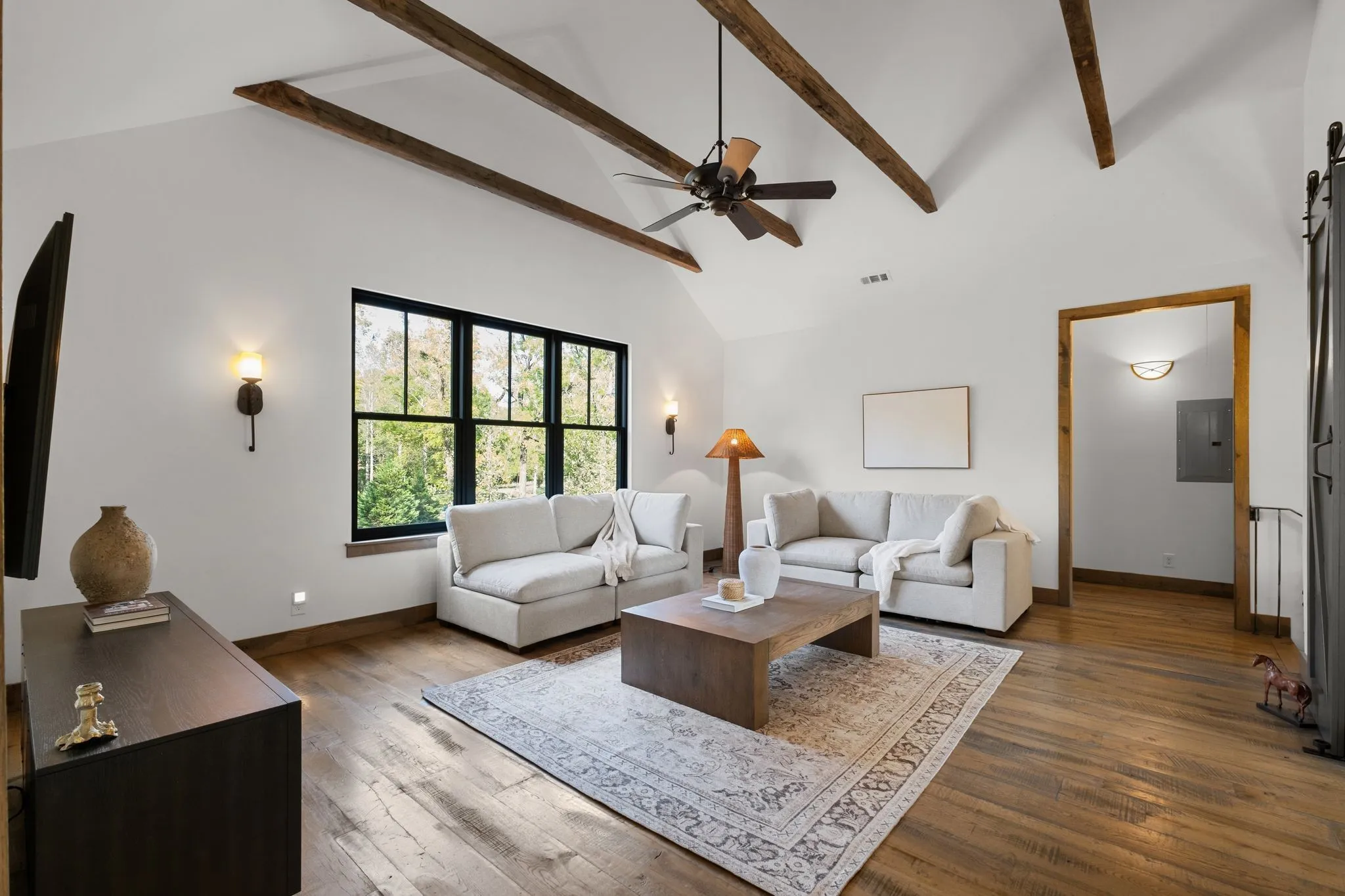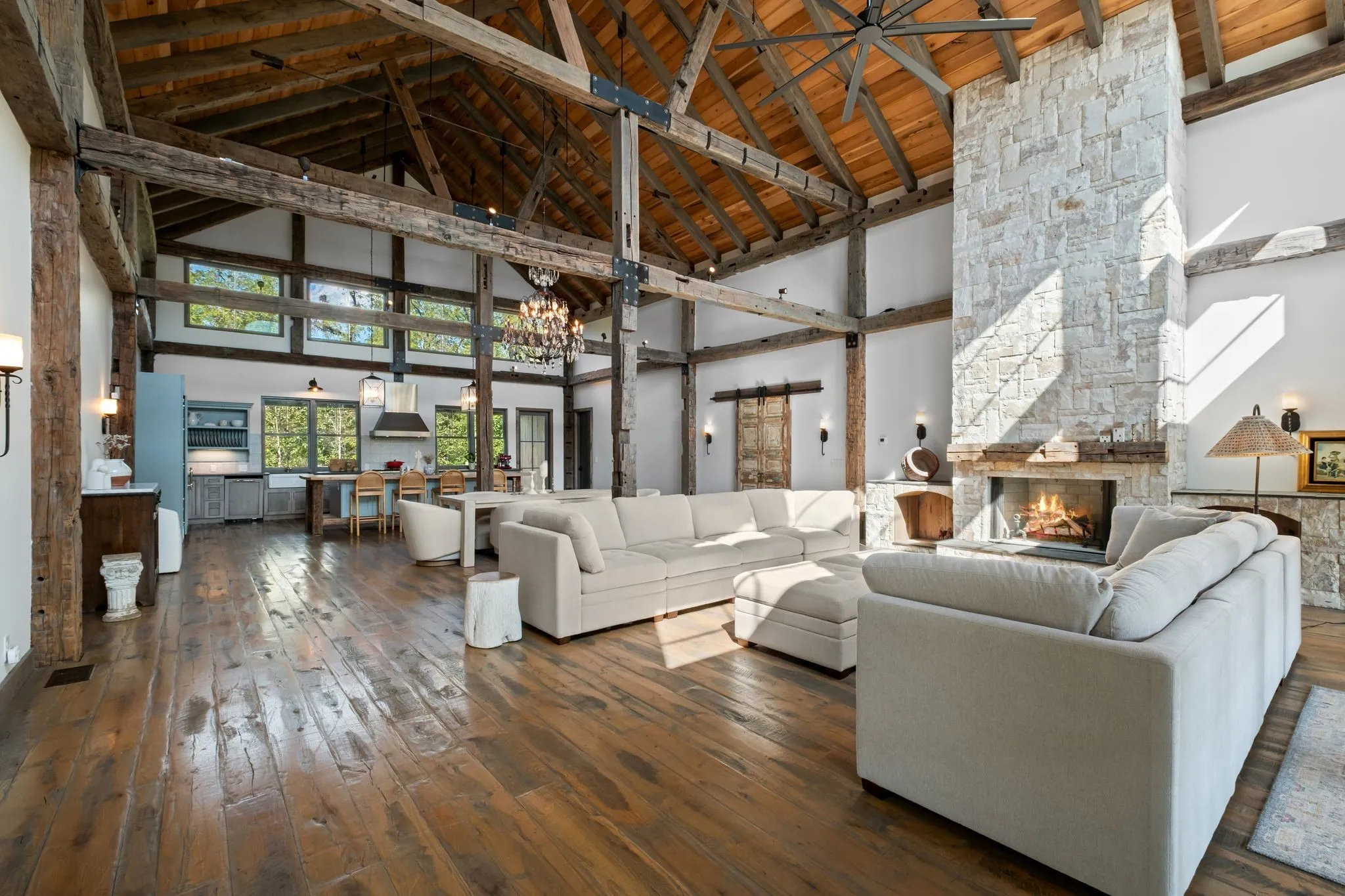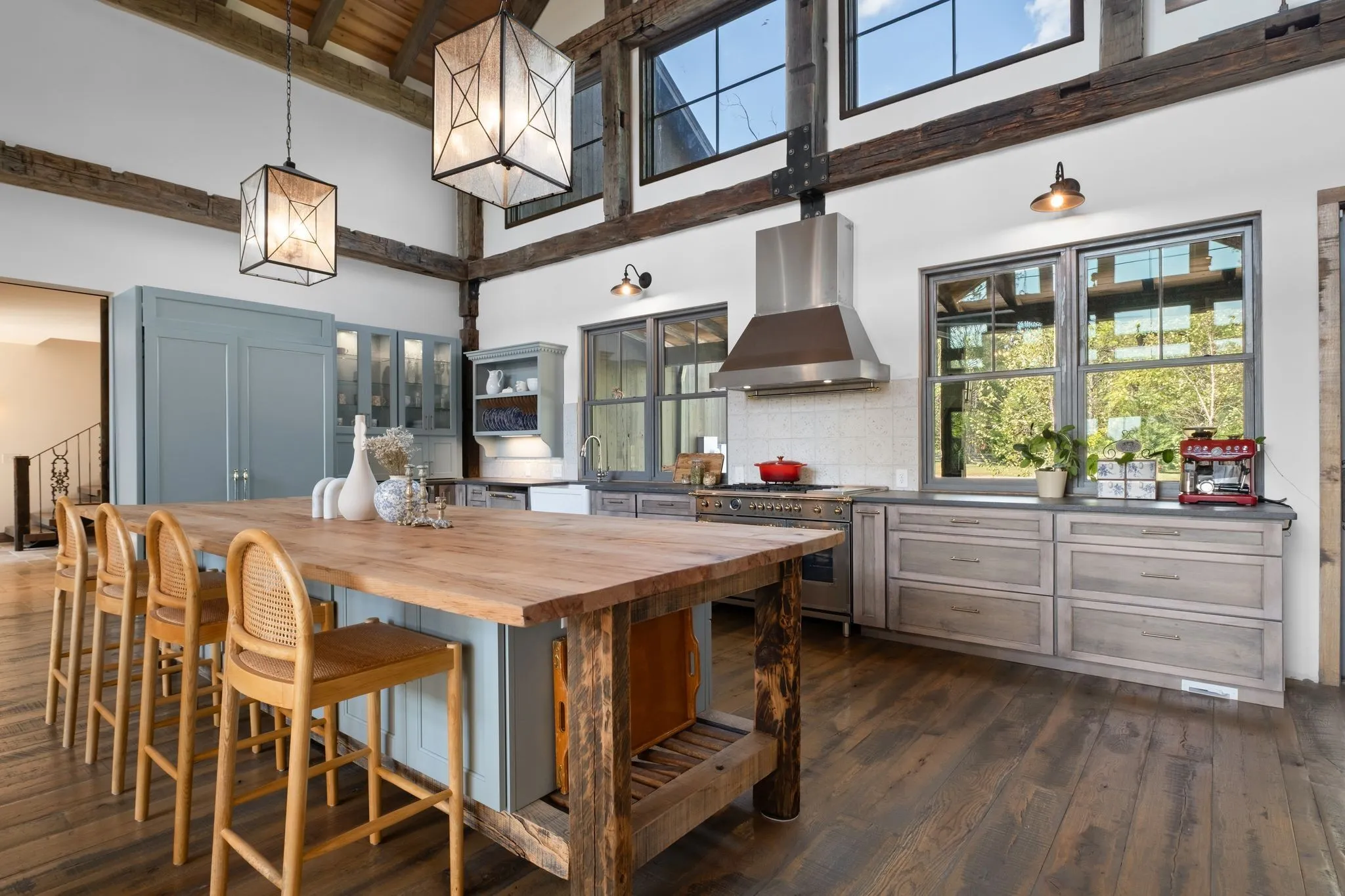 There is a moment, just as you arrive, when the world becomes quiet and the beauty of Tennessee’s countryside starts to unfold around you. Here, on seven peaceful acres, this 5,371 square foot luxury home offers a place where comfort and elegance naturally meet the calm of nature. Inside, the great room rises with dramatic presence with 28 foot ceilings, 150 year old Montana timber beams, and sunlight spilling in from every angle. It is a space made for celebration and connection, yet equally perfect for quiet mornings beside the fire as the day slowly begins. The chef’s kitchen invites gathering, with Bertazzoni appliances, generous workspace, and an adjoining scullery that keeps hosting effortless when friends and family fill the home. Every element works together so you can enjoy being present in the moment. The main-level primary suite becomes a personal retreat framed by historic Indian teak doors. A spa style bath offers the perfect place to unwind, while a second bedroom nearby creates flexibility for guests or a dedicated office. Follow the graceful French Quarter inspired staircase to the upper level, where three additional bedrooms, including a secondary suite, provide comfort and privacy. A bright studio space offers endless possibility a creative haven, home gym, lounge, or an extra bedroom for the growing household. Outdoor living becomes part of everyday life here. Over 1,500 square feet of porches and terraces overlook gentle woods and soft evening skies. Enjoy morning coffee surrounded by nature or step into the swim spa under a blanket of stars this home encourages you to slow down and savor the setting. Every detail reflects thoughtful design and timeless style, making this residence a place that feels warm, refined, and unmistakably special. A home built for living well.