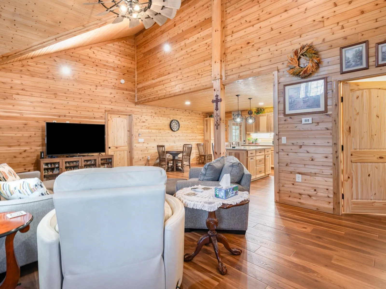MOTIVATED SELLER..BRING ALL OFFERS!! Welcome to your very own Mountain-inspired escape! This custom “True” log cabin home sets on 3+ acres combining rustic luxury with modern comfort. Home was built to last with many upgrades providing for low utility bills and allergy control. Crafted with a rich combination of cedar and pine, the home provides natural warmth and character throughout every turn. You will be greeted by soaring vaulted ceilings and an expansive great room. The open floor plan flows seamlessly into a cook’s kitchen featuring a double oven, 5 burner glass cooktop stove and an oversized island. A oversized flexible sunroom/flex space adds even more versatility, perfectly suited for a reading lounge, creative studio, home office, or your own person wellness space. Finished back porch adds 490+ sqft livable space. At days end, wind down in the jacuzzi overlooking the sunset! Perfect spot to unwind, take in nature and enjoy the beautiful sunsets Tennessee has to offer.