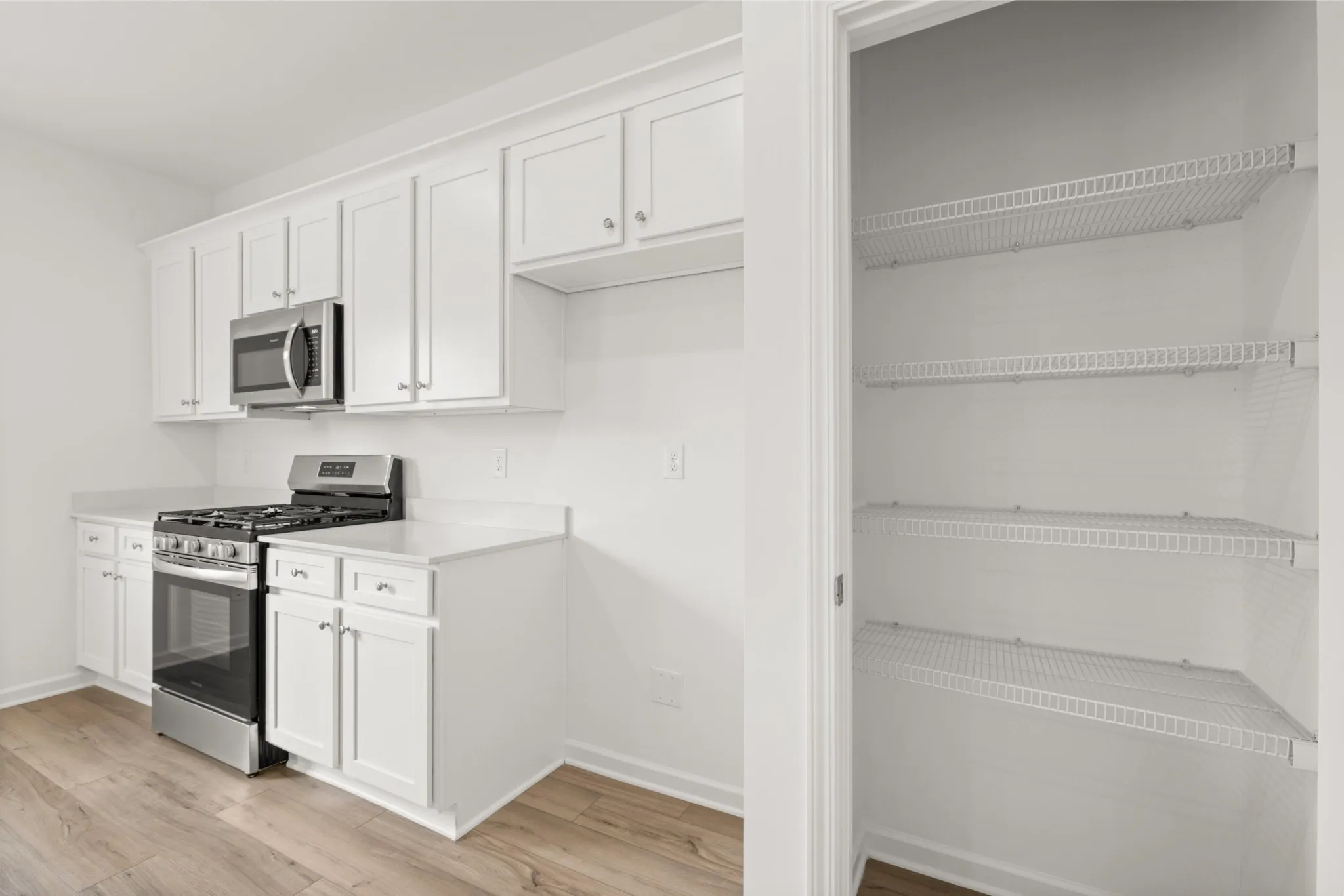 When you enter the Charleston floorplan, you will be greeted by a wide entry and a dedicated office space. As you proceed you will find a half bath, and ample storage spaces before entering the open great room, dining room and kitchen. The kitchen is equipped with a gas range, a large pantry, and an oversized quartz island. Head up the stairs and you will find a loft space, three generously sized guest bedrooms, and oversized laundry room, and an owner’s suite with it’s own bathroom, double sink vanity, and walk in closet.