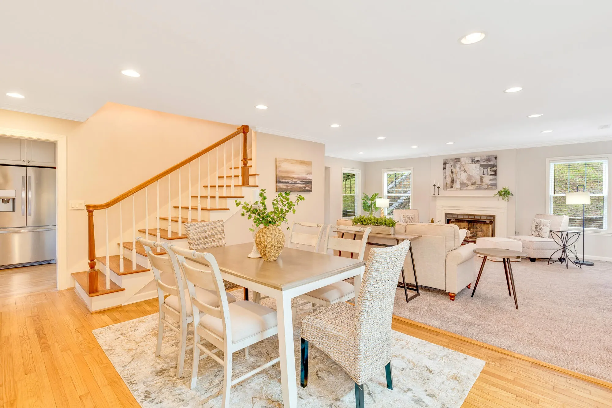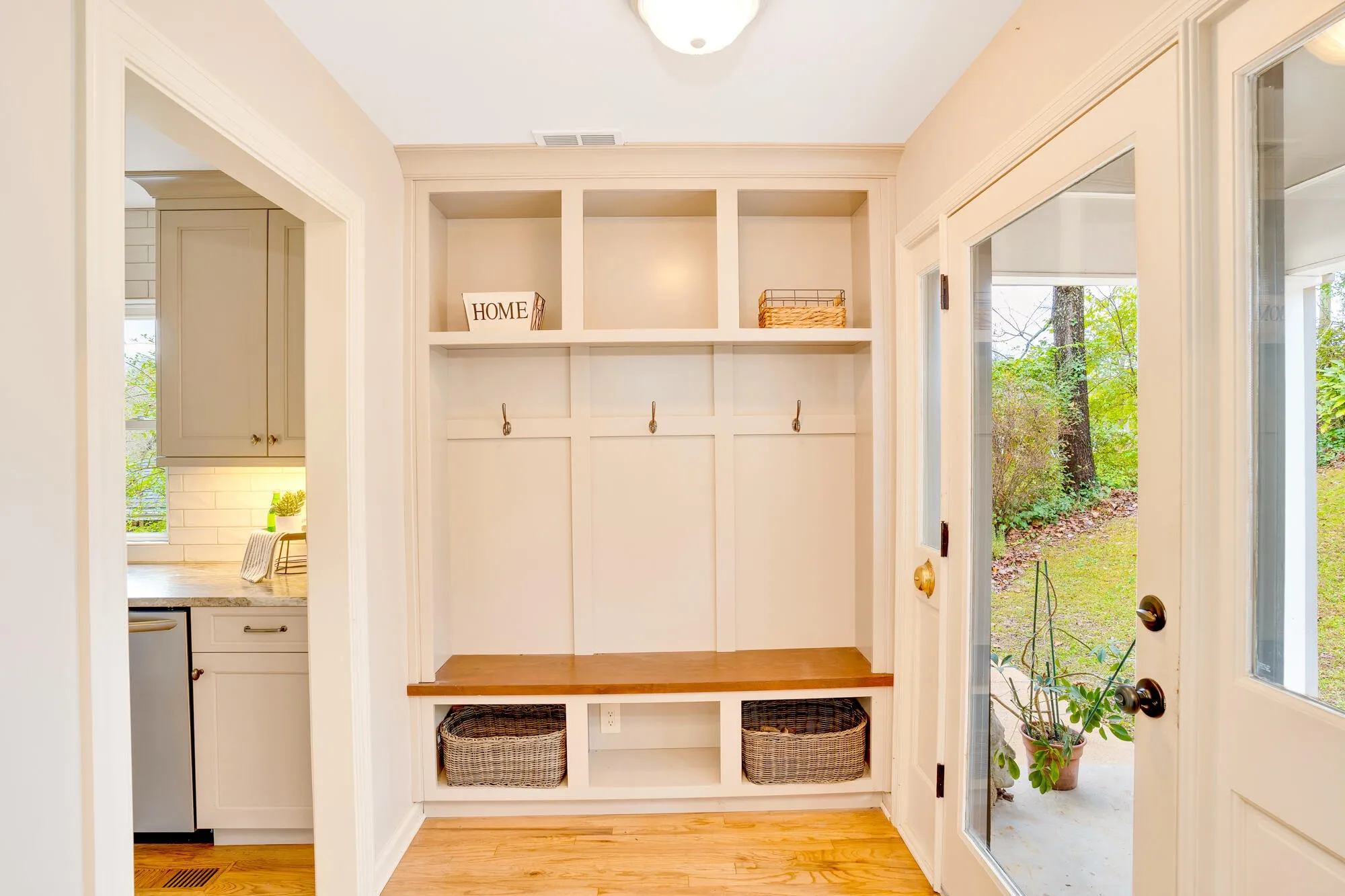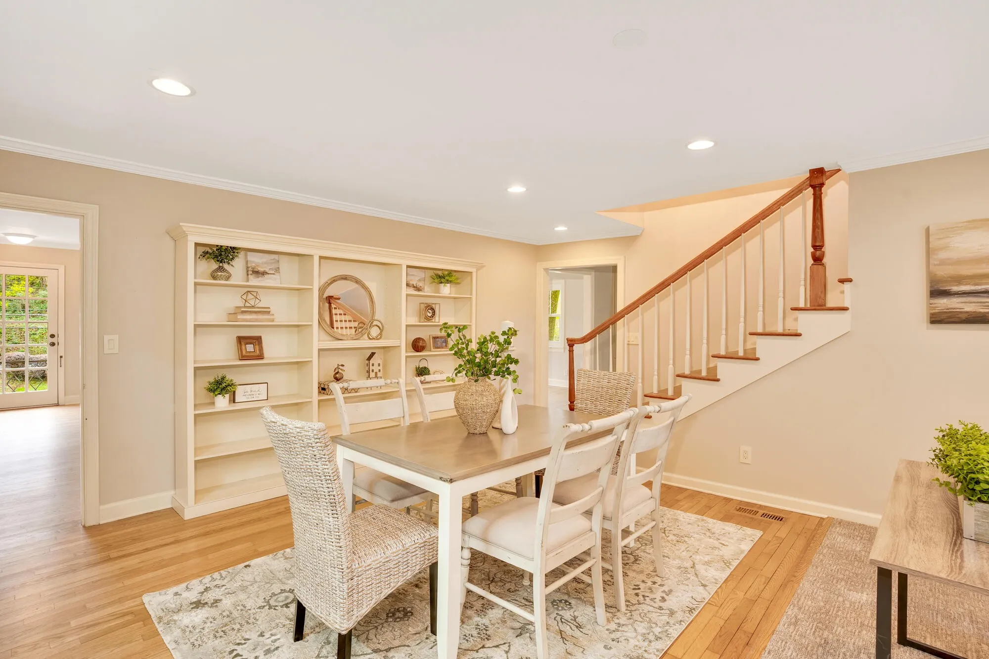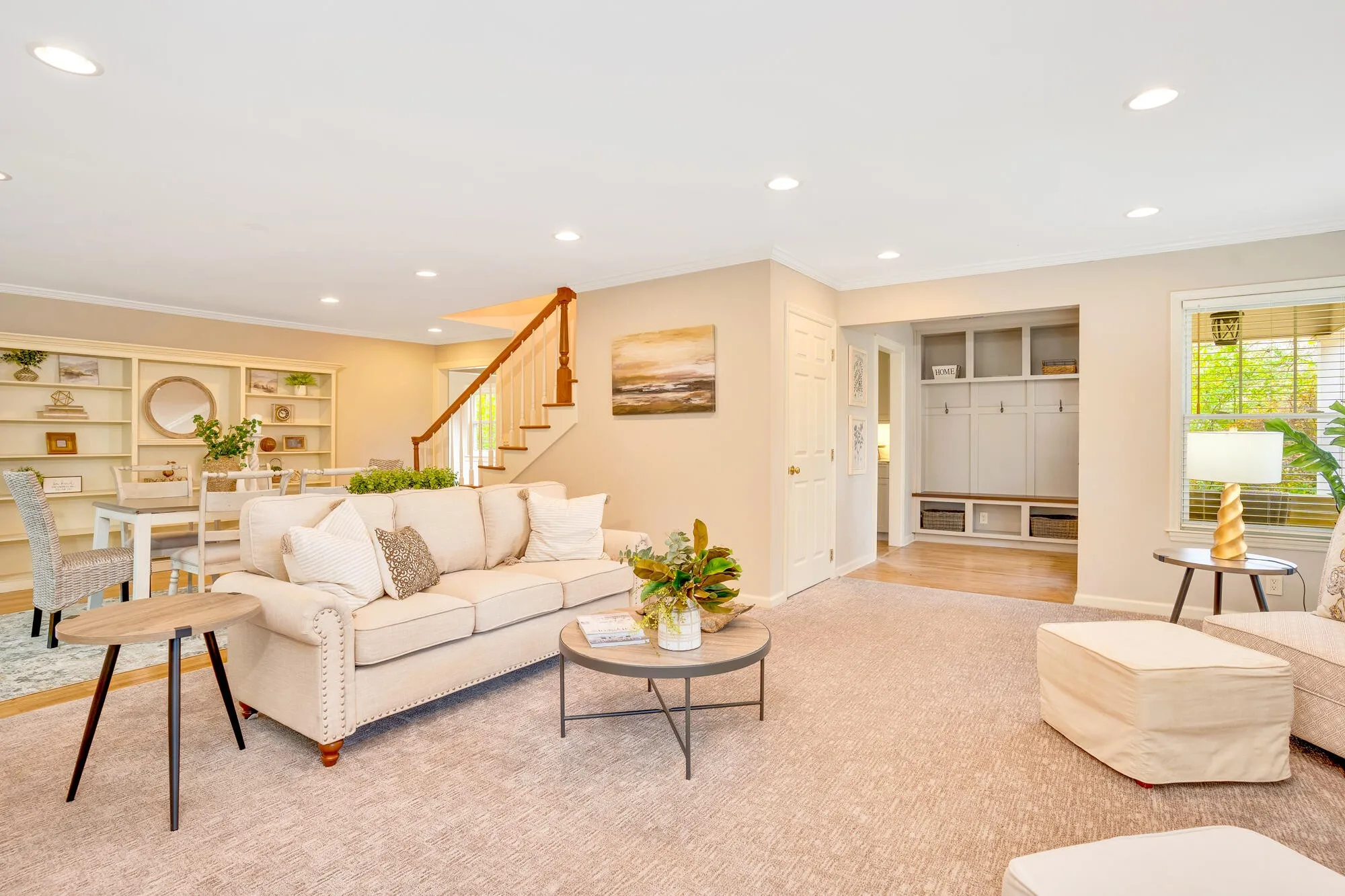Step inside to find a spacious drop zone and custom mudroom designed to keep life organized. Original hardwood floors flow through the living room, dining room, breakfast room, office nook, and laundry room, offering warmth and character, while fresh paint and new carpet add a clean, modern finish. Built-in bookcases, a dedicated office nook, and custom closets in most bedrooms create exceptional storage and lifestyle flexibility — ideal for working from home, hobbies, or everyday living.\r\n