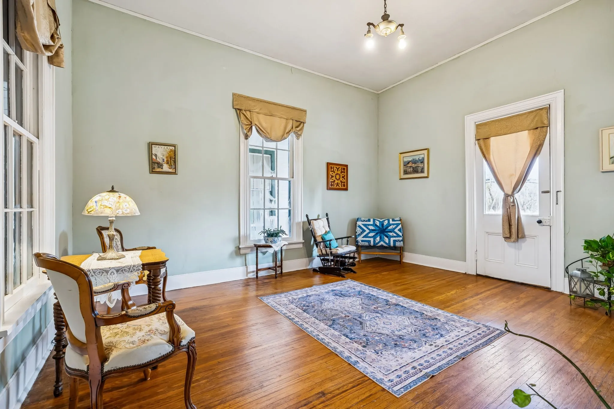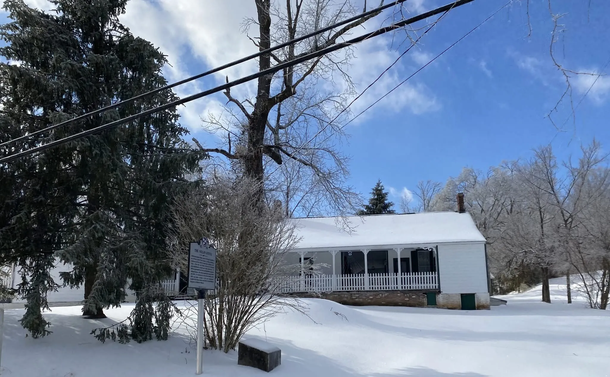 This historical landmark tells of a “bygone era” perched high on the hill overlooking downtown Waverly. Enter into soaring 12ft. ceilings and an enormous formal living and dining room with a private front porch complete with a swing. The front of the home faces south as it was originally constructed. You can just imagine the extraordinary events that have taken place entertaining! Continue on into what was a “Ladies Parlor” with a fireplace. Next you will enter three large bedrooms each with a bath and fireplace of their own. The length of the east side features a covered porch. In addition there is a “Gentlemen’s Room” that is separate from the house with a fireplace. Legend has it that Jesse James played poker here. The Nolan House was built in 1870 by James Nicholas Nolan, a Civil War veteran who served at Fort Hill. The house is a late 19th-Century vernacular home with Italianate and Queen Anne influences and is listed on the National Registry of Historic Places. The original weatherboard section is embellished with dentil moldings and brackets. The interior contains many original mantels and moldings. Currently the home is entered on the north side of the home through a covered breezeway. On the south side of the breezeway is a completely separate living area w/ a large 10×12 room previously used as an additional kitchen. A large bedroom, bath and a sitting room or second bedroom. The kitchen features stainless updated appliances and continues into a laundry room featuring a wall of cabinets and drawers for kitchen storage. The grounds of the home are lovely featuring large level areas for entertaining around the home and boasts 8.7 acres of land. Privacy abounds and so does the wildlife with deer that were just visiting. There is a detached Carriage house/garage that was added in 2007 24 x 30 with high ceilings. This home and grounds have been used a private residence, a Bed & Breakfast, & a wedding venue. Let your imagination take over! Could be 8 bedrooms!