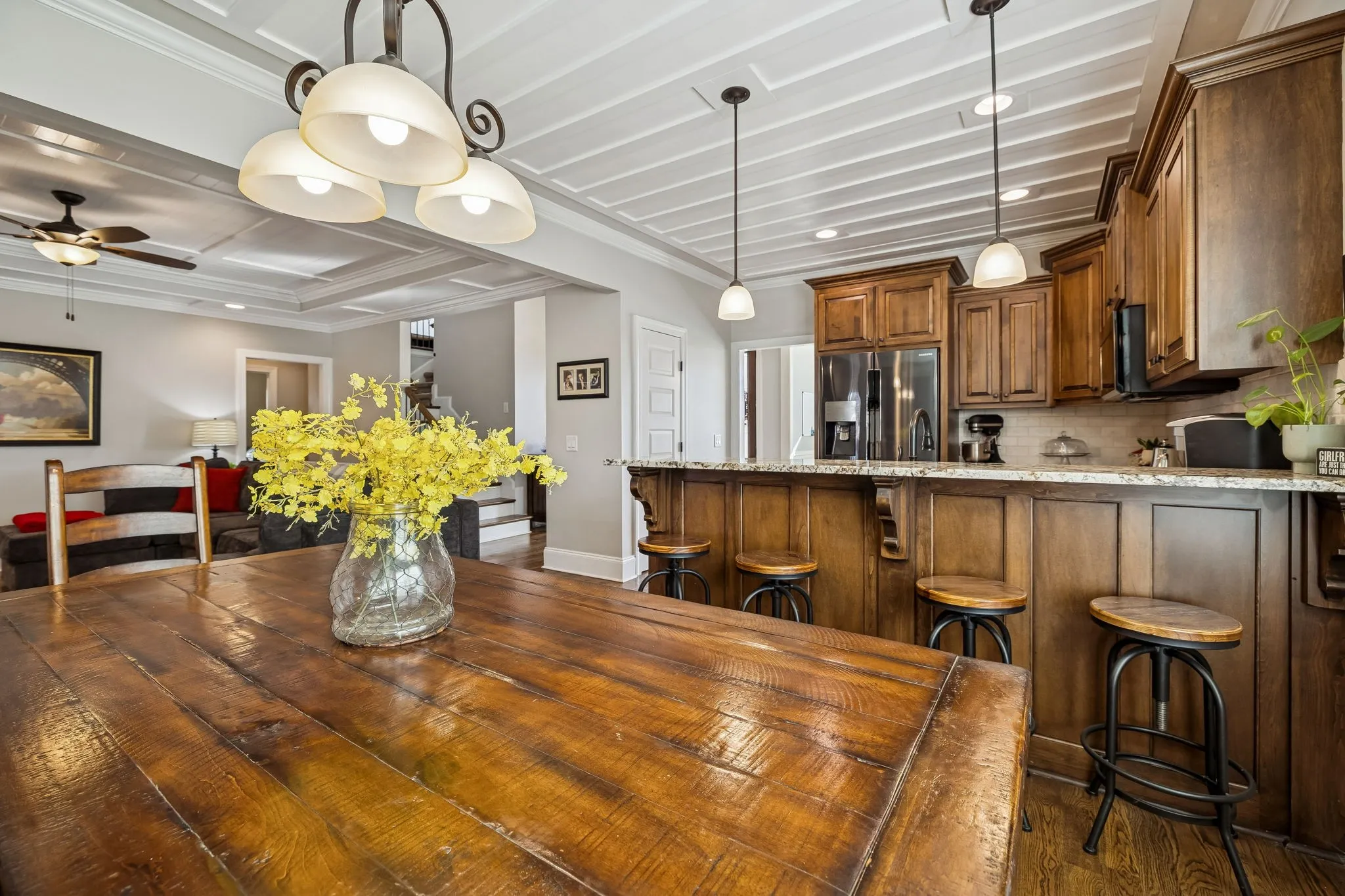 Built in 2016, this 4 bedroom 3 bathroom Mt. Juliet home offers a welcoming layout and great outdoor living. A large paver patio with a built-in firepit and a screened-in porch create an ideal space for relaxing or entertaining. Inside, you’ll find fresh paint, a cozy living room with a fireplace, and beautiful ceiling and wall moldings for added personality and charm. The primary suite features a spacious walk-in closet, and one of the upstairs bedrooms includes its own walk-in as well. The neighborhood pool sits just across the street, and the home is within walking distance to Mt. Juliet High School and the Greenway to Charlie Daniels Park. This move-in ready house has a new roof and a tankless water heater for additional peace of mind.