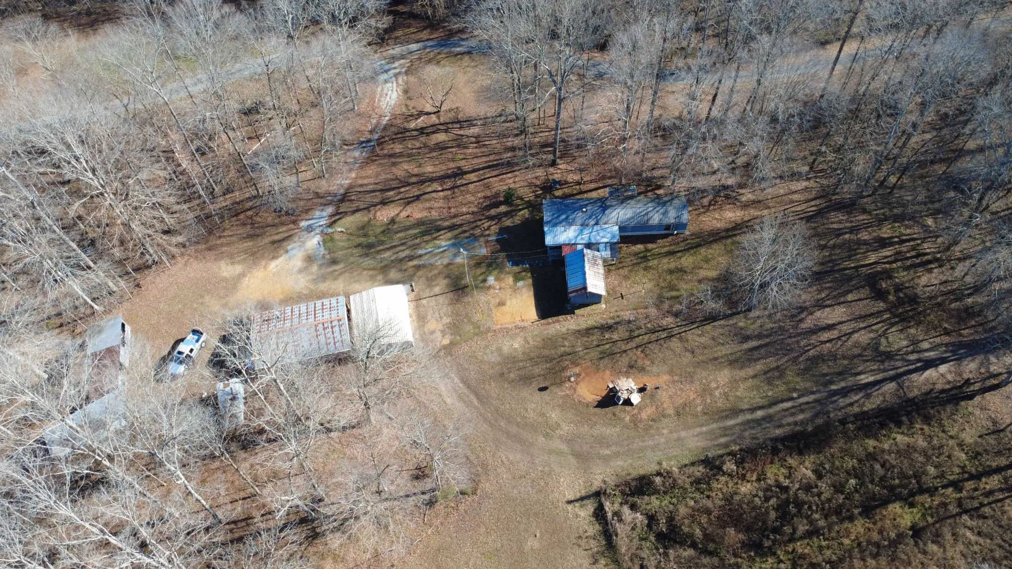 Welcome to this beautiful property with so much to offer! This land would be perfect for a hunting retreat or for a new home site. With 2 creeks that run through it, you will have tranquility with the peaceful flowing water sounds. One of the creeks runs along the northern border, and the second creek is across the street from the driveway. Per the owner there is also a natural spring on the property behind the wooden storage barn. There is a 2-car garage, a covered carport, a utility room, and a storm shelter to make this property an even better retreat from the busyness of life. The property has a well and a septic system in place. The mobile home could potentially be updated to live in but is being sold AS-IS. Please see all documents in Documents Section. Watch the video
