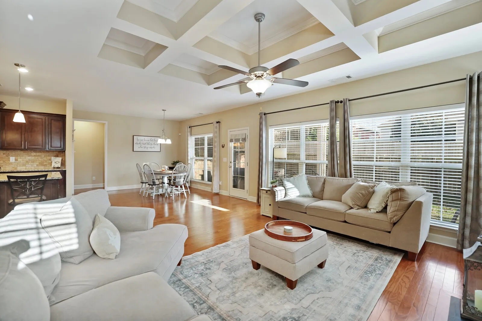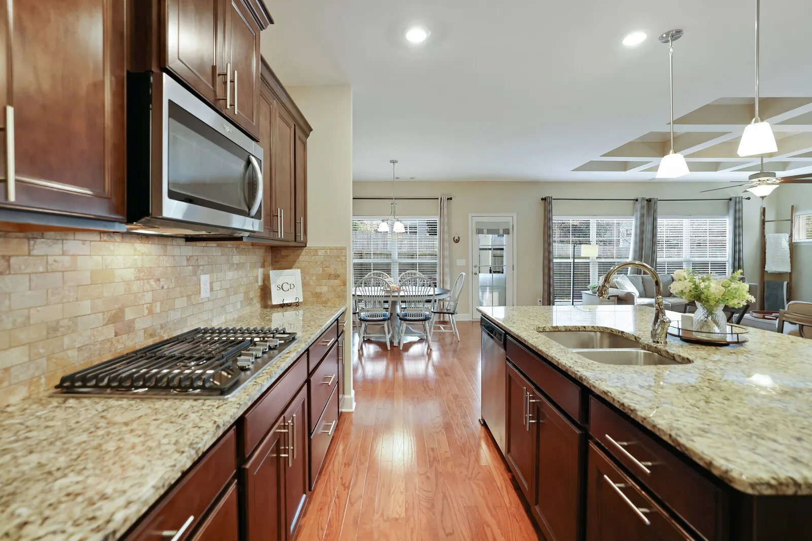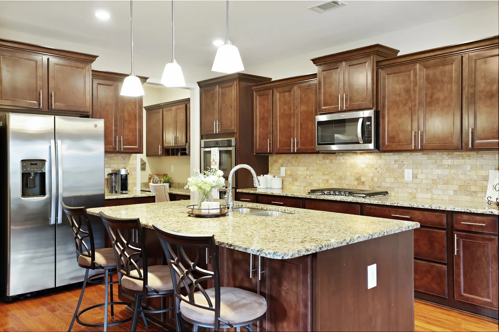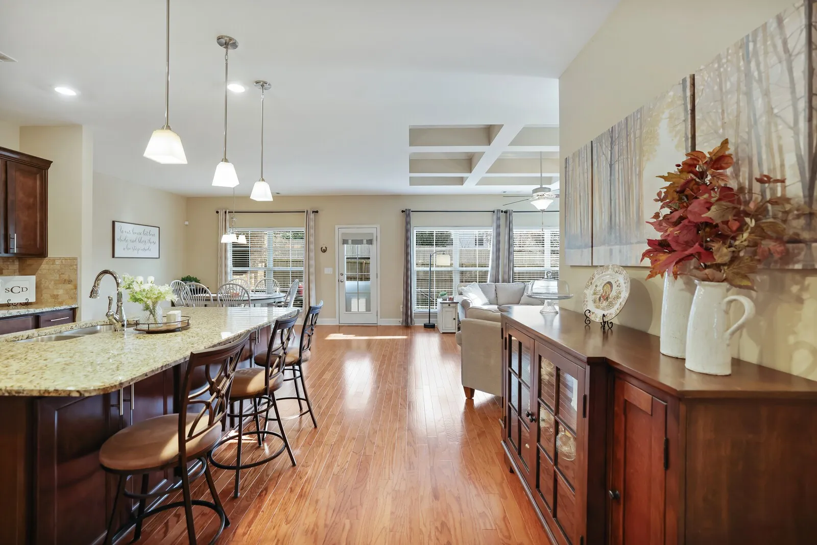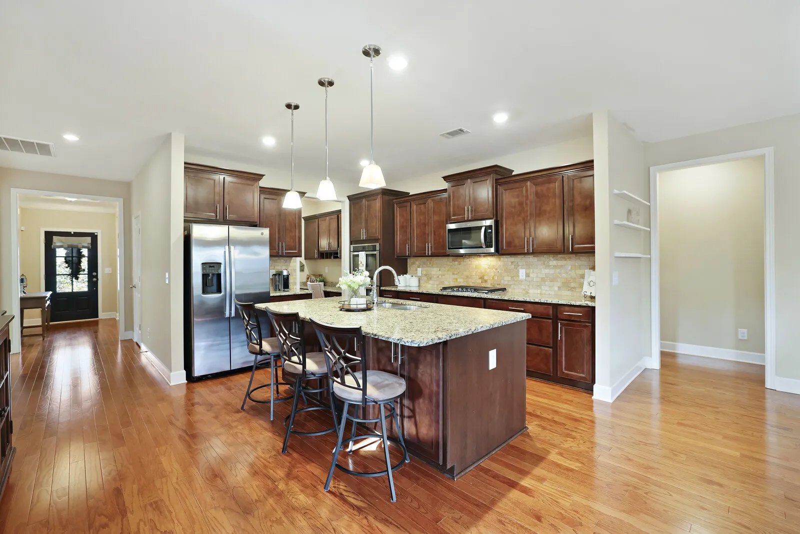 Featuring hardwood floors throughout, granite countertops, and stainless steel appliances, this open-concept layout is perfect for entertaining and filled with abundant natural light.