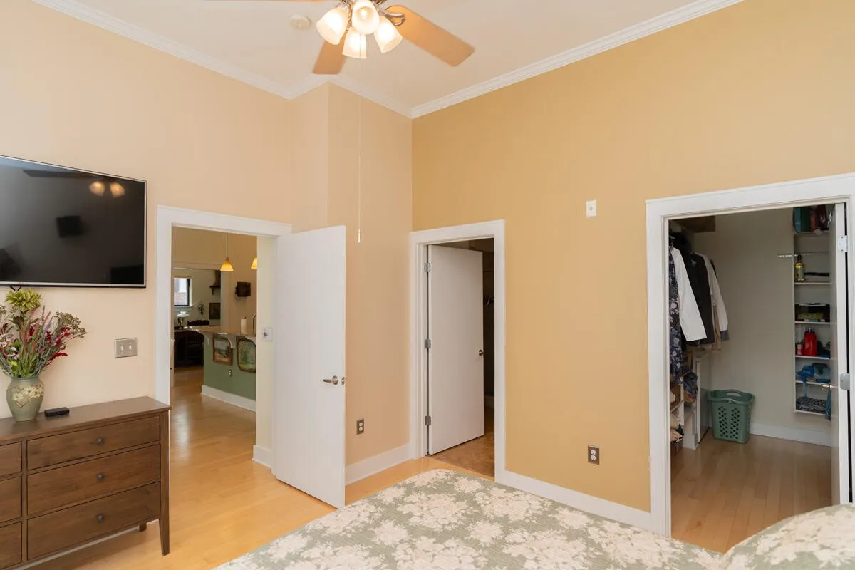 The primary bedroom is generously sized and features an ensuite bath with double vanities and a large walk-in closet. Reserved parking in spot #1 ensures hassle-free access, while proximity to both the Walnut Street and Veterans Bridges offers seamless connection to the North Shore’s shops, restaurants, Coolidge Park, and year-round events. Residents of Museum Bluffs also enjoy access to a rooftop deck with sweeping views, a perfect retreat for morning coffee or sunset evenings.