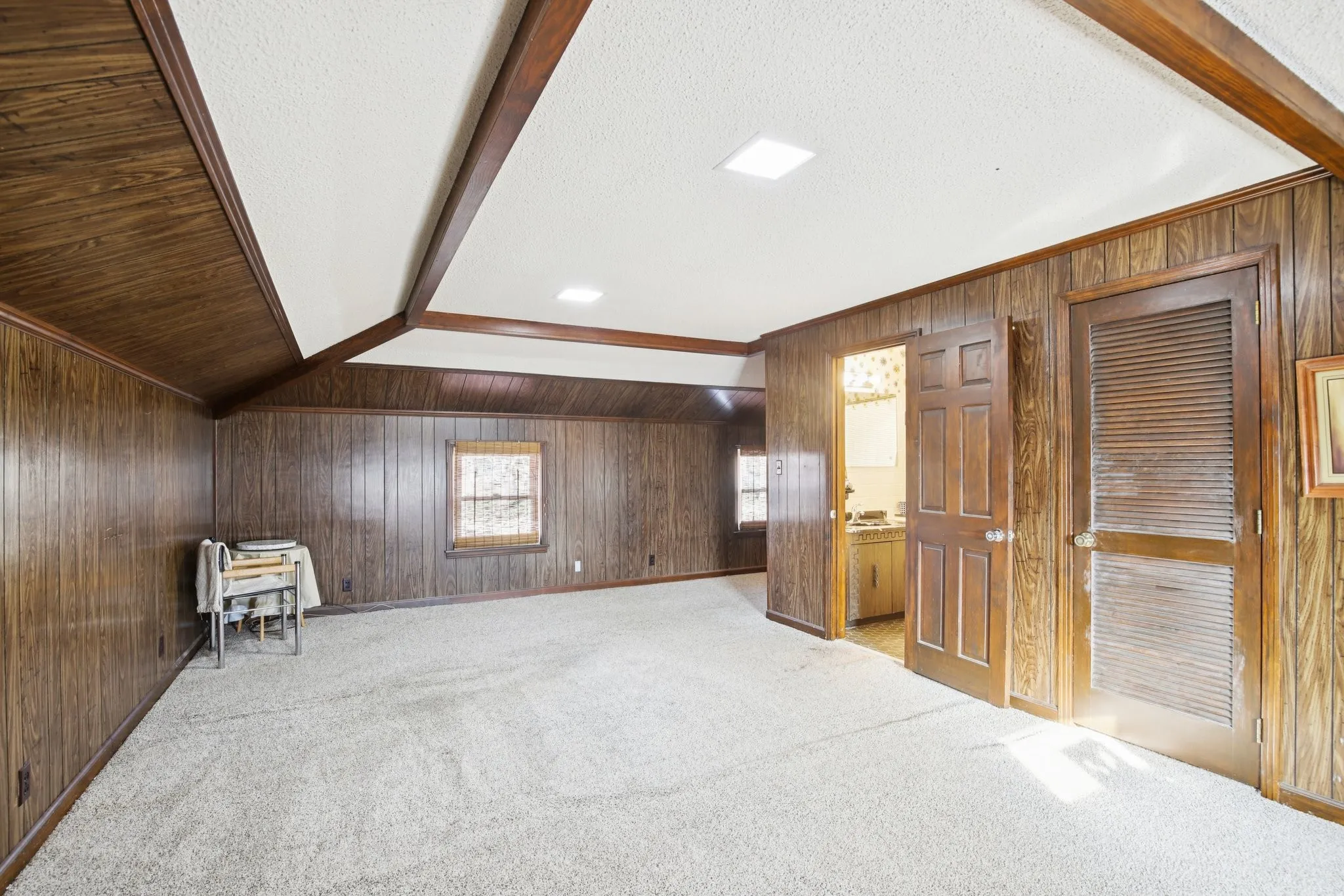 Upstairs, a spacious bedroom with its own full bathroom provides privacy and comfort.