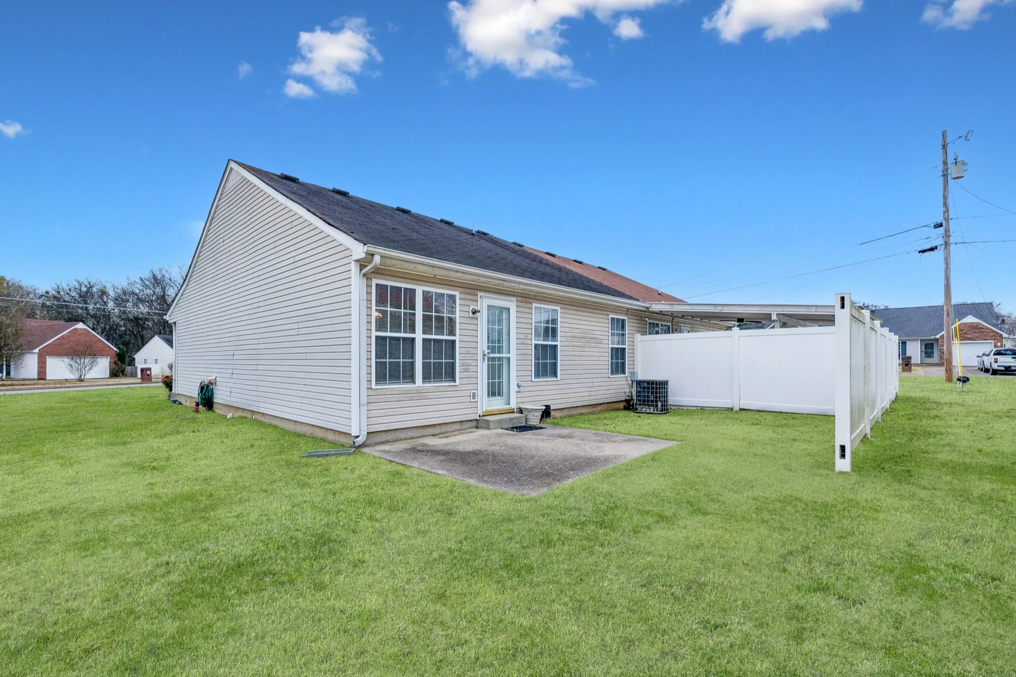 Enjoy coffee on the covered front porch or unwind on the large back patio, complete with a privacy fence. With no stairs and everything on one level, this home is ideal for anyone seeking comfort and convenience.\n