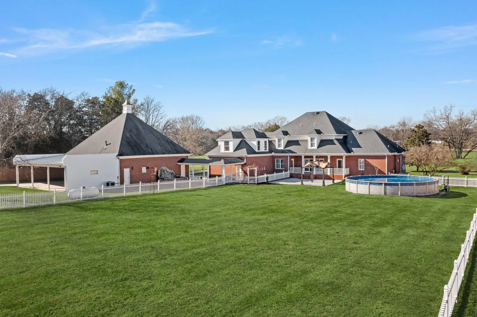 ***Unicorn Alert*** Rare Find for the Car Enthusiast or someone with Lots of Toys! This beautiful Colonial Home on 5 acres was originally built by Bill Hunter. Attached 2 Car Garage. Detached Brick 5 Car Garage With Apartment/ Kitchen and Full Bath! Follow the driveway all the way to the back of the property to find the 6,000 sq ft WORKSHOP with 16 ft side walls and 14 ft tall doors and 10,000 lb lift. Workshop is set up to build cars but could also be a great Recording Studio and contains a full bath and kitchenette. 20×20 garage in back as well can fit 2 cars. Inside the home you will find so much detail with crown moulding throughout. Gorgeous hardwood floors throughout the main floor. Brand new chandelier at entry. Primary Suite has a separate 8×12 sitting room inside. Coffered ceilings in Kitchen as well as the Den/Office. Bonus Room over garage could also be a Mother in Law suite as there is a built in kitchenette and full bathroom. Fresh paint throughout. Too many details here to list. This one is a MUST SEE!! Preferred Lender, Marshall Parsons with CMG Home Loans, to credit buyer 1% toward buyer closing cost at closing.