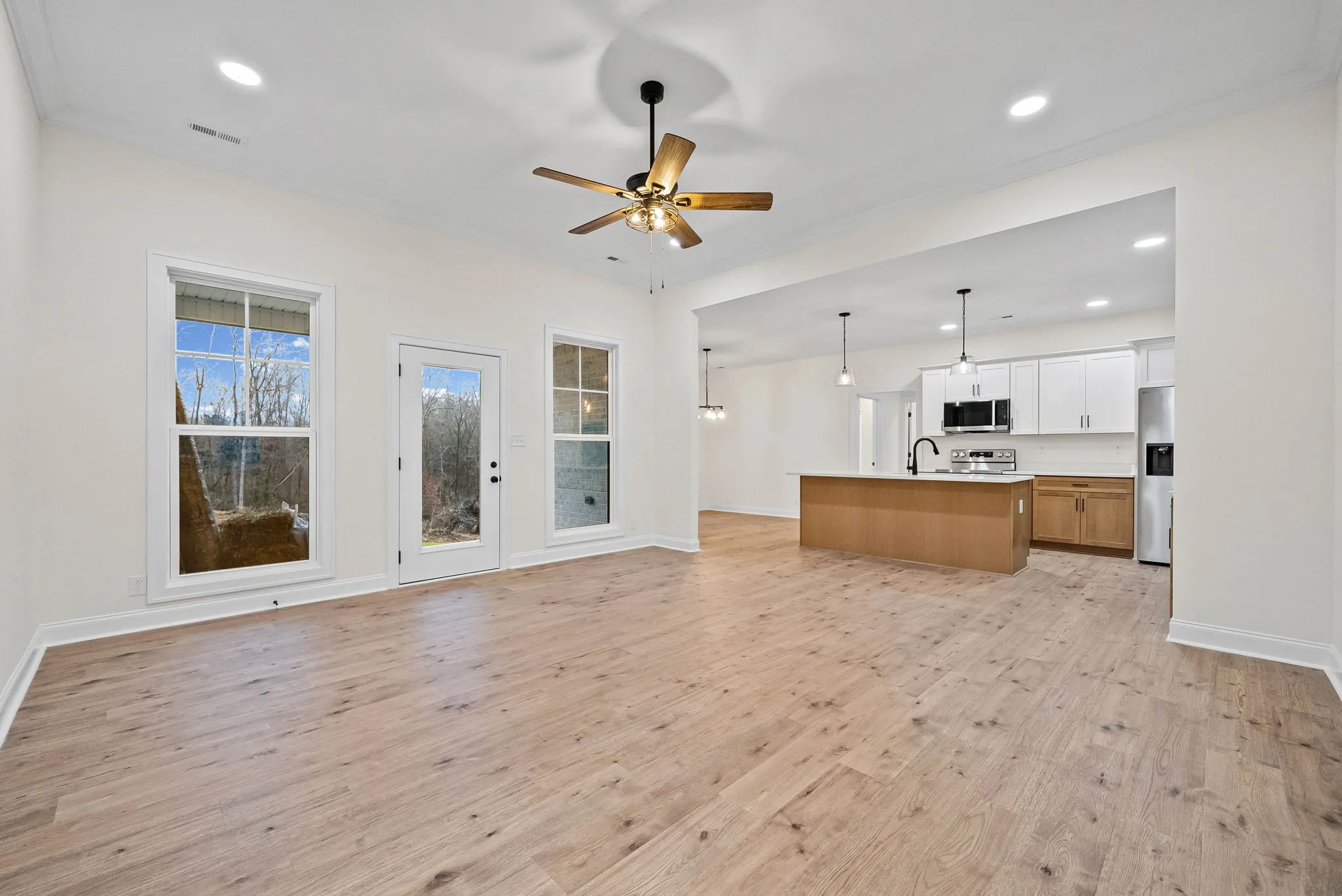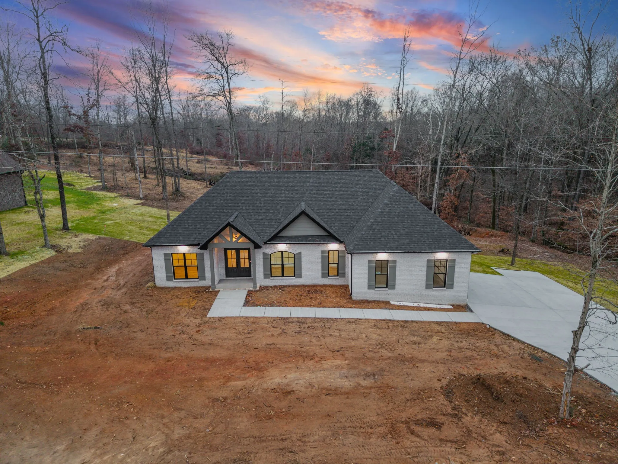 Welcome Home to this New Construction, All Brick ranch situated on 5.74 acres. Functional and open concept complete with streamlined look with no carpet, along with beautiful finishes throughout. The stunning kitchen features quartz countertops, soft close cabinets and walk in pantry. Upgraded cabinets and sink are featured in the laundry room. This home offers three bedrooms plus an additional forth flex room that makes it adaptable to your needs. The King size primary bedroom features an full bath and spacious walk in closet. Stretch your legs outside on 5.74 acres with plenty of room to spread out an explore.