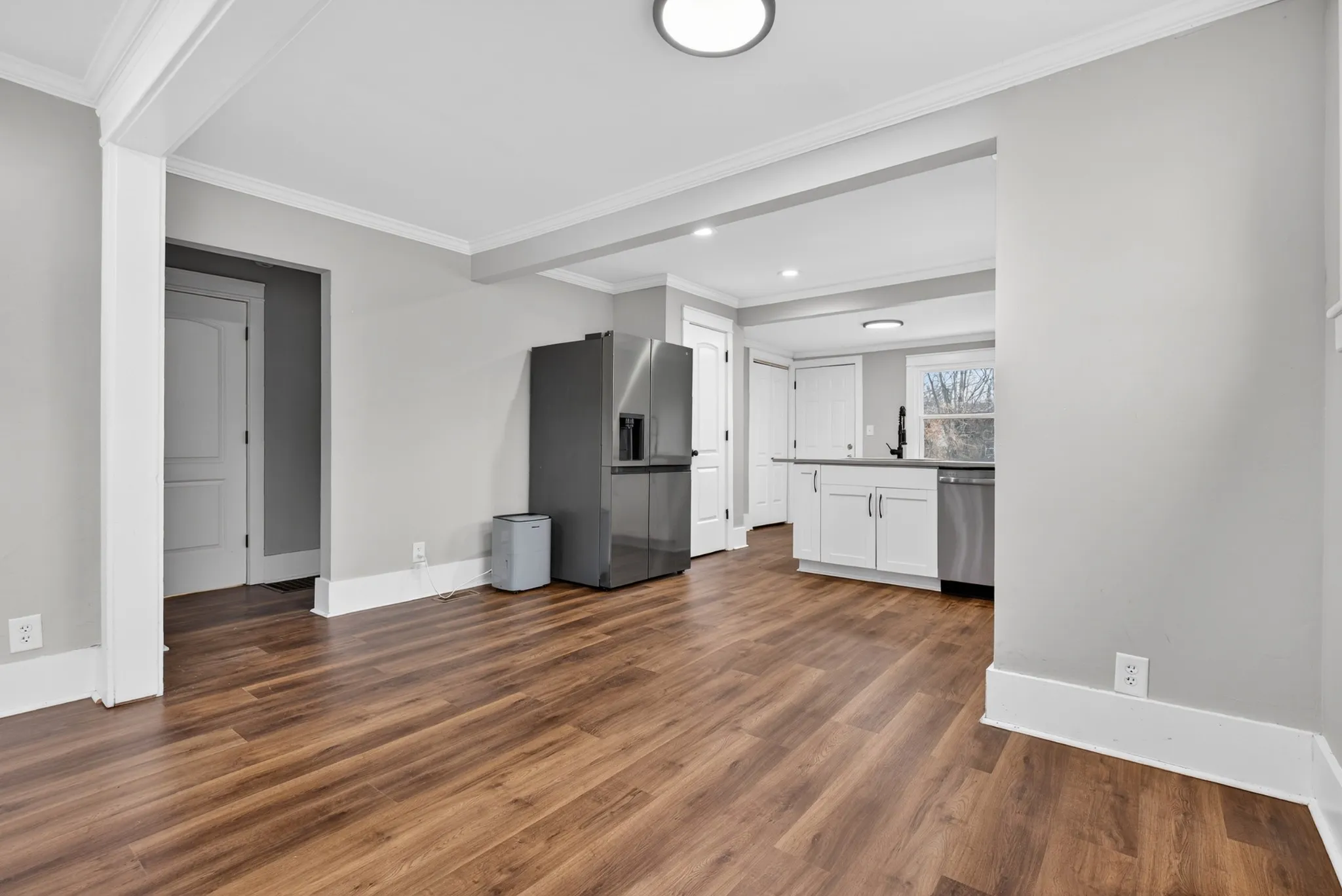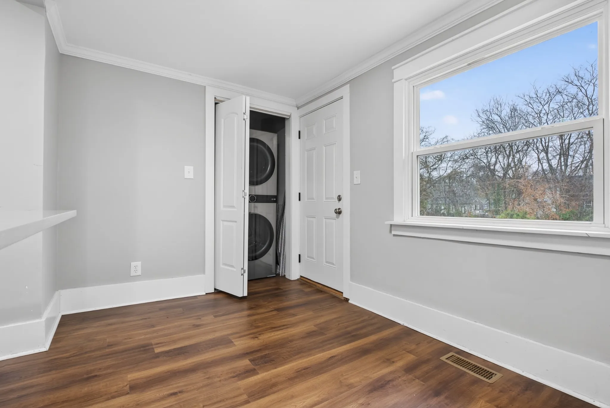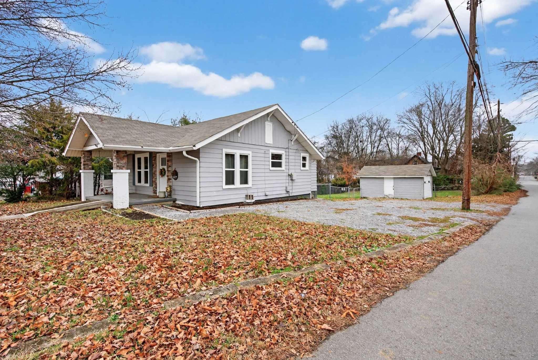 This move-in-ready home features a newer HVAC system (approx 2022), updated kitchen appliances, and a stackable washer and dryer. Enjoy a fenced backyard and a detached garage with electricity. Inside, you’ll find new laminate flooring, updated ductwork, and new sewage plumbing from the house to the street. Cozy up by the electric fireplace in the living room. Additional items to convey with the home, including the refrigerator, stackable washer and dryer, television in the living room, and the bedroom armoire.
