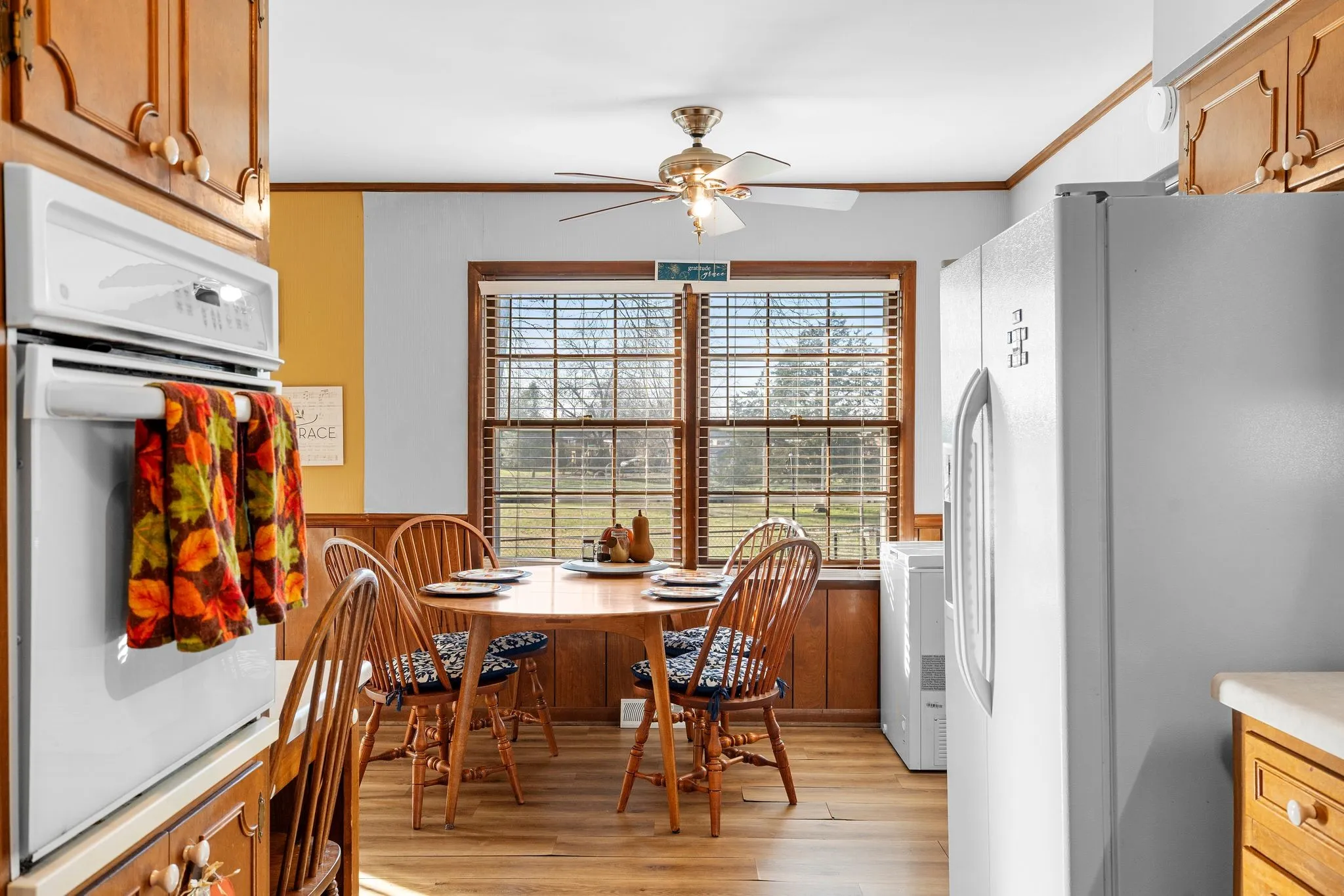Inside, the home features a bright eat-in kitchen that opens seamlessly into the dining area — flooded with natural light and perfect for hosting everything from weeknight dinners to game-day spreads. The original cabinetry gives you that warm, classic feel, while the layout offers incredible flexibility for updating at your own pace. Spacious living areas, smart bedroom flow, and a true single-level footprint make this home functional for any season of life.