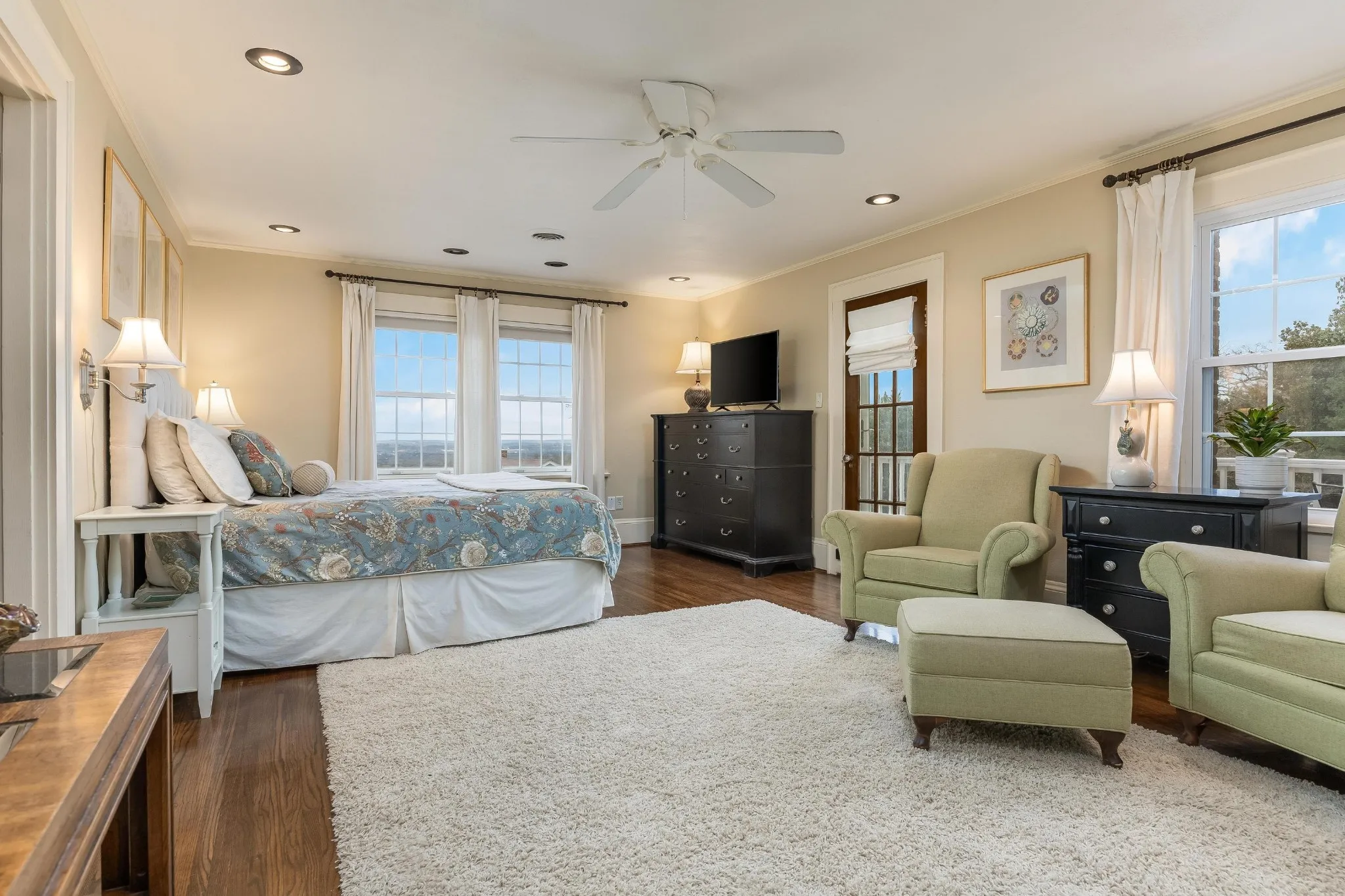 Upstairs, the primary bedroom has sweeping views and extra space for living! Enjoy his and her custom closets. The second-level deck provides another outdoor retreat for morning coffee, afternoon lounging, or evening unwinding. Four additional bedrooms mean there is space for everyone.