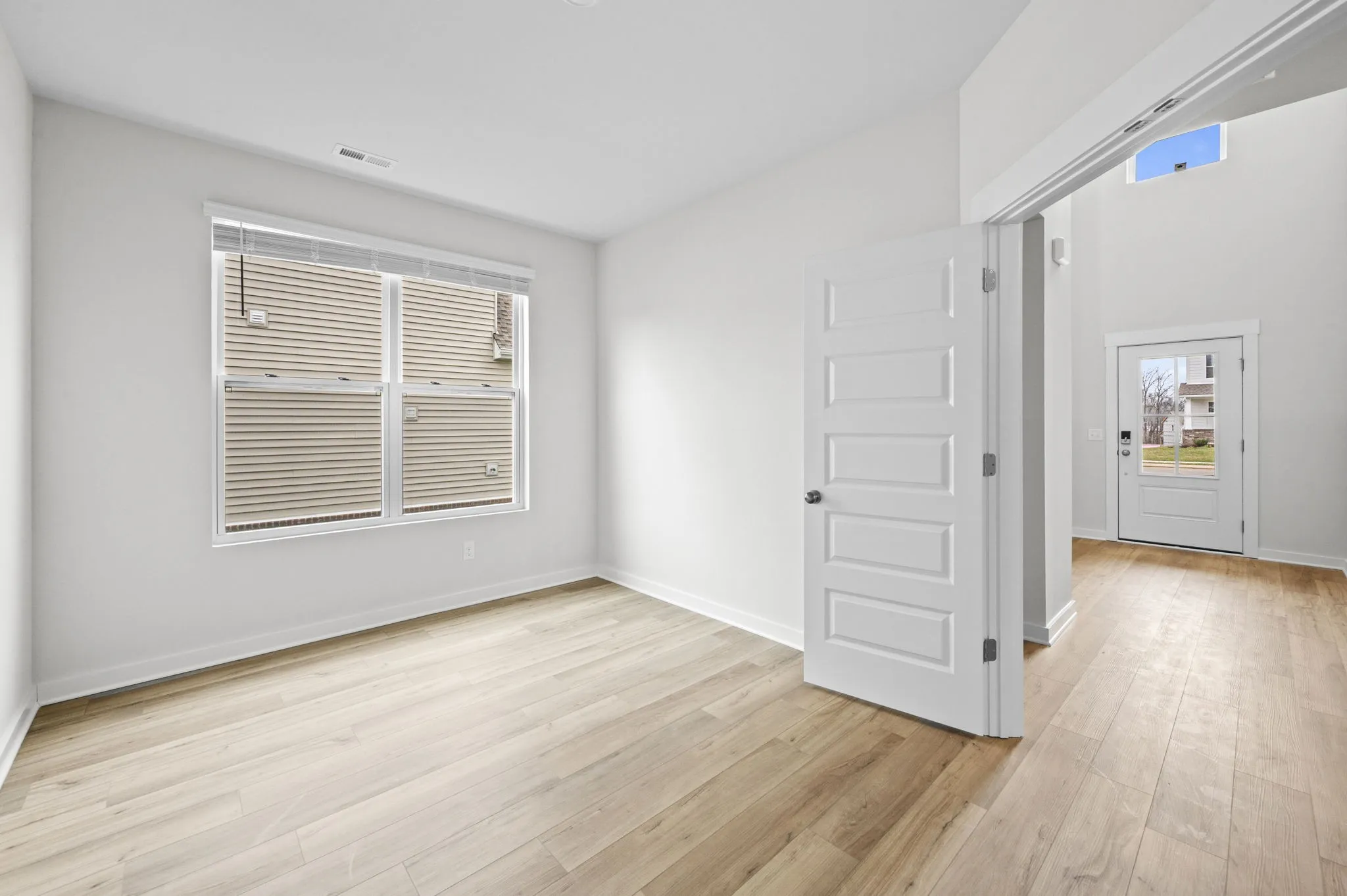 A stylish built-in storage area near the entry keeps everyday essentials organized, while elegant double doors lead to a versatile flex room, perfect as a home office, playroom, library, or study.