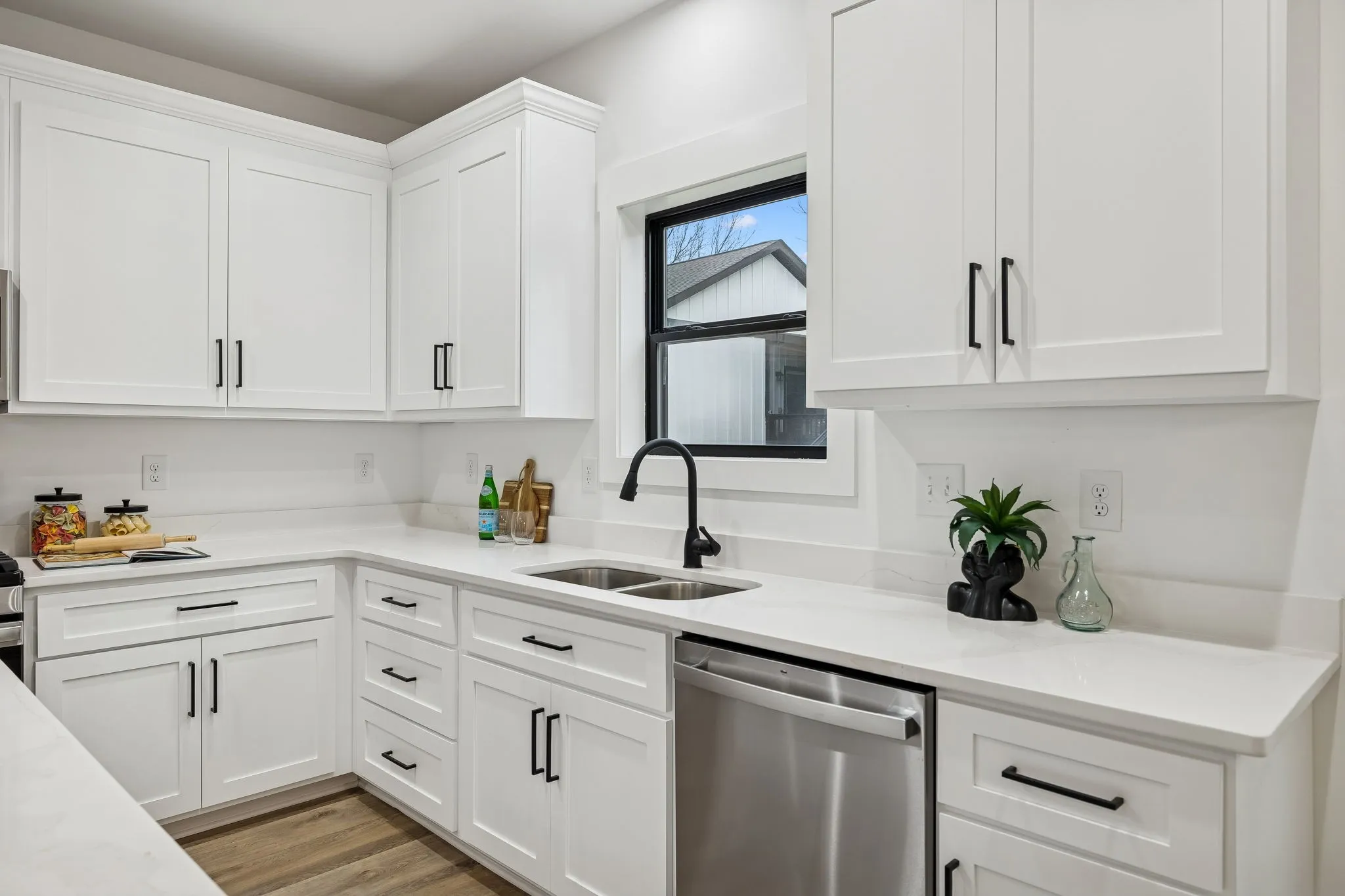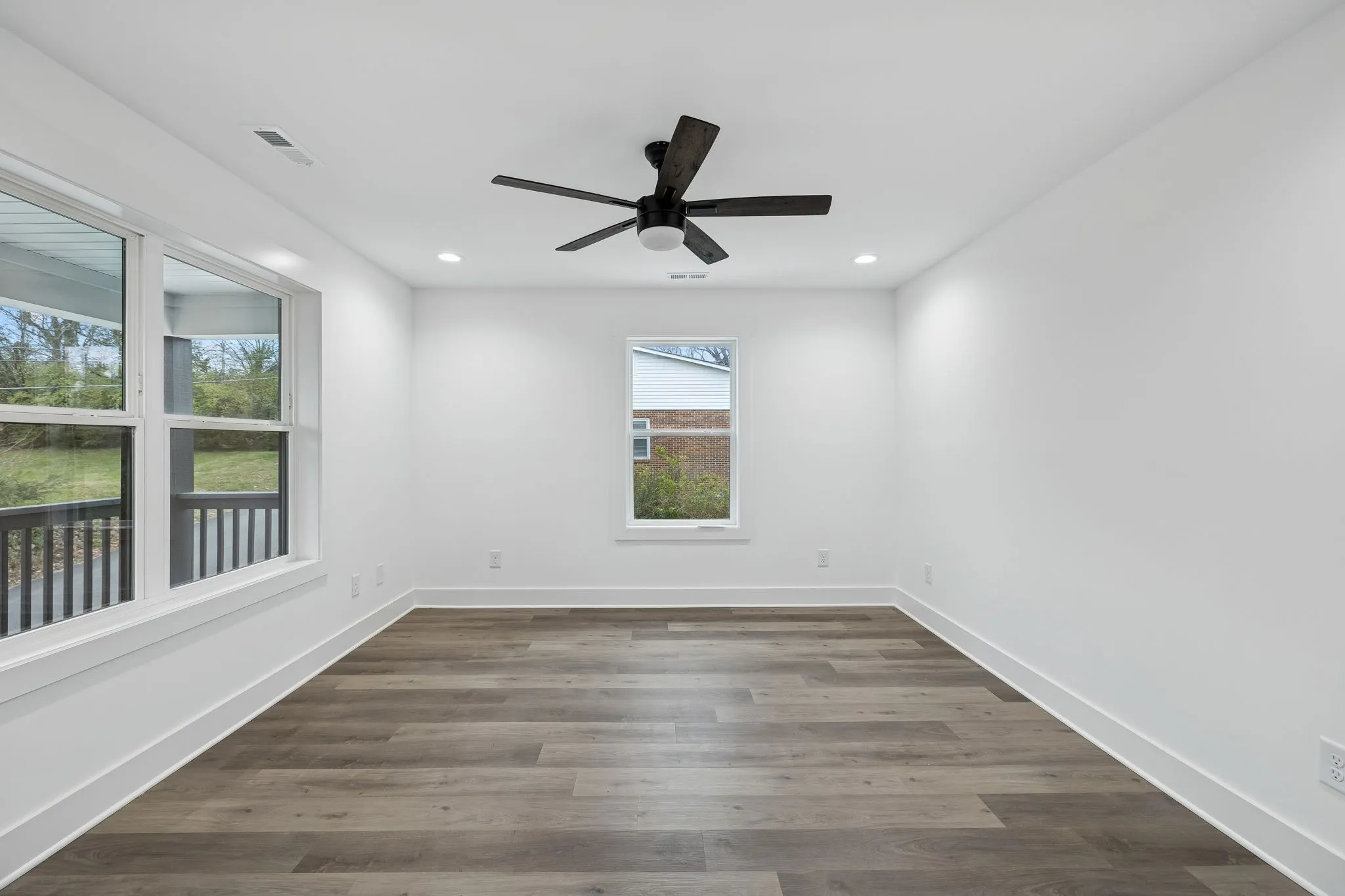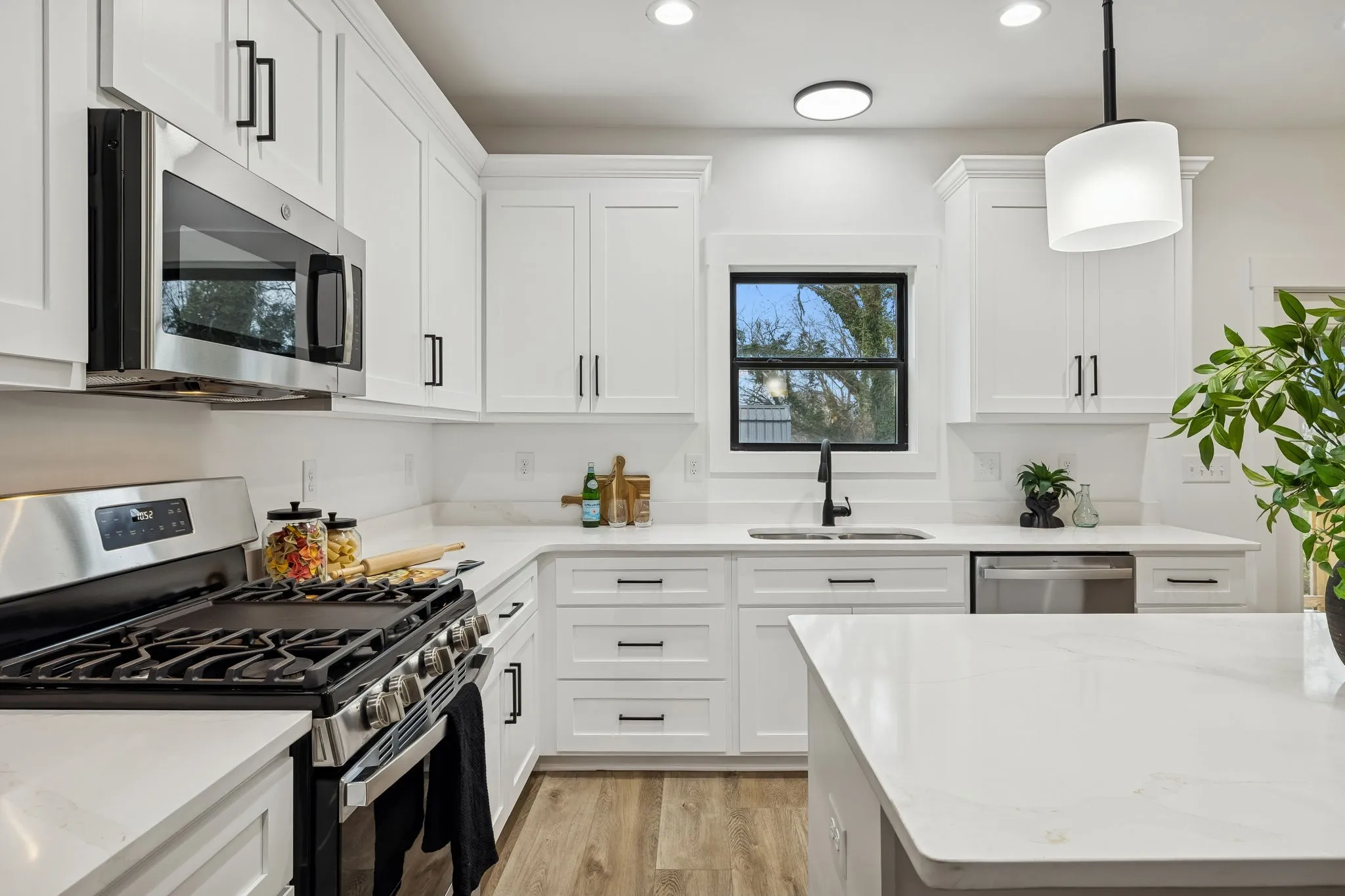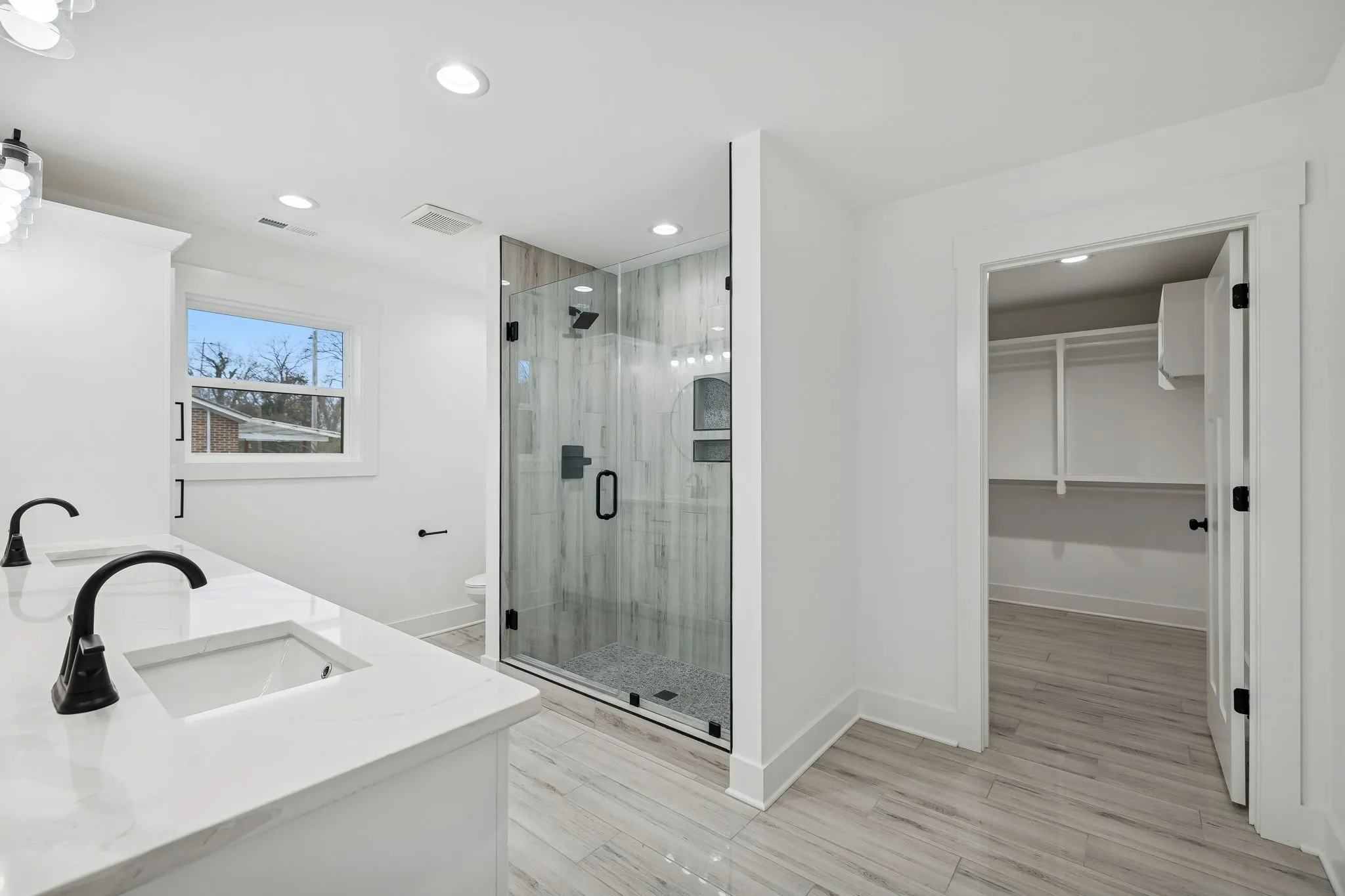 Enjoy low-maintenance LPV flooring throughout, and elevated finishes including quartz countertops in both the kitchen and bathrooms. Additional upgrades include extra insulation in both primary suites for enhanced noise reduction, a tankless water heater, and an oversized driveway for ample parking.