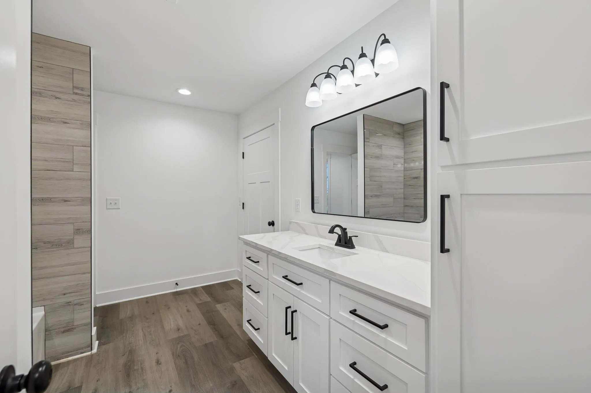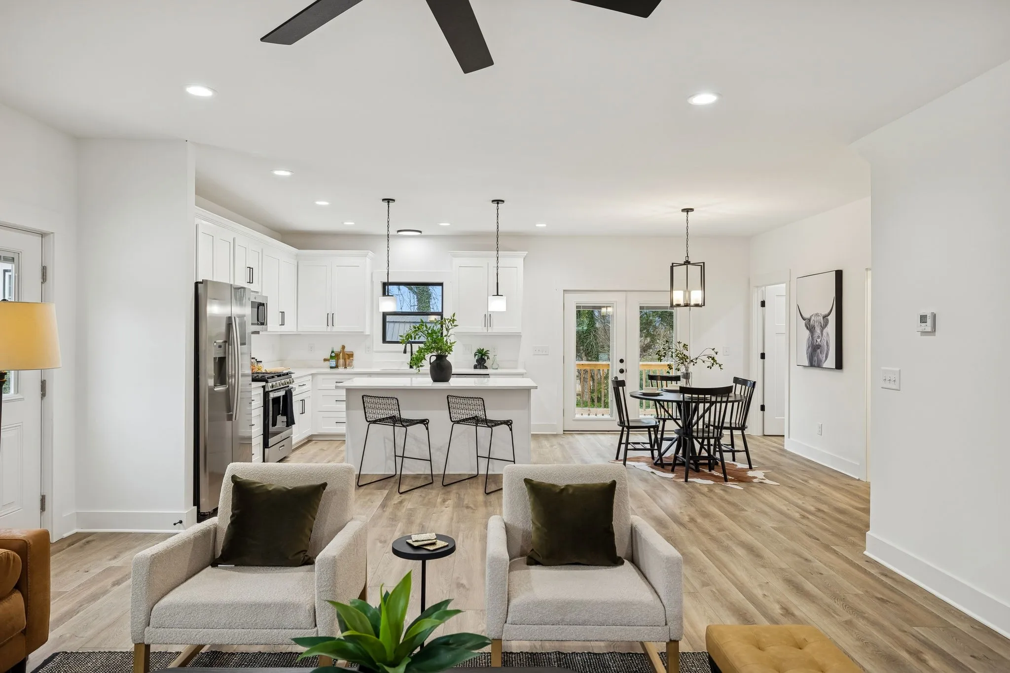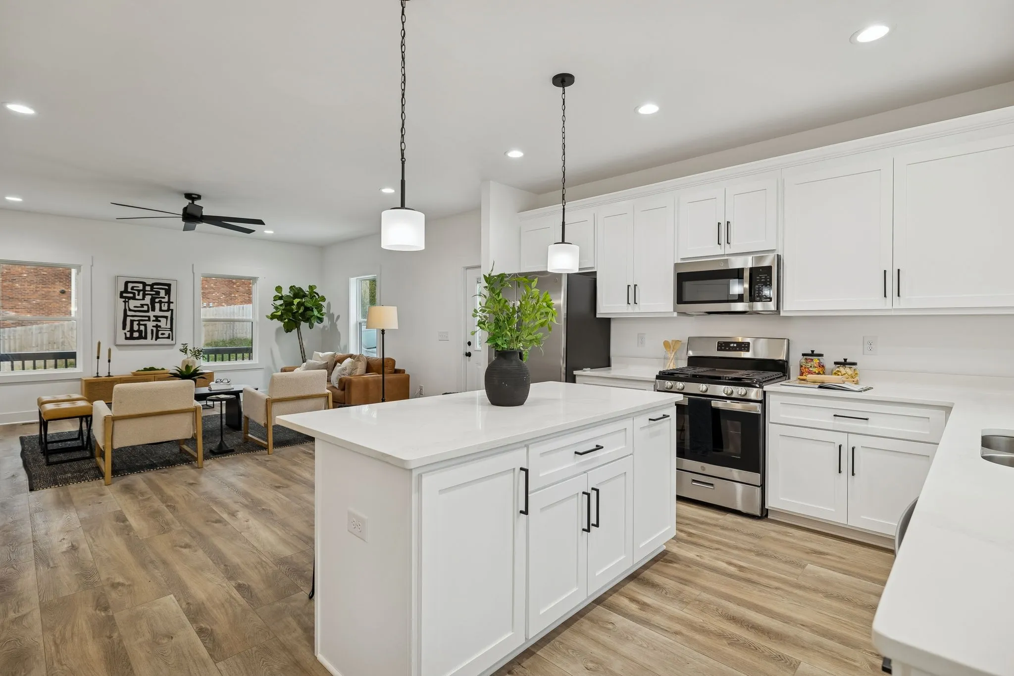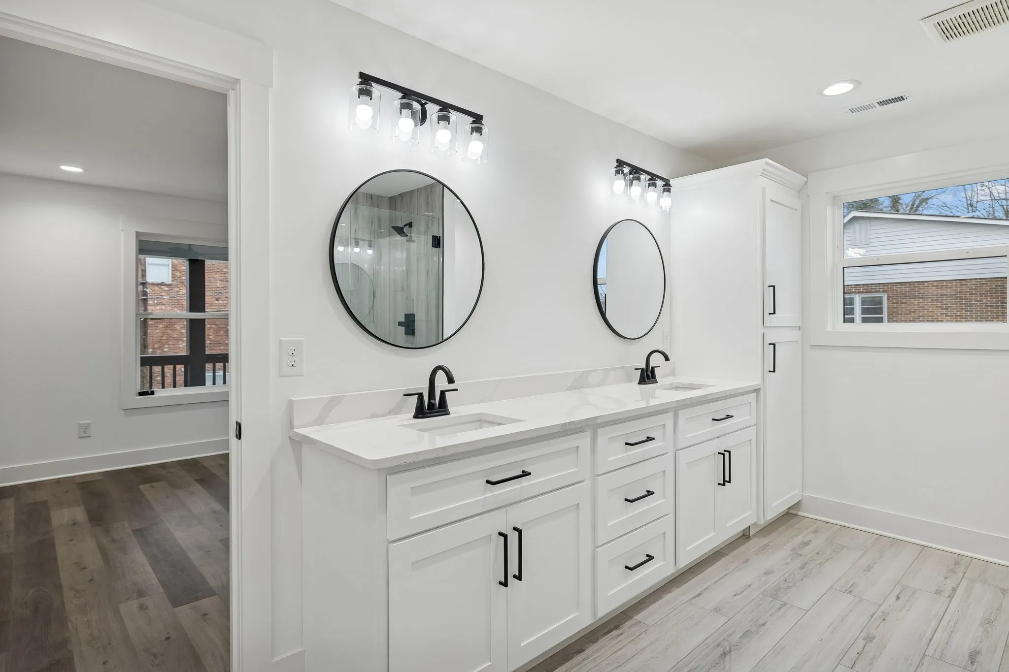 Enjoy low-maintenance LPV flooring throughout, and elevated finishes including quartz countertops in both the kitchen and bathrooms. Additional upgrades include extra insulation in both primary suites for enhanced noise reduction, a tankless water heater, and an oversized driveway for ample parking.