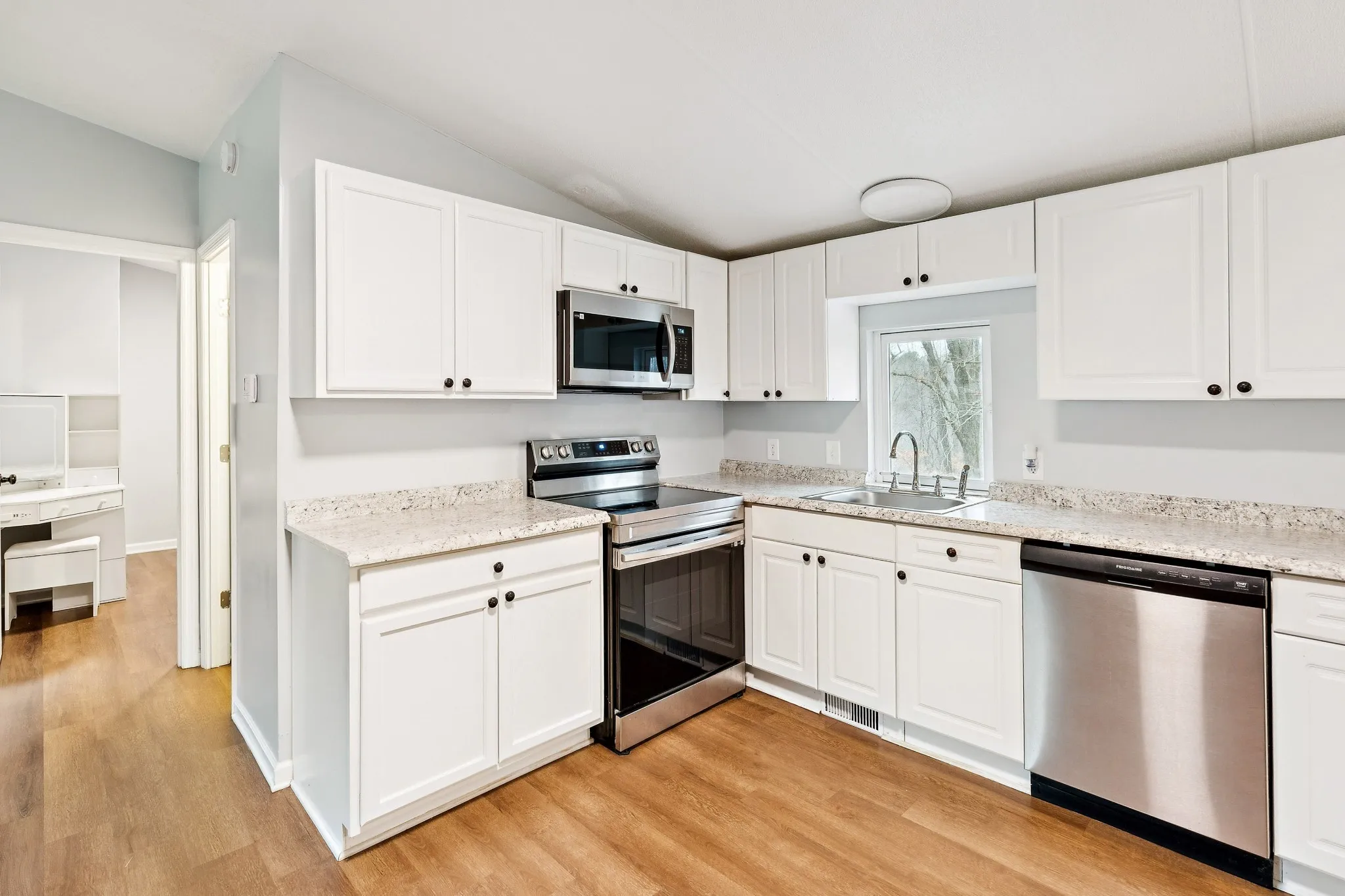 Step inside to find a bright and airy interior with brand-new paint throughout and gorgeous new flooring that flows seamlessly. The kitchen is a true highlight, featuring sleek new countertops and crisp cabinetry.