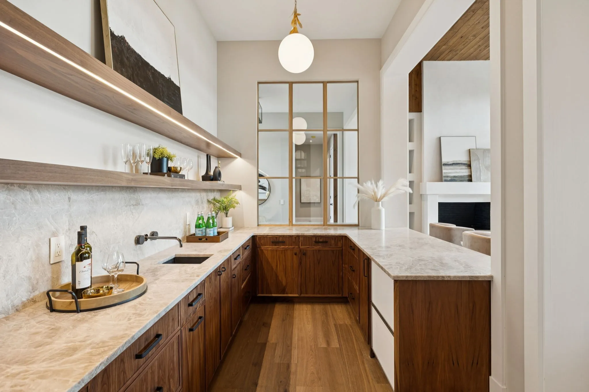 Interior Features Walk-In Closet(s), High Ceilings, Built-in Features, Pantry, Wet Bar, Elevator, Entrance Foyer, Extra Closets