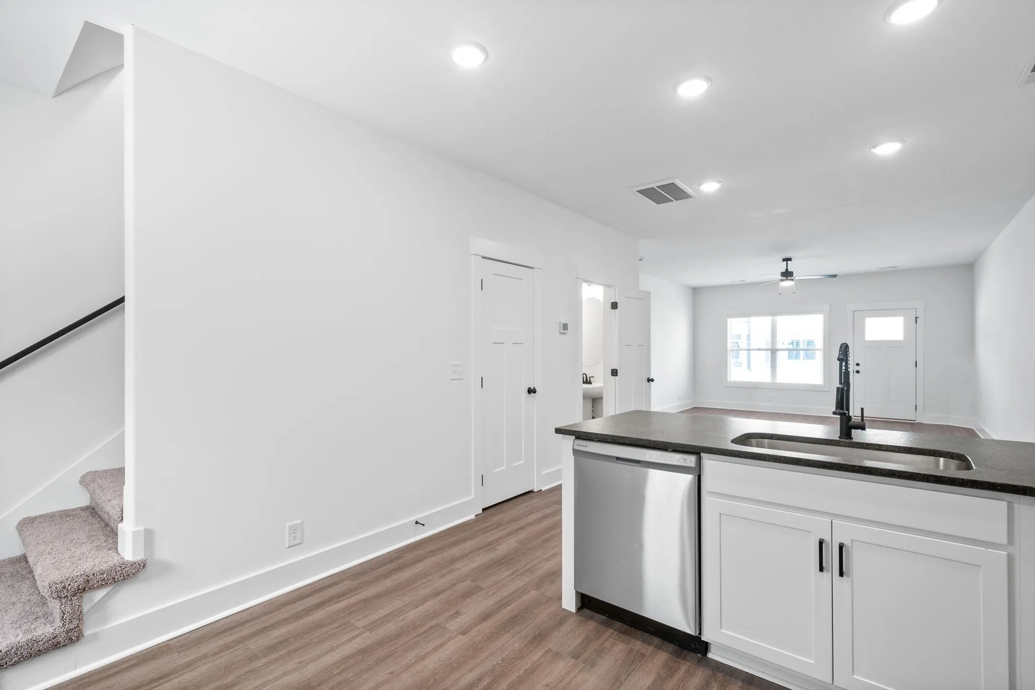 Perimeter lot, end unit, Wonderful new construction townhomes in a great location! Two-bedroom suites w/upgraded interiors, granite counters, LVT flooring, decorative trim, stainless steel appliances w/side by side fridge, quartz in bathrooms, covered front porch & patio w/privacy fencing. Video doorbell, programable thermostat. HOA includes CDE high speed fiber internet, concierge trash service, lawncare, mulching, exterior maintenance & exterior insurance. Maintenance free exteriors. The City of Clarksville has purchased the nearby Clarksville Speedway and announced plans for the future Hazelwood Recreation Complex (see rendering in Media). Concept plans include potential amenities such as gym space, meeting and program rooms, a fitness center, multi-use athletic fields, accessible playgrounds, a walking trail loop, and an alternate canoe access point.
