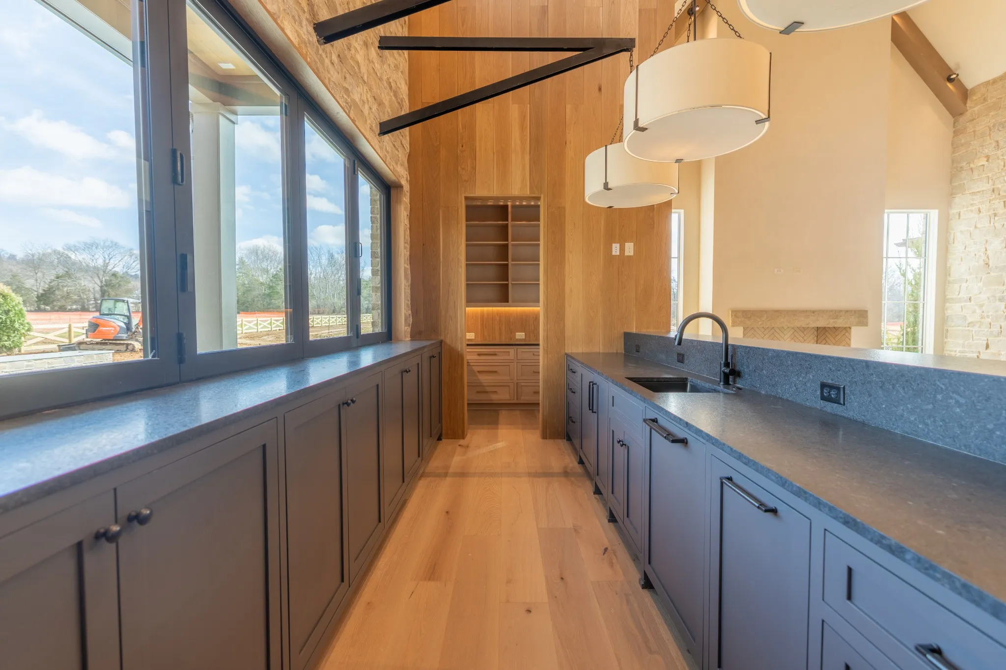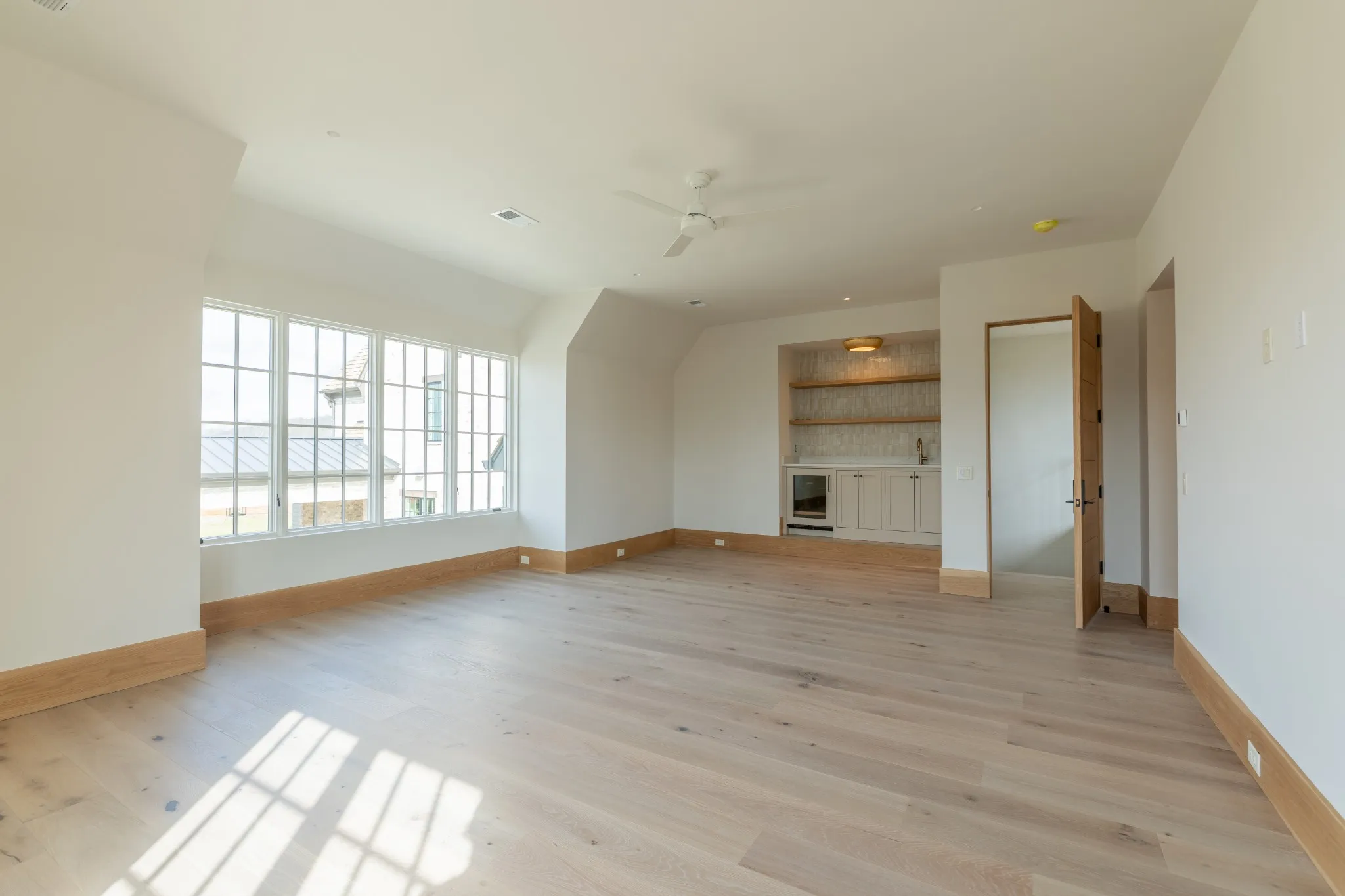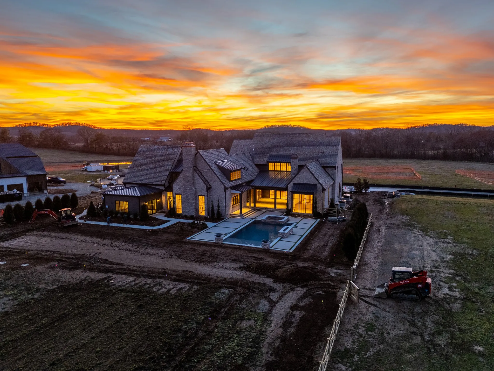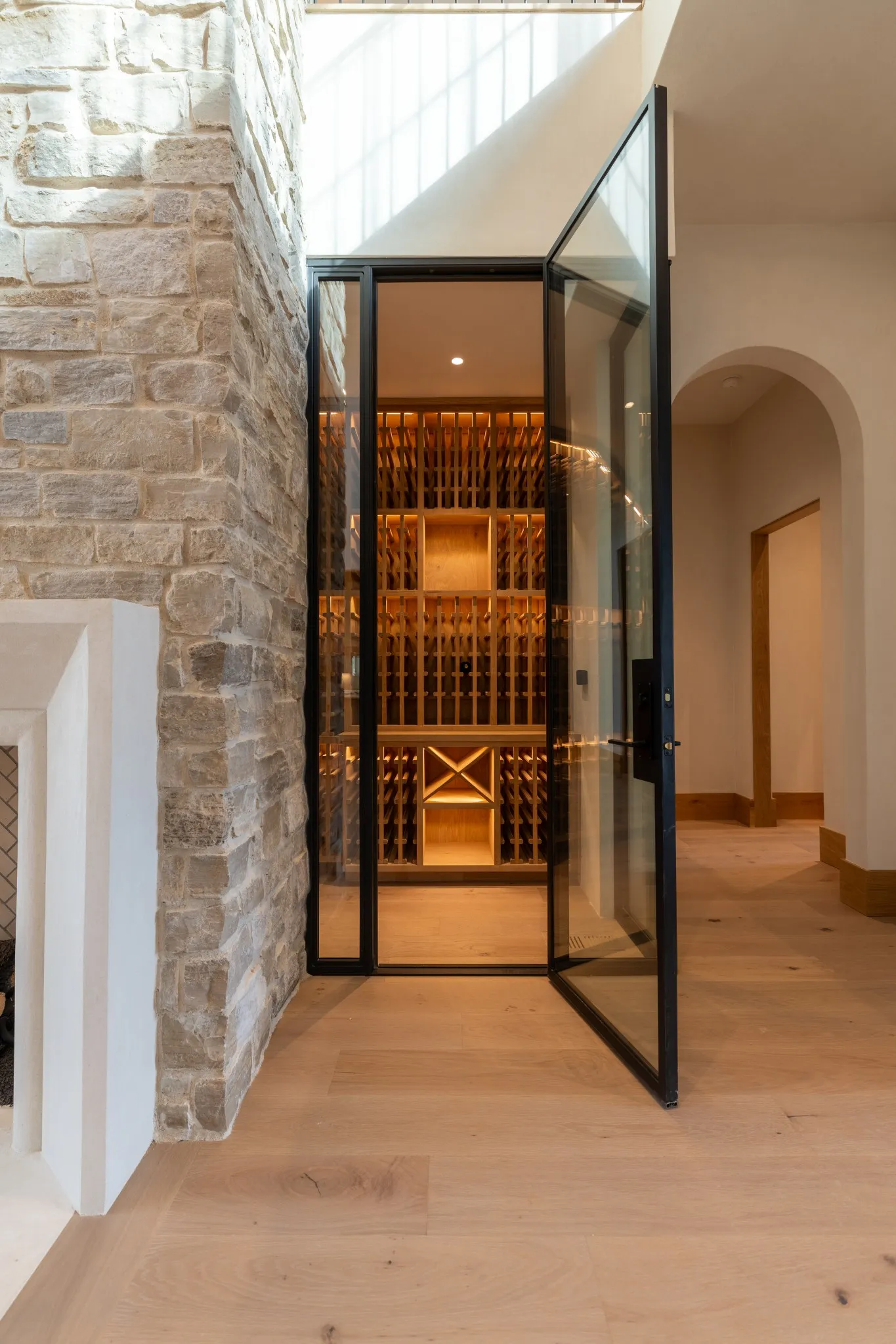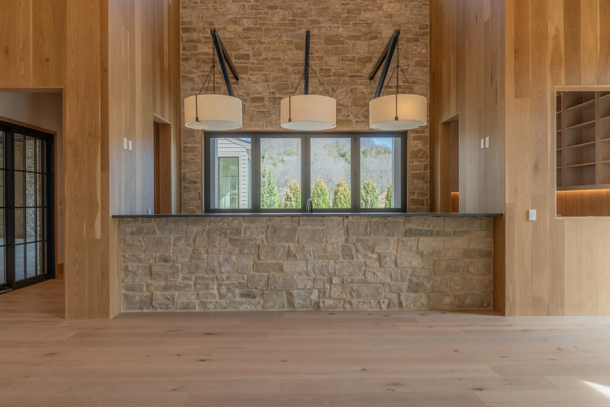 Incredible new construction by Trace Construction on a pristine 1.74-acre lot in the gated community of Sawyer’s Creek. Perfectly positioned between the charm of Leiper’s Fork and the vibrancy of historic Downtown Franklin, this home offers a lifestyle of elegance, wellness, and connection. Every detail has been carefully curated, beginning with European white oak engineered hardwood flooring, 10″ white oak baseboards, and solid white oak doors stained to match. Custom ArcusPlaster treatments bring subtle texture to the main-level walls, creating an atmosphere of quiet sophistication. The kitchen is a true showpiece, featuring a floating vent hood, quartzite countertops, and full-height backsplash. Top-of-the-line appliances include a Wolf 48″ dual fuel range with griddle, Subzero refrigerator and freezer columns, Cove integrated dishwasher, Wolf microwave drawer, built-in filtered water chiller, and Scotsman ice maker. Multiple Zephyr beverage centers are strategically placed throughout the home, including the kitchen, bonus room bar, wellness room, morning bar, and even the primary suite closet. The two-story great room makes a statement with an Isokern firebox, ArcusStone plaster mantle, and a temperature-controlled glass-enclosed wine room beneath the staircase. The main-level bonus room, with its vaulted ceiling, beams, and sliding service window, offers a full bar and a private whiskey room, while the study blends beauty and function with custom shelving, uplighting, and library lights. Designed for total well-being, the main-level wellness room includes rubber flooring, an infrared sauna, cold plunge, beverage center, and water station. The vaulted primary suite is a retreat with white oak beams, lighting control, and spa-inspired bath featuring reeded cabinetry, soaking tub, steam shower, and Arcus plaster accents. The closet rivals a boutique with an island housing a washer and dryer, and makeup vanity.