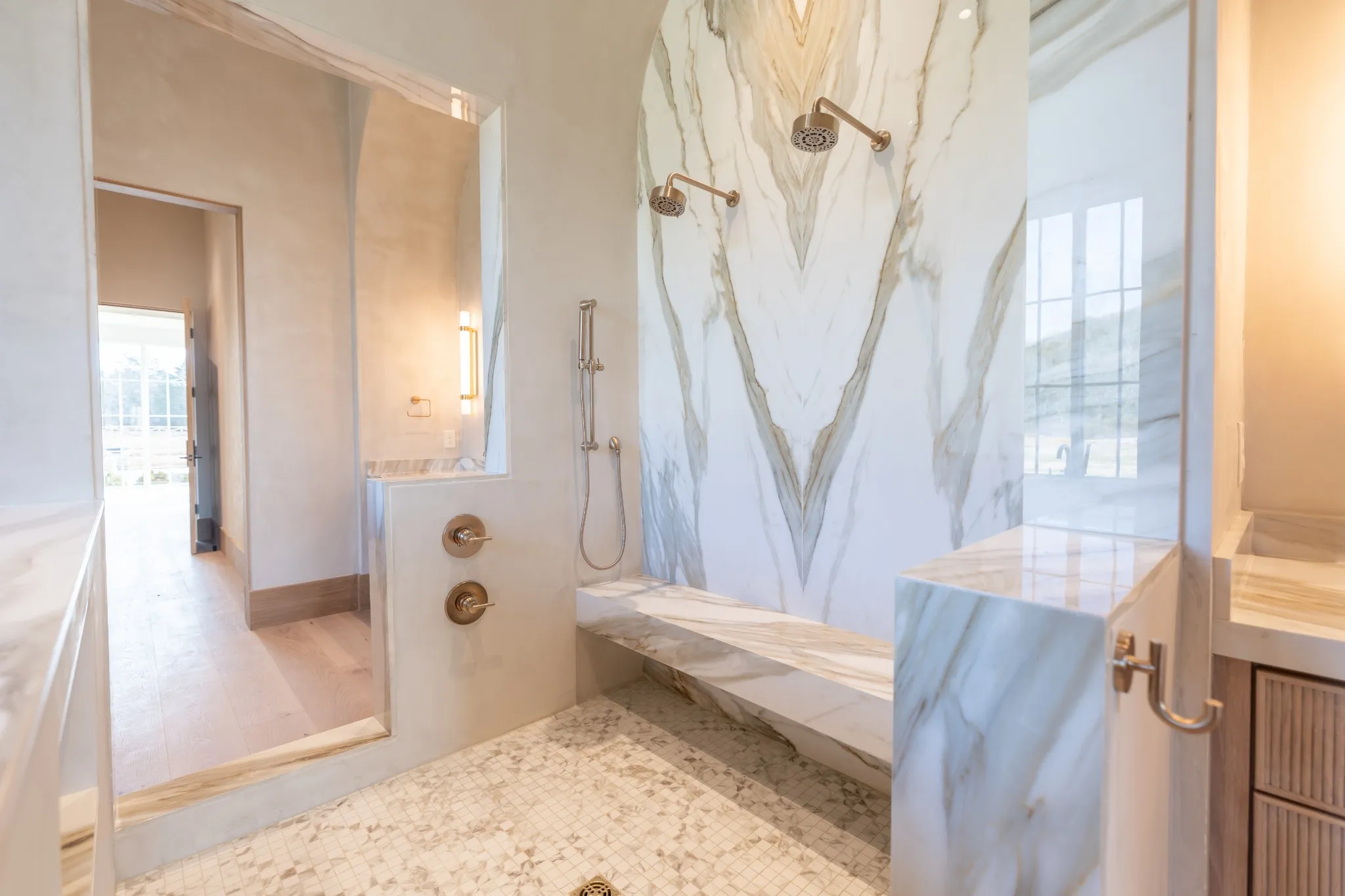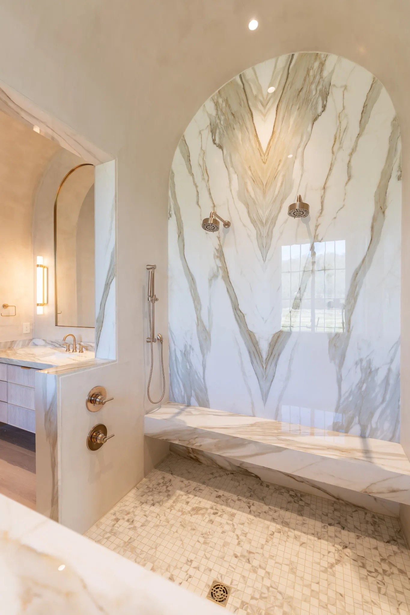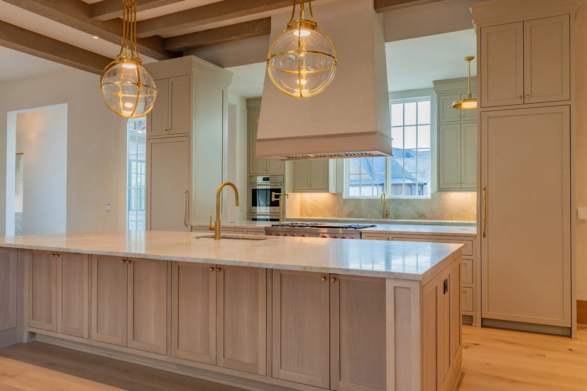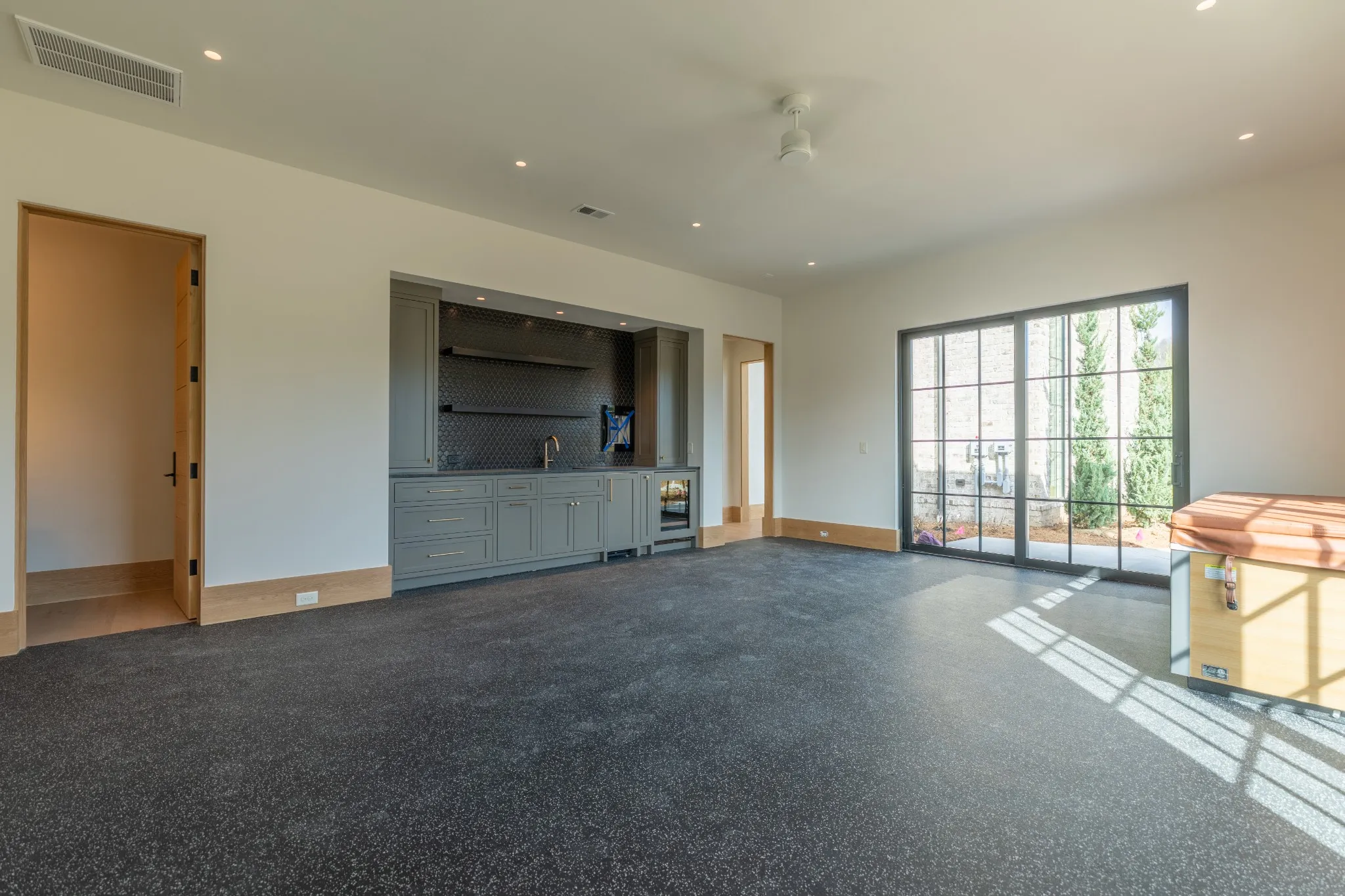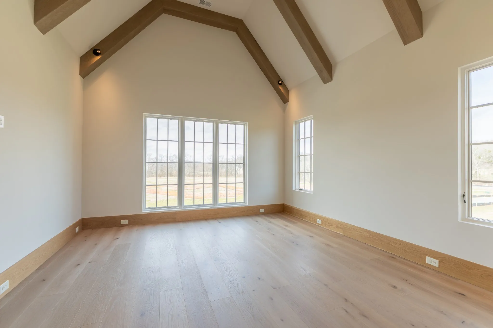Incredible new construction by Trace Construction on a pristine 1.74-acre lot in the gated community of Sawyer’s Creek. Perfectly positioned between the charm of Leiper’s Fork and the vibrancy of historic Downtown Franklin, this home offers a lifestyle of elegance, wellness, and connection. Every detail has been carefully curated, beginning with European white oak engineered hardwood flooring, 10″ white oak baseboards, and solid white oak doors stained to match. Custom ArcusPlaster treatments bring subtle texture to the main-level walls, creating an atmosphere of quiet sophistication. The kitchen is a true showpiece, featuring a floating vent hood, quartzite countertops, and full-height backsplash. Top-of-the-line appliances include a Wolf 48″ dual fuel range with griddle, Subzero refrigerator and freezer columns, Cove integrated dishwasher, Wolf microwave drawer, built-in filtered water chiller, and Scotsman ice maker. Multiple Zephyr beverage centers are strategically placed throughout the home, including the kitchen, bonus room bar, wellness room, morning bar, and even the primary suite closet. The two-story great room makes a statement with an Isokern firebox, ArcusStone plaster mantle, and a temperature-controlled glass-enclosed wine room beneath the staircase. The main-level bonus room, with its vaulted ceiling, beams, and sliding service window, offers a full bar and a private whiskey room, while the study blends beauty and function with custom shelving, uplighting, and library lights. Designed for total well-being, the main-level wellness room includes rubber flooring, an infrared sauna, cold plunge, beverage center, and water station. The vaulted primary suite is a retreat with white oak beams, lighting control, and spa-inspired bath featuring reeded cabinetry, soaking tub, steam shower, and Arcus plaster accents. The closet rivals a boutique with an island housing a washer and dryer, and makeup vanity.