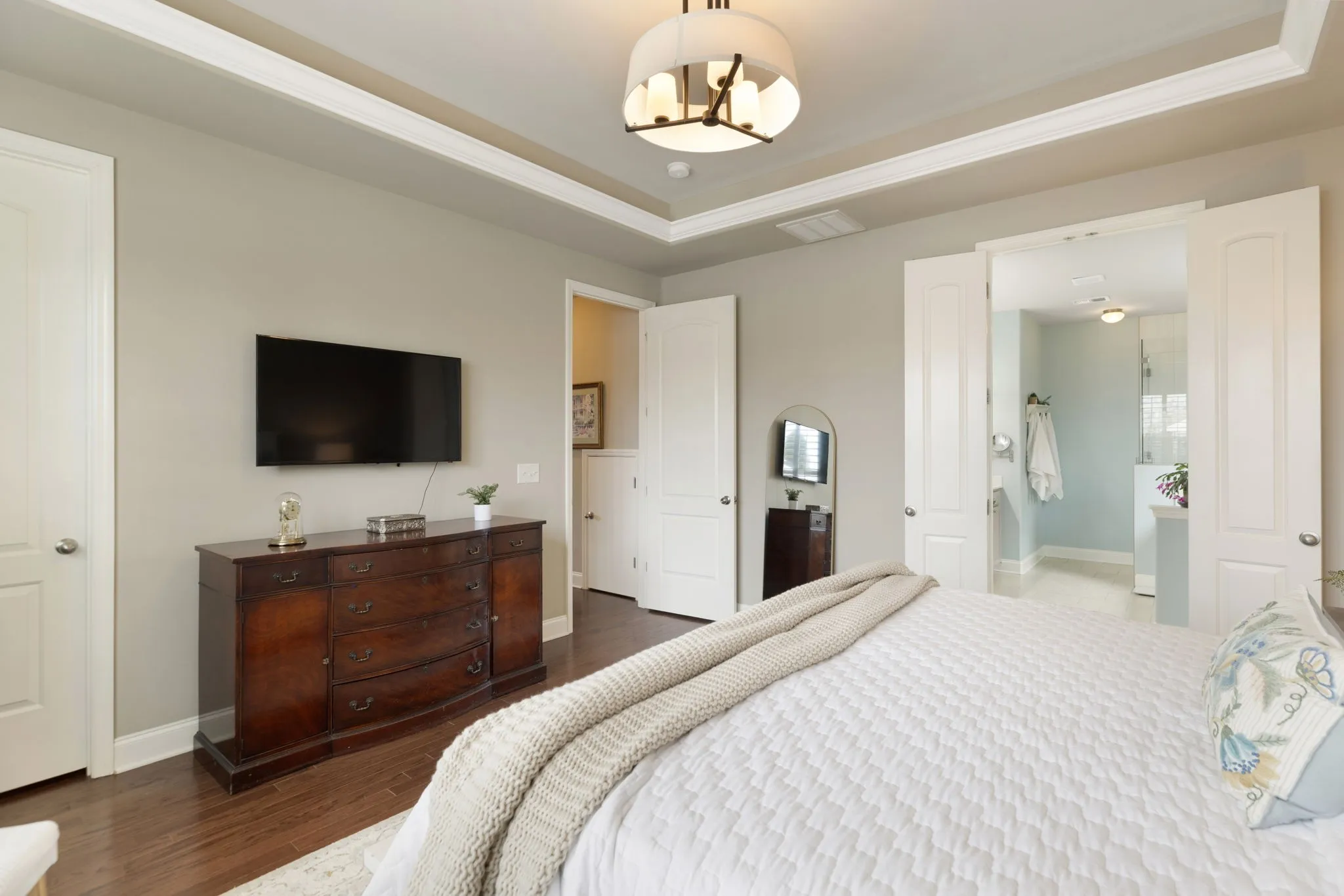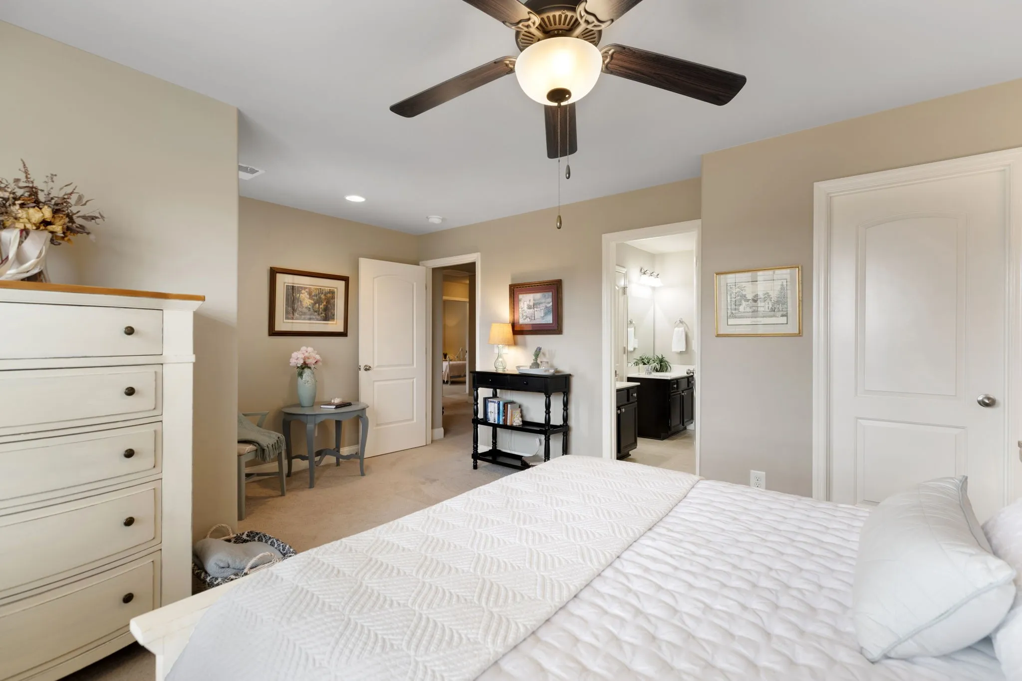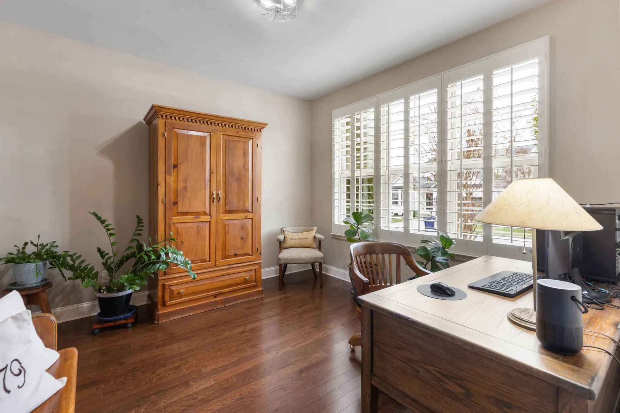 Step inside to gleaming hardwood floors and a flexible main-floor room perfect for a home office, dining room, or music space. The bright, stylish kitchen features tall white cabinetry, a large center island, stainless steel appliances, and a convenient HotSpot instant-hot water dispenser. The breakfast area flows seamlessly into the family room, where a cozy gas fireplace creates a warm gathering space.The main-floor primary suite is a true retreat with a spacious walk-in closet and a stunning, updated bathroom. Upstairs, you’ll find three generously sized bedrooms, a large bonus room, and an additional finished, temperature-controlled room—ideal for a home gym, office, playroom, or even future bathroom conversion. Extra attic storage adds even more convenience.\n