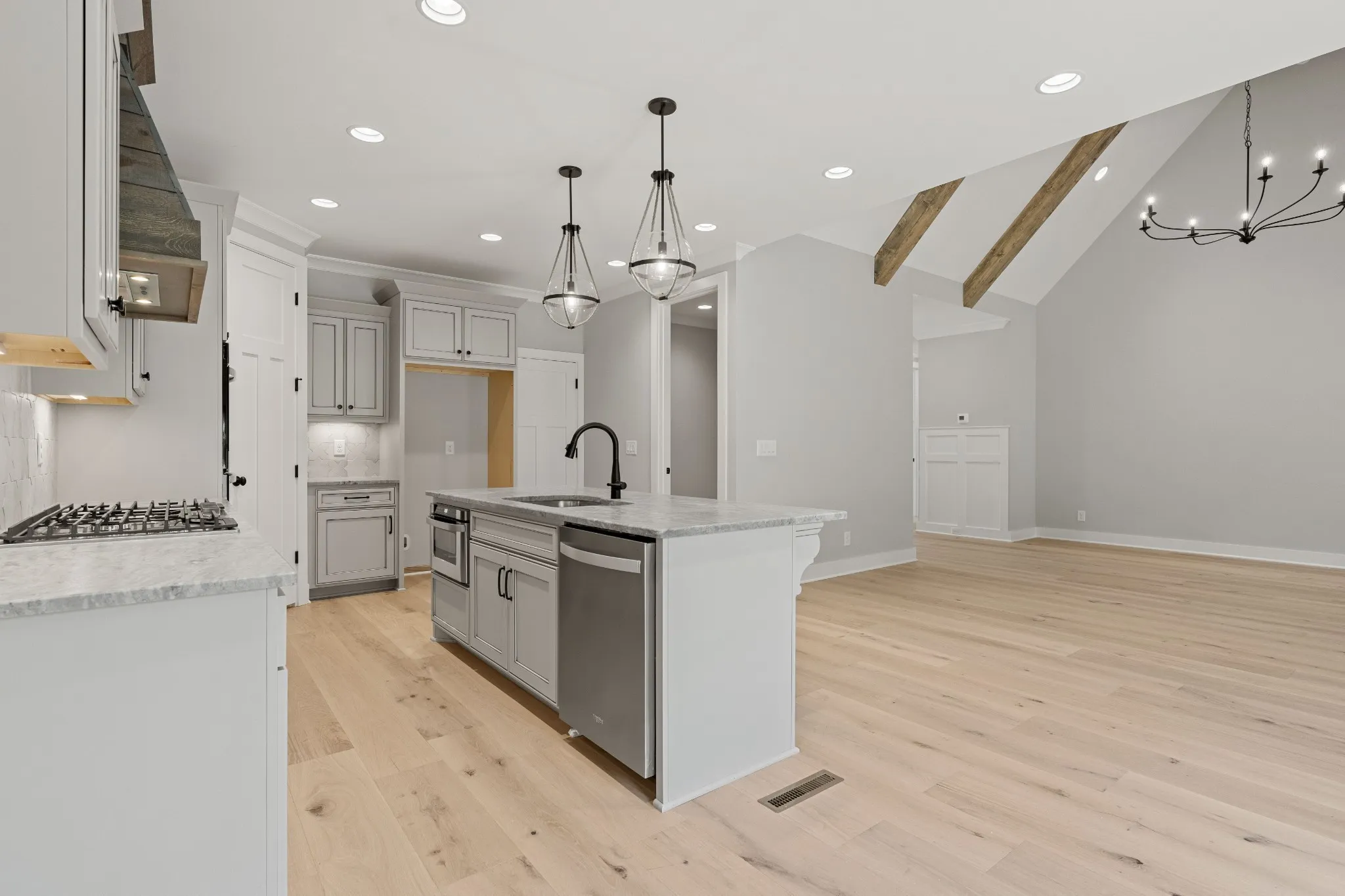 Exceptional Quality Construction by Eastland Construction Inc. $10,000 toward closing cost and/or rate buy down with Preferred Lender. The Birchwood Plan, , Great 4BR/3Bath plan, Living rm w/ Stone Gas Fireplace, Vaulted Ceilings w/ Wood Beams. Hardwood Floors In Living Rm, Kitchen, Eat-In, & Primary BR, Island Kitchen with Custom Maple Cabinets, Tile Backsplash, Hardwood Floors, Double Ovens, Built-In Microwave, Pantry, and Dishwasher, Primary BR on Main Level with Large Bath w/ Separate Shower and Large Tub, Double Vanities, & Custom Wood Closets. Tile in Baths and Full Utility Rm w/ Built-In Cabinets, 30×20 Recreation Rm w/ pre-wired Surround Sound, 4th BR and 3rd Bath Upstairs off Rec Room, Covered Back porch and Open Patio Area, Convenient Location close to Hwy 109 & I-40.