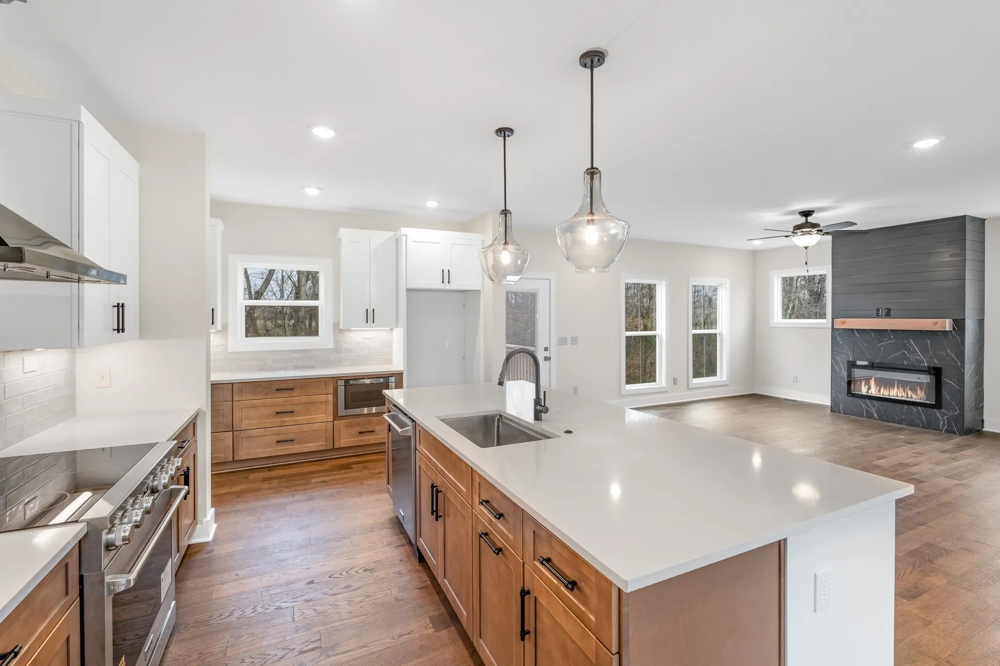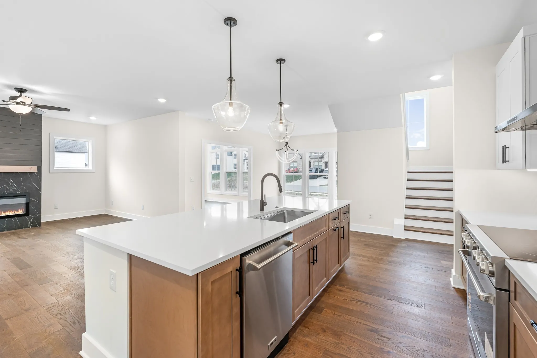 Welcome to 242 Bellshire Drive, a beautifully crafted home that blends luxury, functionality, and privacy. From the moment you step through the front mahogany door, you’re greeted by sun-filled living spaces, high-end finishes, and an open layout designed for everyday comfort. The gourmet kitchen features premium appliances, a spacious walk-in pantry, and a dedicated butler’s pantry—perfect for entertaining with ease. An inviting sunroom floods the home with natural light, while the electric fireplace in the main living area adds warmth and modern charm. Oak stairs and tile showers further elevate the quality throughout. Outside, the property offers privacy and a serene setting backed by a peaceful creek, creating a true sense of retreat. All bedrooms include walk-in closets for exceptional storage, and the unfinished bonus room provides an incredible opportunity—easily convertible into a fourth bedroom to fit your needs. The 8-ft garage door accommodates trucks and larger vehicles with ease, adding practical convenience to the home’s high-end appeal. With its thoughtful design and premium upgrades, this home delivers luxury living in one of Clarksville’s most desirable locations.1% lender credit with use of preferred lender.