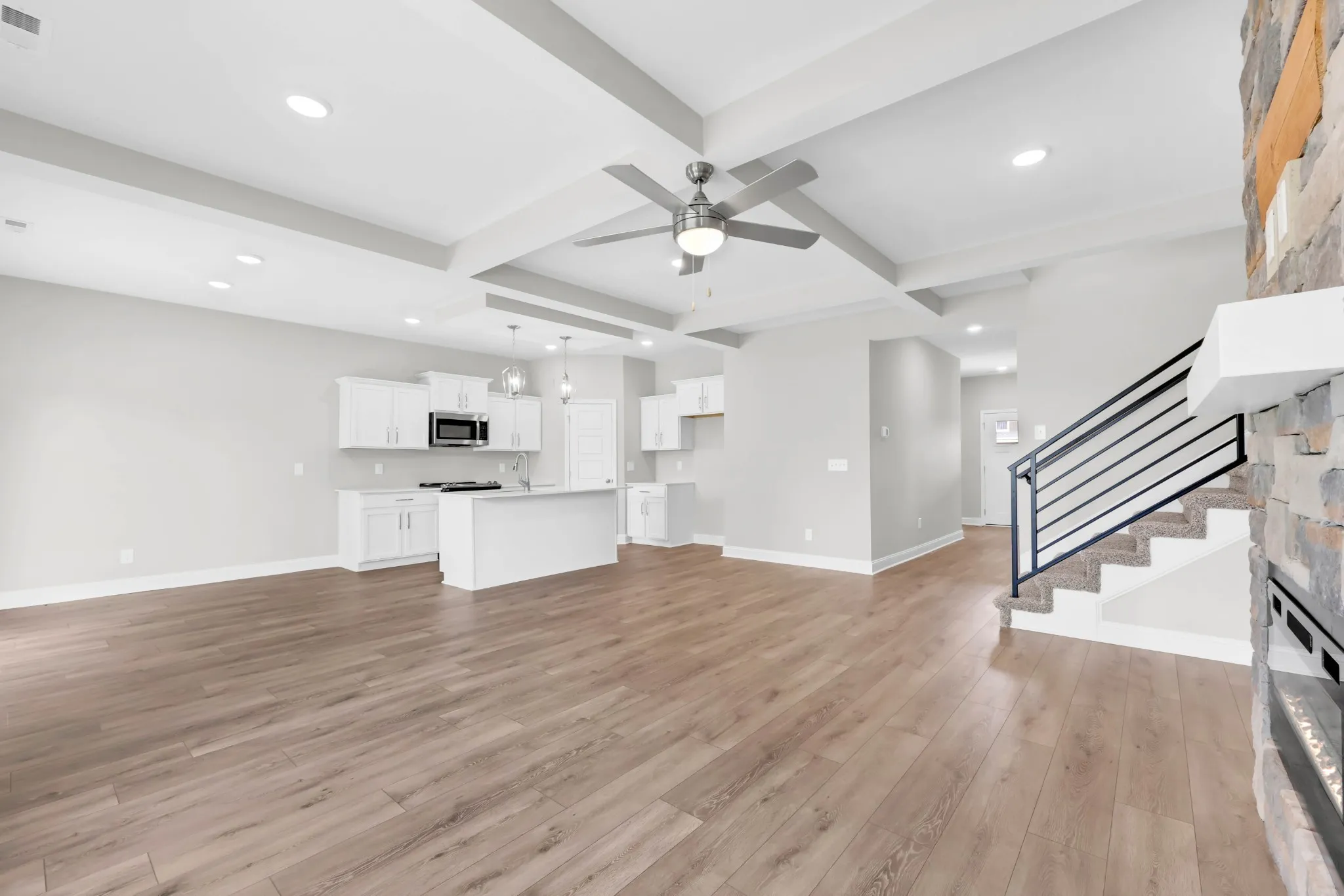 Offering $15,000 towards buyer incentives! Includes a brand new refrigerator and blinds throughout! NO BACKYARD NEIGHBORS! This stunning ranch-style home with a spacious upstairs bonus room strikes the perfect balance between luxury and everyday comfort. With 9-foot ceilings throughout, the open layout features custom-cut granite countertops in the kitchen and island—ideal for cooking, gathering, and entertaining. A floor-to-ceiling stone fireplace in the great room brings warmth and elegance to the space. The primary suite offers a true retreat with double vanities, a designer showcase double tile shower, and a generous walk-in closet. Upstairs, the bonus room includes its own full bath, perfect for a guest suite, home office, or media space. Additional highlights include a state-of-the-art media convenience panel and an insulated, smart garage door for modern efficiency.