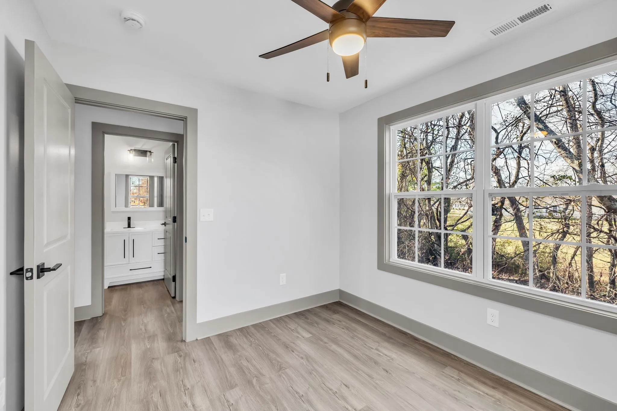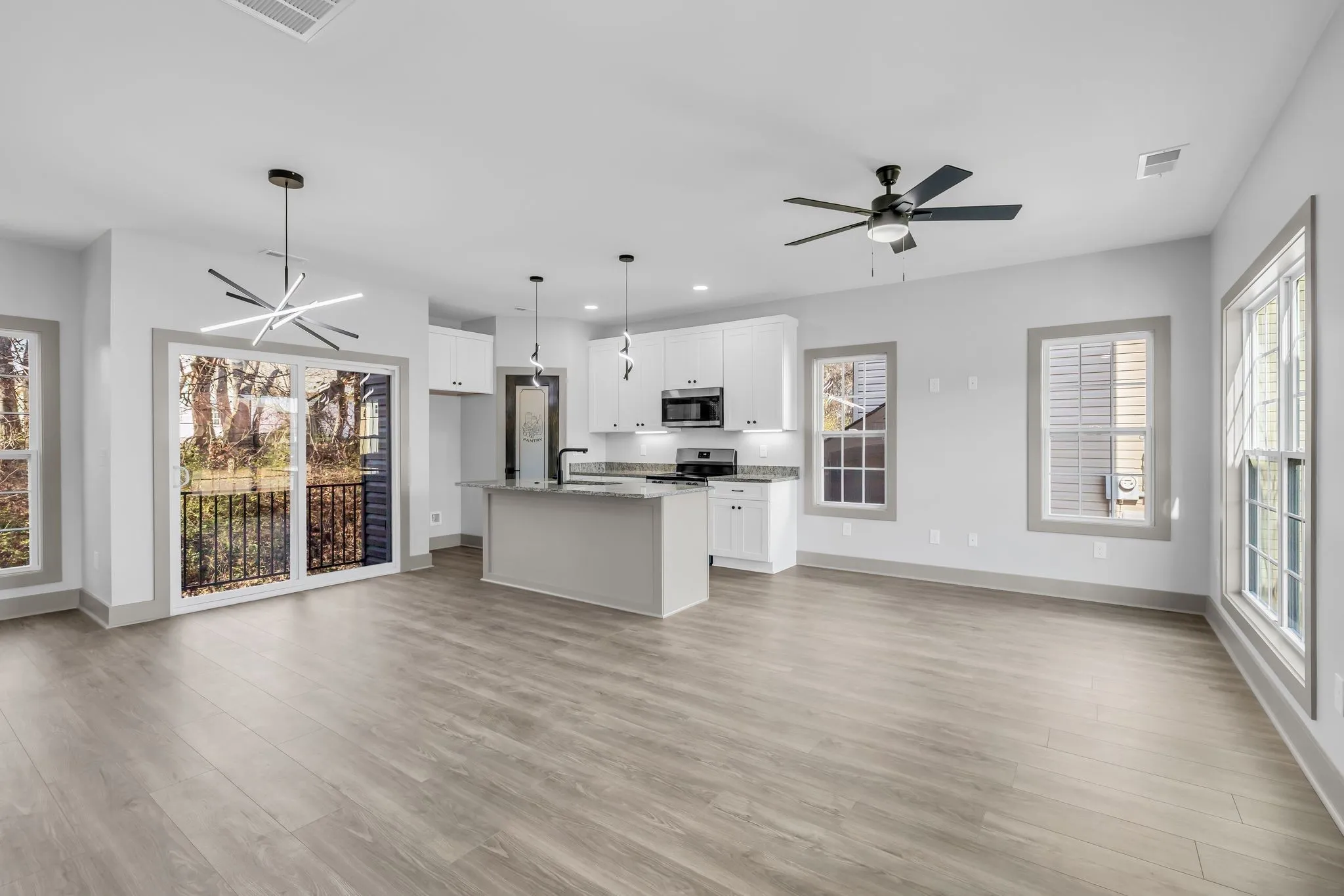 This beautifully designed home offers a bright, modern living experience with thoughtful details throughout. The main living area is filled with natural light, highlighting the home’s stylish selections and open, airy feel. The kitchen features 42-inch upper cabinets, soft-close drawers, and a clean, contemporary aesthetic that blends both function and sophistication. Just off the kitchen and dining room, a charming Juliette balcony adds a unique architectural touch and elevates the home’s character. Upstairs, you’ll find the laundry room conveniently located near the bedrooms, making everyday routines effortless. Retreat to the serene primary suite, where a luxurious free-standing tub creates a spa-like atmosphere perfect for unwinding. Due to the narrow backyard, it’s best suited for buyers who want privacy without the upkeep of a large yard. This property delivers comfort, convenience, and modern appeal at every turn.1% lender credit with use of preferred lender.