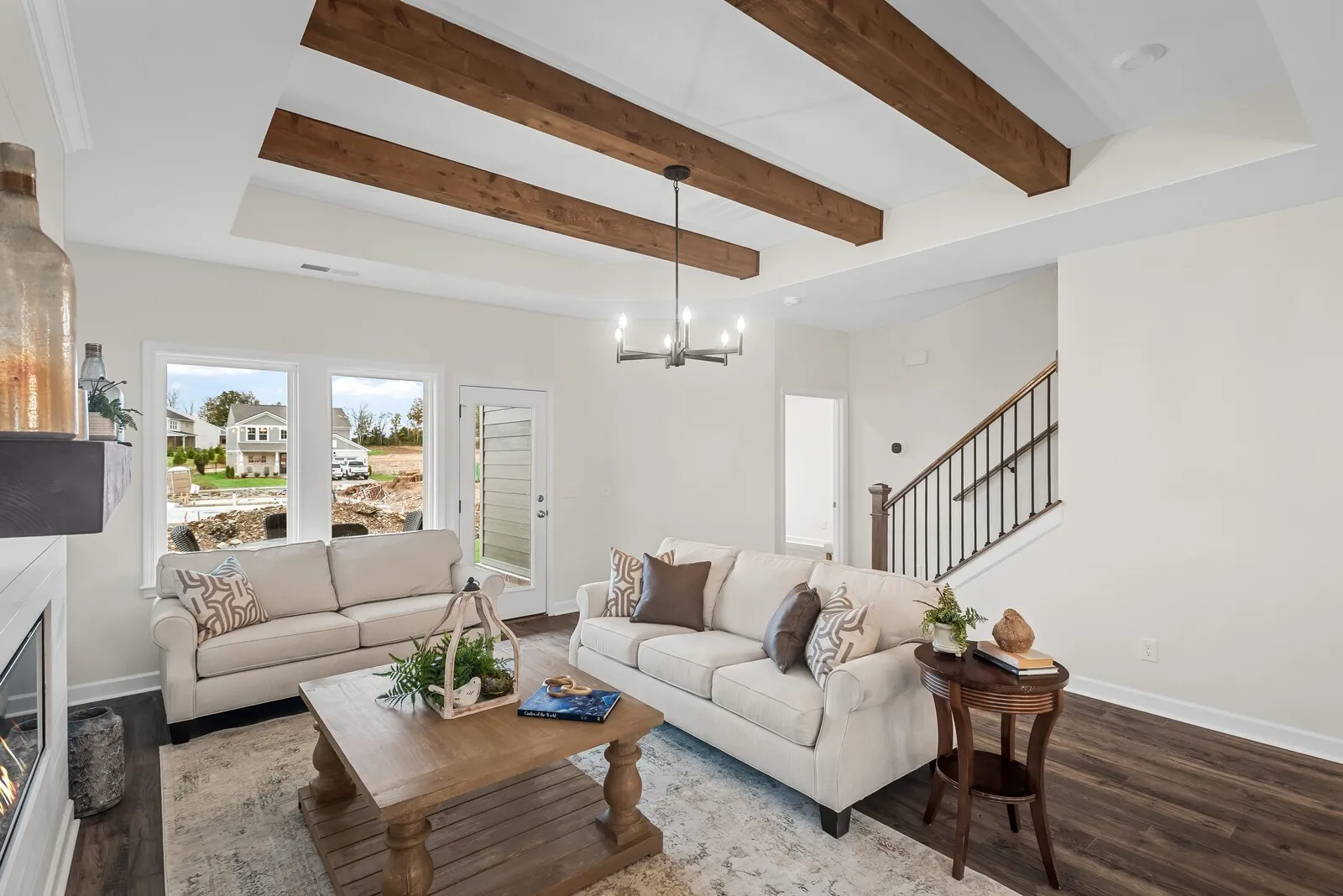 Main level includes private study, primary suite with walk-in shower, large vanity and huge walk-in closet. Family room with tray ceiling and cedar beams, fireplace and Revwood flooring. Outdoor living space adjacent the family room. Beautiful cabinetry, quartz counters, tile, trim and more. 2 Car garage. The second level features a functional game room, bedroom w/WIC, full bath and walk-in storage. Home automation package included. Ask about generous finance incentives with our preferred lender. New construction without the wait!