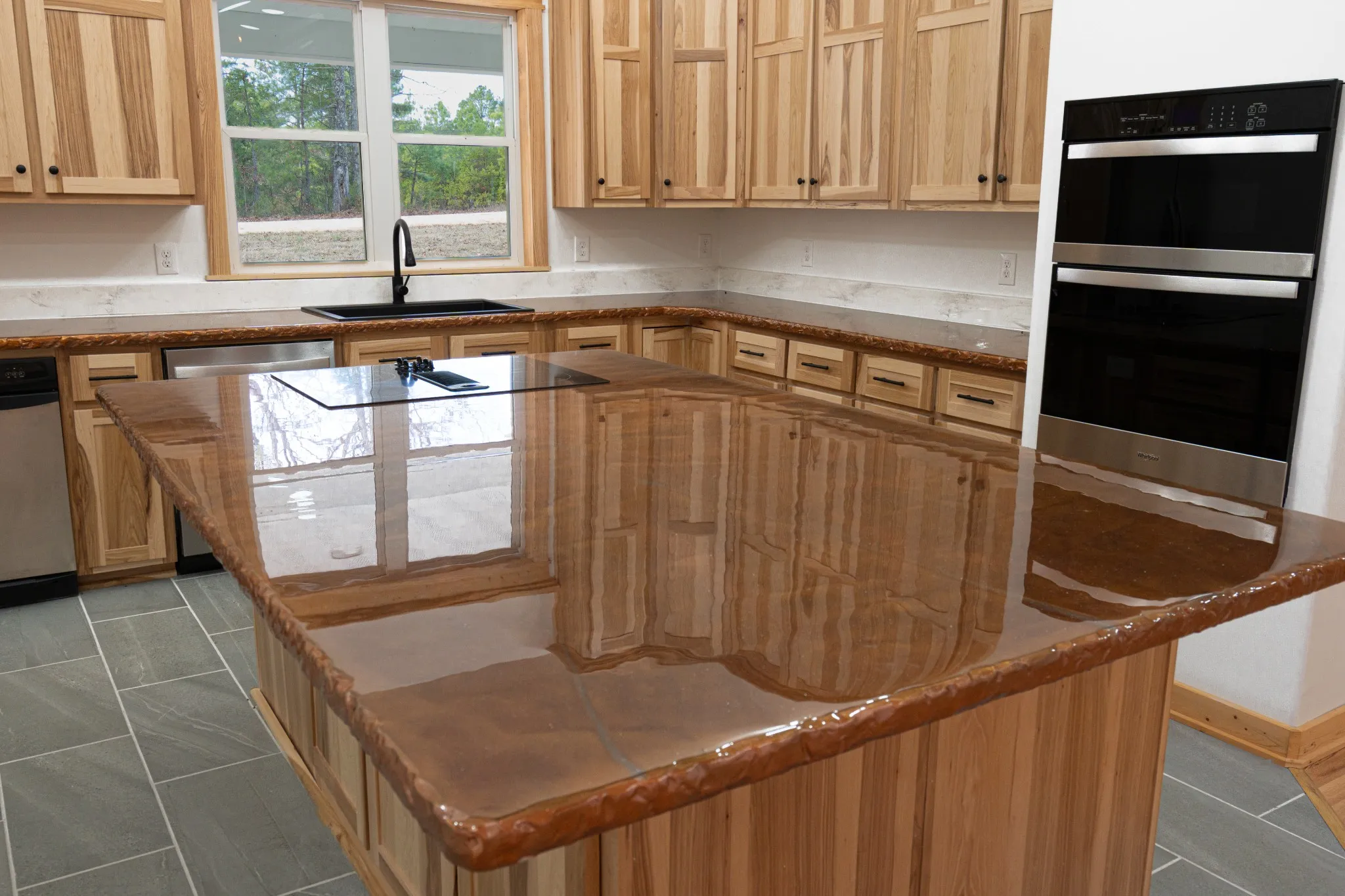 • Custom hickory kitchen cabinets and new countertops