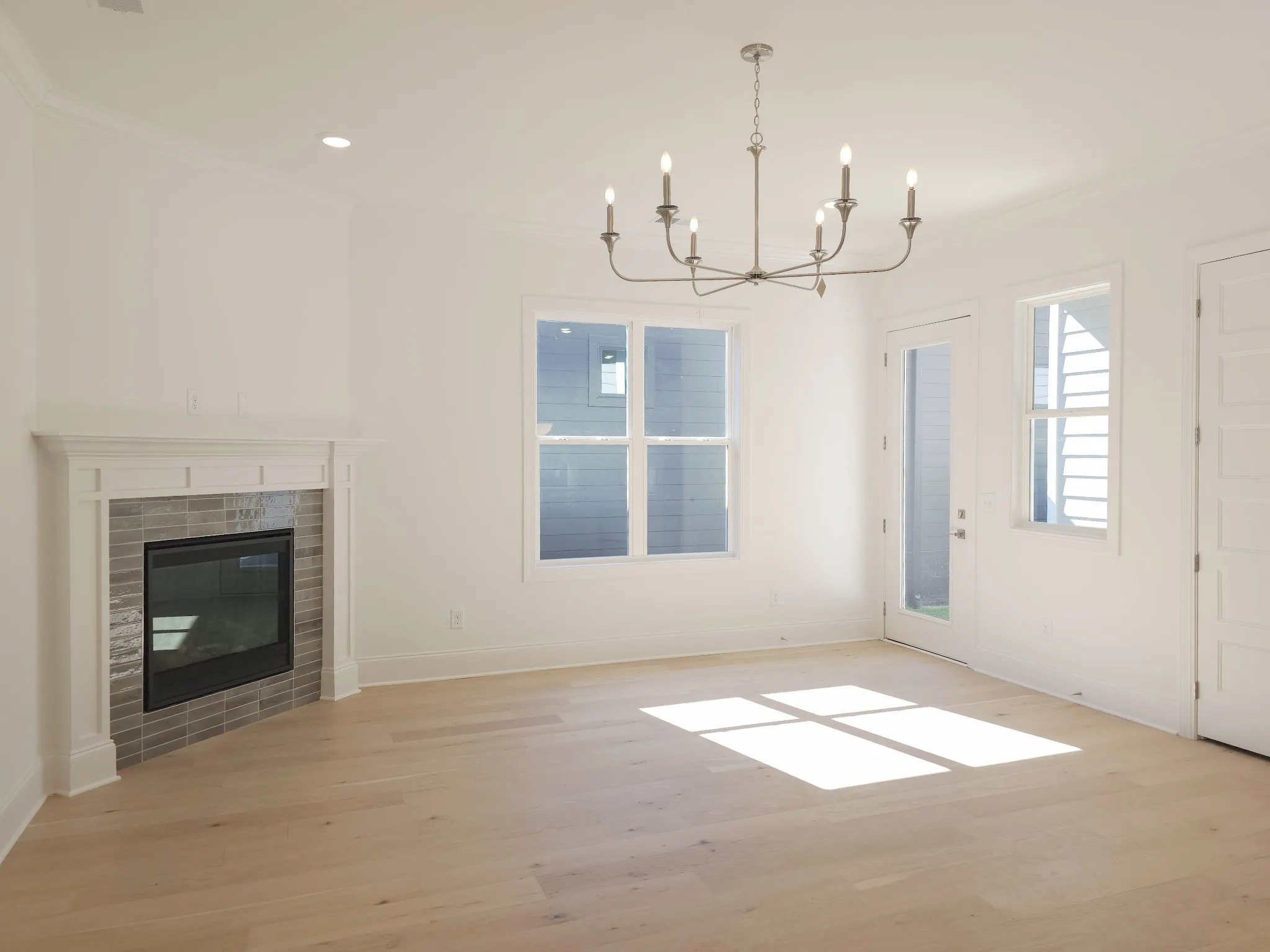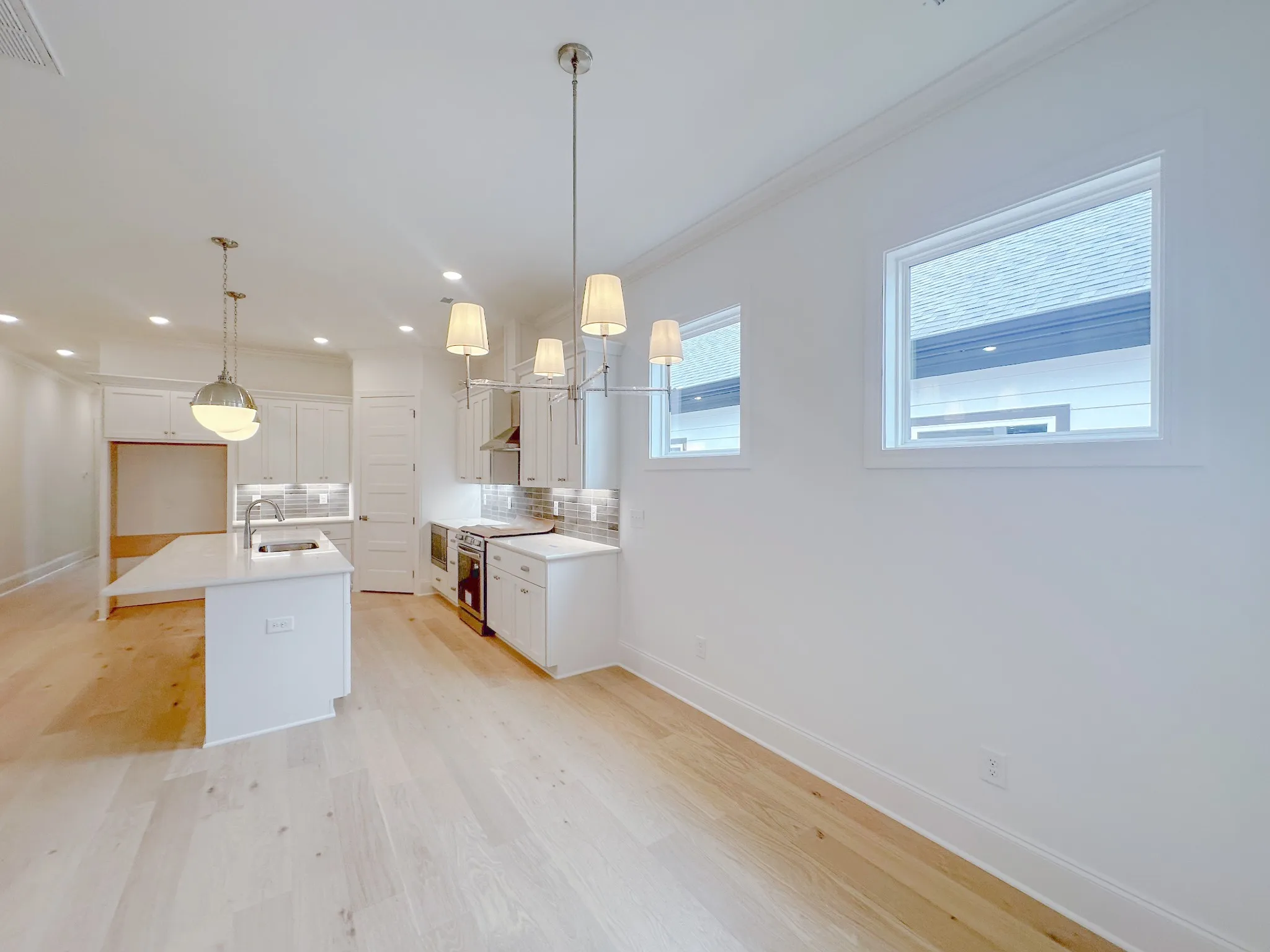 A combination dining space includes windows for natural lighting.