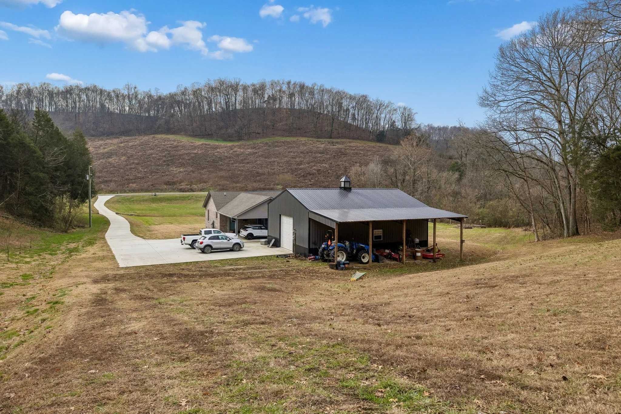 The piece of tranquility you have been looking for. Located just minutes from I-65, surrounded by beautiful rolling landscapes and a year round spring out front. A place where you can relax on your front porch and enjoy sunset views and wildlife. This custom built brick home with open concept features true hardwood floors, with granite counter tops. As you drive up the all concrete driveway, you are welcomed by the beauty of a treelined property offering privacy, along with a 30x 40 shop and 14×40 lean to that is equipped with electric and water. Need an extra bedroom, no problem, the septic can handle more and the expansive attached carport could easily be converted to an owners suite or 2 oversized bedrooms. this is 20 acres being surveyed off of a larger parcel.