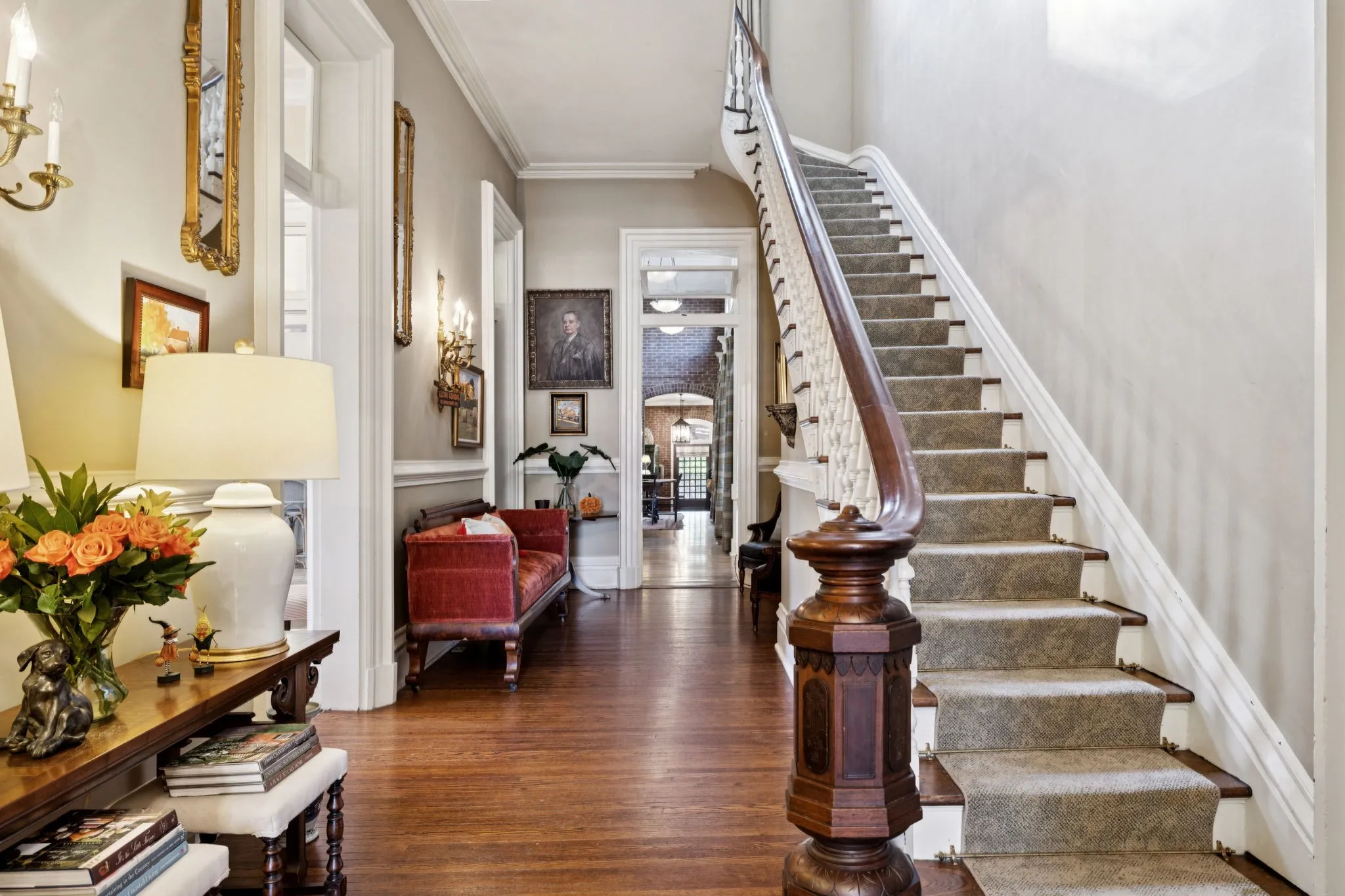 Quintessential Victorian. Classic example of architectural style reminiscent of the 1800’s. Built soon after the Civil War on one of the original lots surveyed in Franklin, this property has all the qualities of a well-built-to-last home from the square tower on the roof to the rocking chair front porch, the 13′ ceilings and all modern comforts and amenities you would expect. Every direction you turn and every room you enter suggests nothing but the best in quality, design and engineering. A totally separate living area is at the rear of the house with its own separate entrance. The three car garage is unique and unexpected. Private side patio with large fireplace w/built-in flat screen TV. Owner has a monthly maintenance company to oversee and maintain the property.