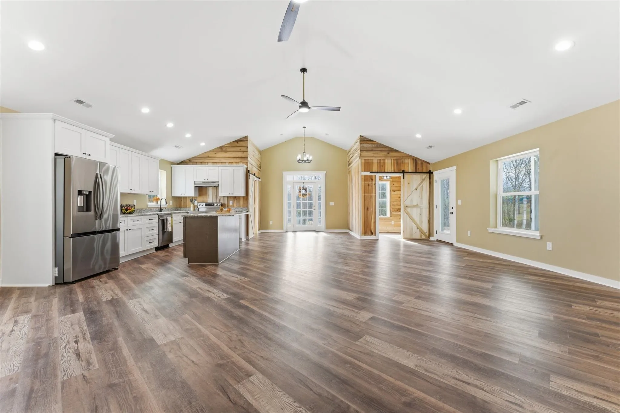 Turnkey 27-acre homestead property in Vanleer featuring a 3-bedroom, 2-bath barndominium with an open floor plan connecting the kitchen, dining, and living areas. This single-level layout offers efficient living space while allowing the acreage to be the primary asset. The land includes a combination of open fields and wooded acreage suitable for gardens, livestock, poultry, orchards, food plots, or managed wildlife habitat. Open sections provide space for fencing, barns, workshops, greenhouses, and additional outbuildings. Wooded areas offer established cover and trail potential for ATV riding and outdoor recreation. No HOA or deed restrictions allow flexibility for agricultural equipment, trailers, or land improvements. The existing residence provides on-site living while expanding homestead infrastructure over time. Acreage of this size supports recreational use, and self-sustaining projects. Located in Vanleer with access to Dickson and surrounding communities. Nearby outdoor destinations include Montgomery Bell State Park, Nathan Bedford Forrest State Park, and regional access to the Cumberland River for boating and fishing opportunities. Schedule your showing today!
