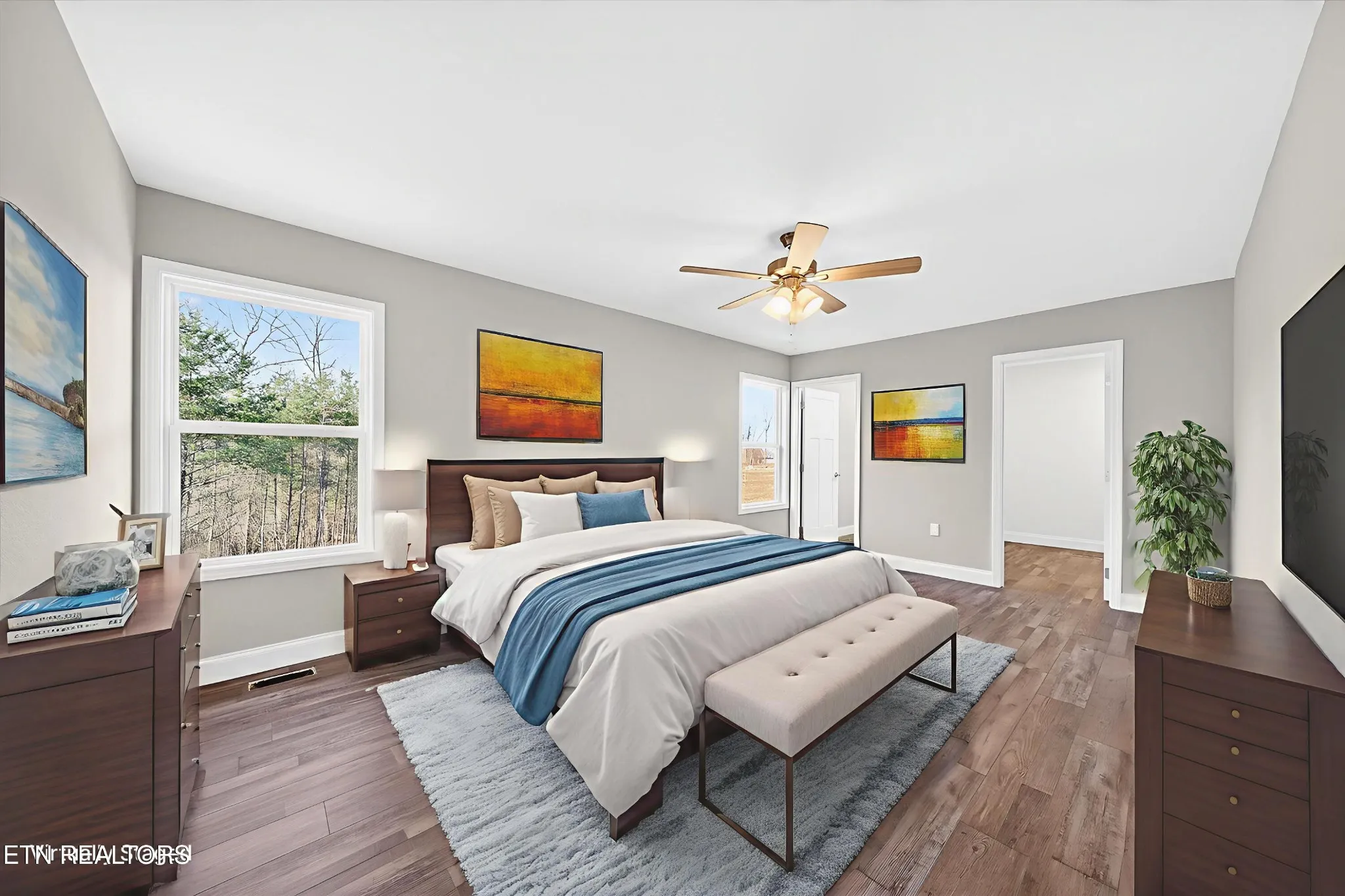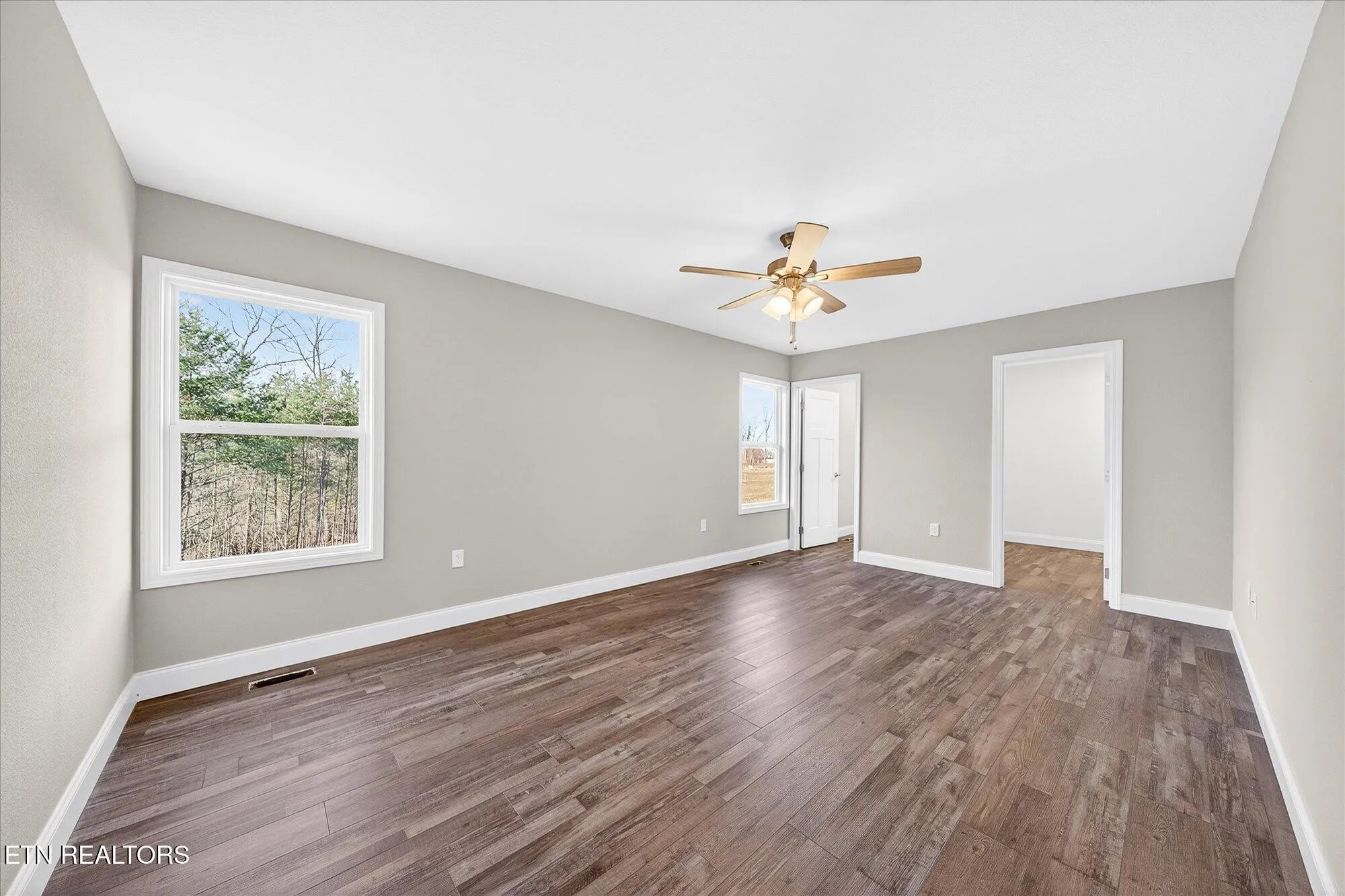 • Two guest bedrooms, each with ceiling fans and closets
