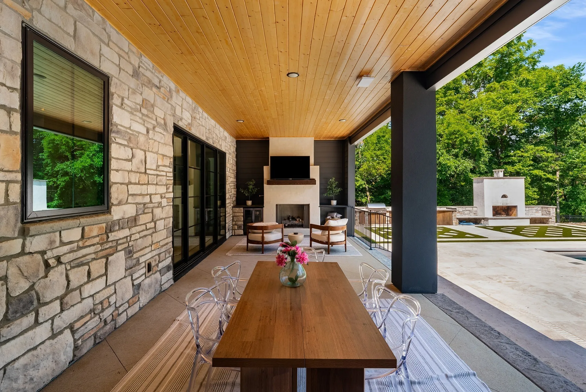+"PublicRemarks": "Must see “Chateau Soleil” one owner, one of a kind custom newer luxury const. Rare PRIVATE Estate Enclave (approved for Gated Entrance)- 2+ Private ACRES IN FRANKLIN, TN. NO LUXURY FEATURE LEFT OUT! Premium homesite backing to treed forested common space. This exquisite residence offers 5 generously sized ensuite Brms, 3 half baths, theater w/ surround sound, 3 bonus rooms - one on the main level w/ separate entrance possible in-law suite w/ kitchen; chef’s kitchen (w/ high end Miele appliances, grand quartz-topped center island, 2 sinks; custom vent; 2 dishwashers, central vac., high end plumbing fixtures, a custom walk-in pantry with floor-to-ceiling cabinetry), 5 wine fridges, 3 fps; large formal dining for 12+; beautiful built ins; fully customized closets; soaring 20 ft ceilings w/ beams plus ceiling treatments; office w/ views. Step outside to a entertainer’s dream: treelined sanctuary w/seamless indoor/outdoor living w/ 4-panel sliders to extended covered porch to saltwater gunnite pool w/ tanning ledge, spa, cold plunge, smoker, grill, 2 fireplaces, pizza oven. Room to build possible tennis courts or guest/pool house. Zoned for Top Schools: Ravenwood, Clovercroft, & Woodlands. (Step outside to your private, tree-lined sanctuary, where a custom saltwater pool with tanning ledge, hot tub, and cold plunge await. The outdoor kitchen is a true entertainer’s dream, boasting a built-in smoker, gas grill, pizza oven fireplace, and refrigerator—all set on an expansive travertine patio. Appraised for $5.1 million- unmatched privacy, outdoor living and luxury."
