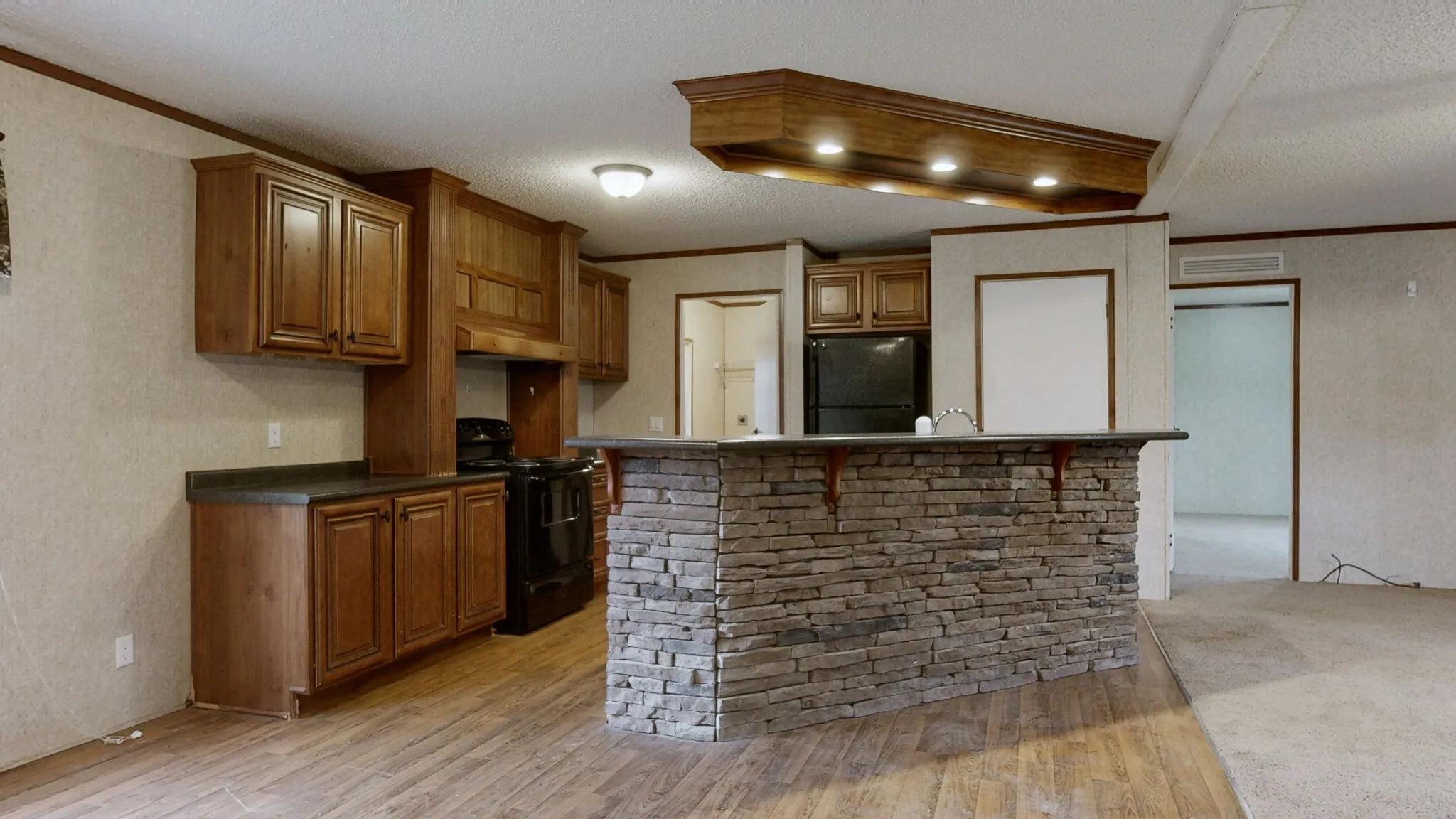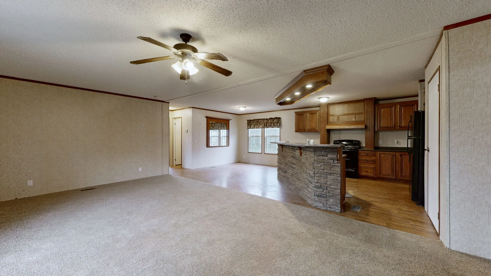 N-I-C-E manufactured home on 1.24 acre+/- level lot in terrific location*Engineer Letter stating FHA eligible in media*W/B Fireplace in LR and huge island/bar and pantry in kitchen with black appliances remaining*Garden tub/ sep. shower along with double vanity in primary bath*All bedrooms have W-I closets*Brand new carpet in LR and 2 of the bedrooms*New porch on front*large covered deck on rear*Home is in great condition